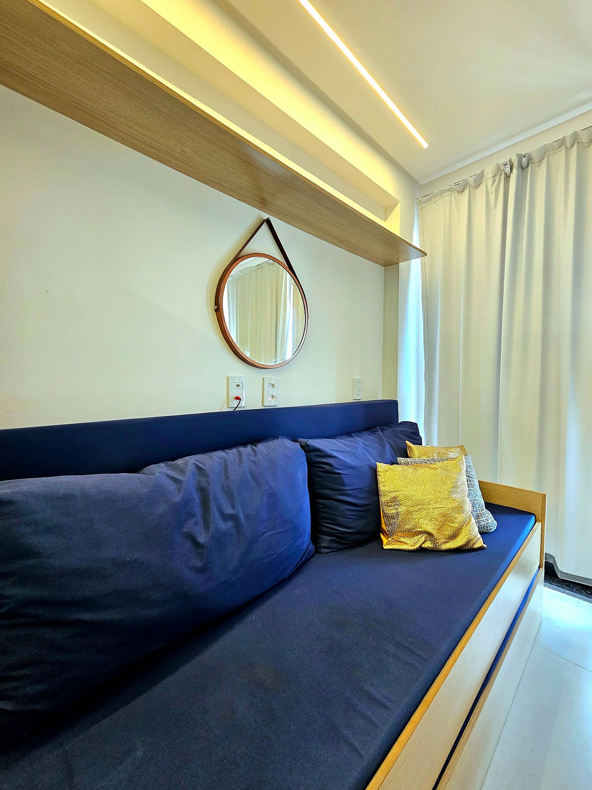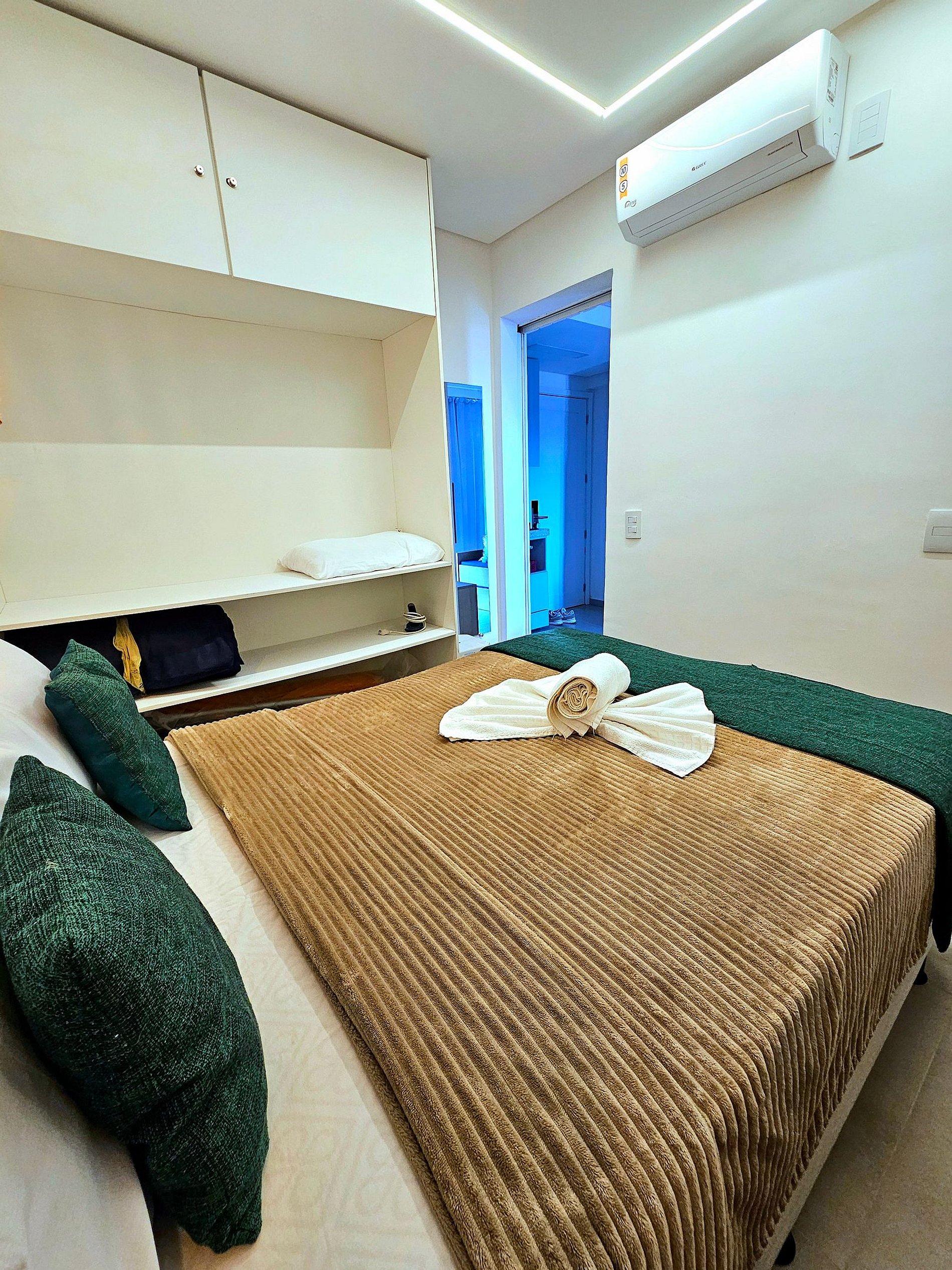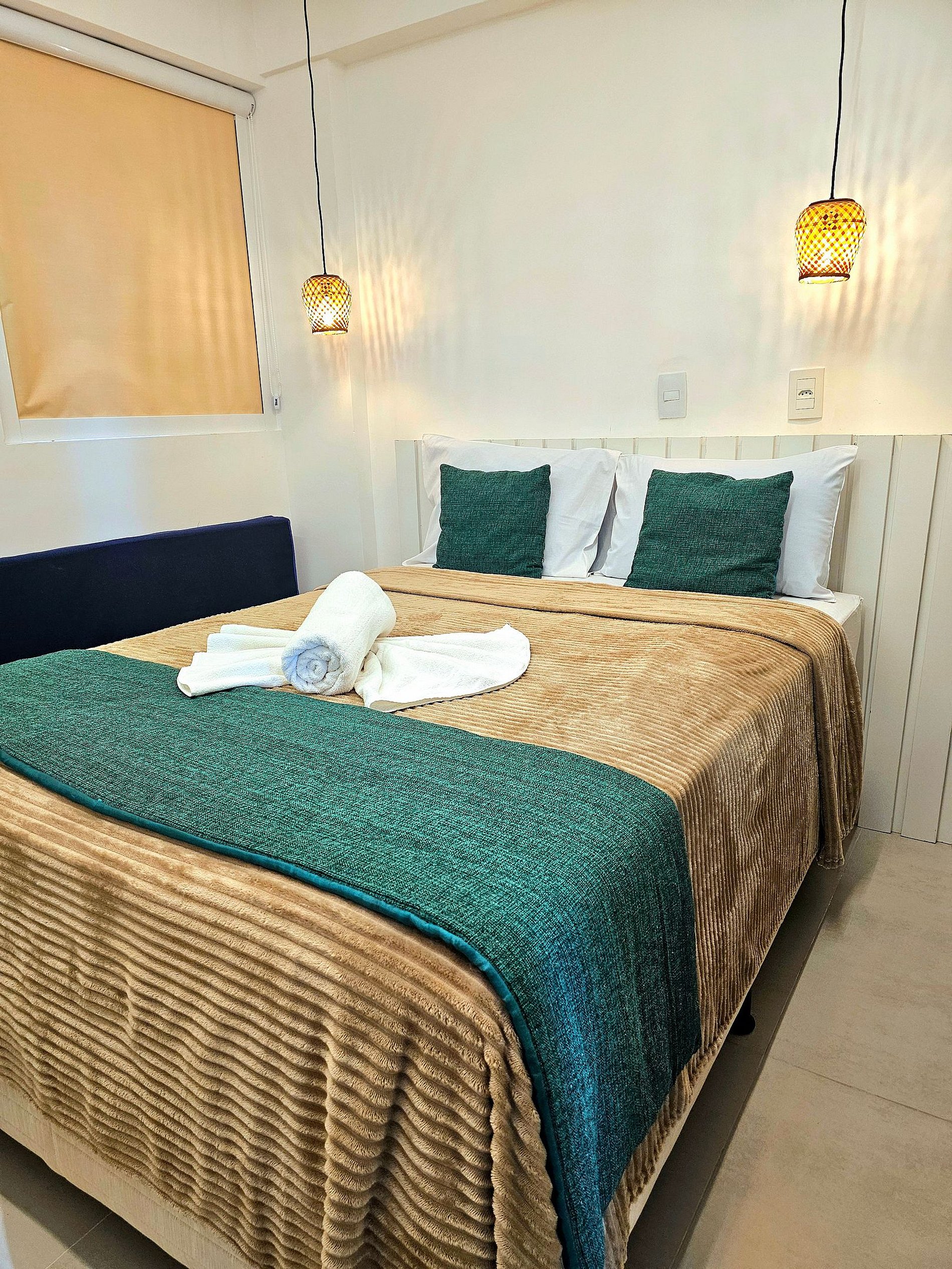 - **Quarto Aconchegante**: Uma cama de casal de qualidade, e iluminação moderna para proporcionar maior conforto aos hóspedes.