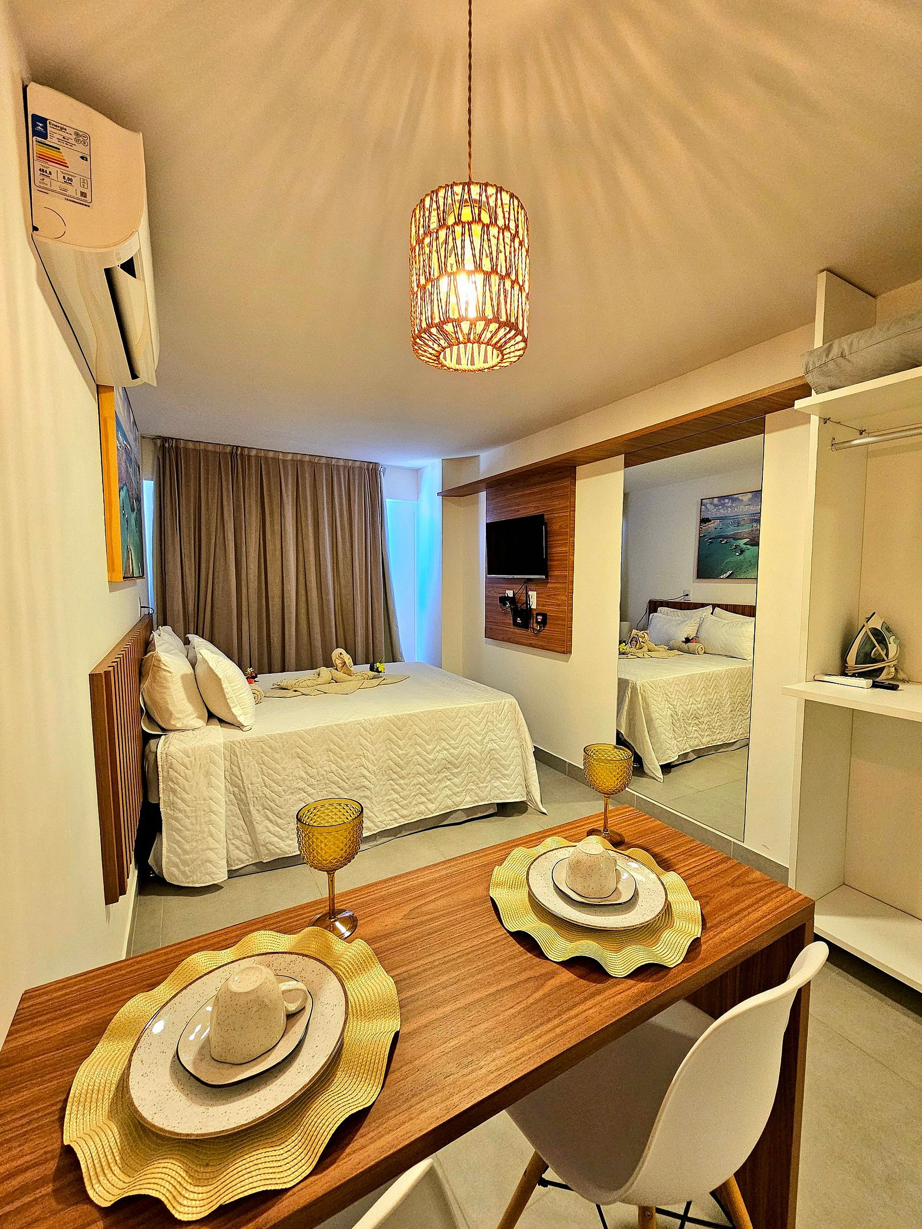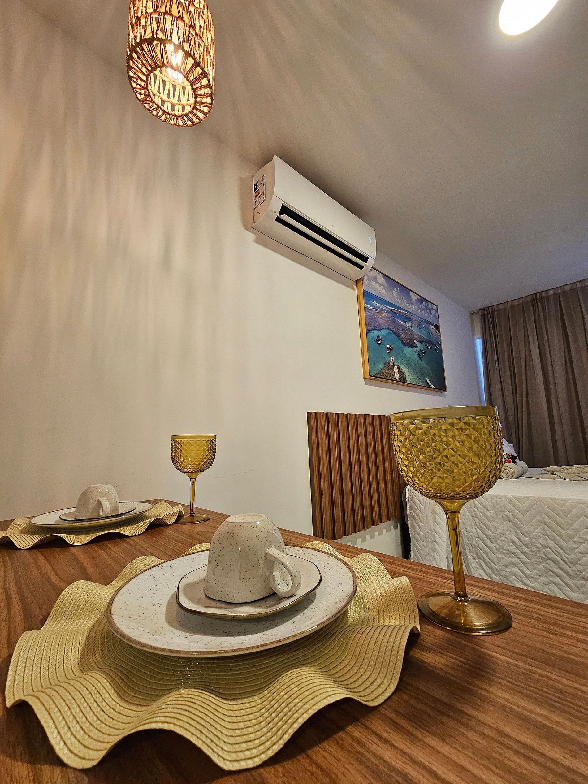 Decoração Moderna e Iluminação Planejada: A decoração do apartamento segue um estilo moderno e elegante, com detalhes em cores neutras e iluminação indireta que criam uma atmosfera aconchegante e sofisticada. As luzes estrategicamente posicionadas proporcionam um ambiente acolhedor, ideal tanto para momentos de relaxamento quanto para criar um clima especial durante suas noites no Cupe Exclusive.