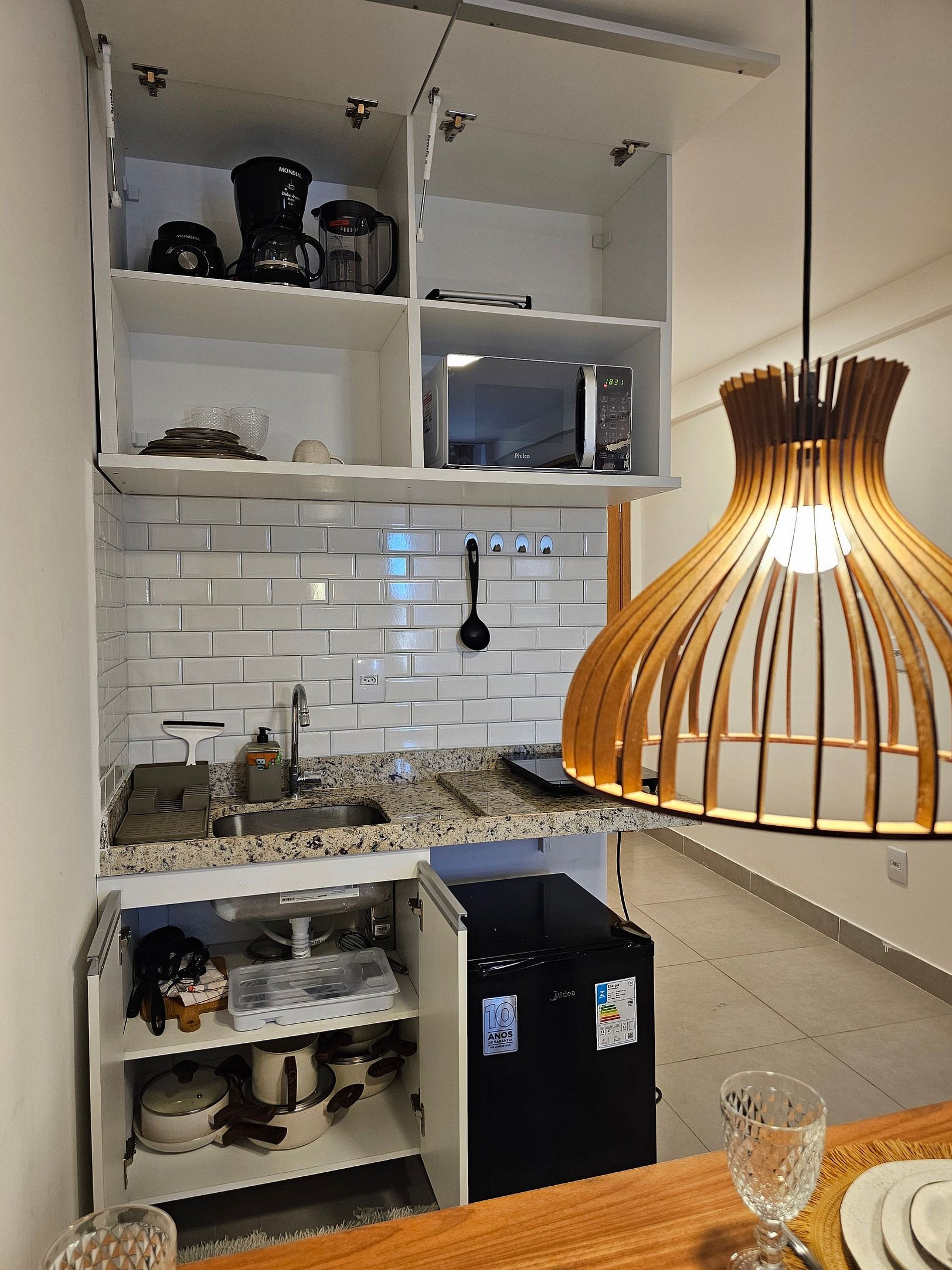 A cozinha é totalmente equipada com eletrodomésticos de ponta, incluindo uma sanduicheira, cafeteira e liquidificador, garantindo que você tenha tudo o que precisa para preparar suas refeições com praticidade. Além disso, todos os utensílios são de alta qualidade, proporcionando uma experiência gourmet no conforto de seu próprio espaço. Conforto Impecável nas Acomodações: Desfrute de uma noite de descanso perfeito em nossa cama de alta qualidade, cuidadosamente escolhida para garantir o máximo de conforto. O apartamento ainda conta com uma cama auxiliar de solteiro, ideal para acomodar um terceiro hóspede sem comprometer o espaço ou o bem-estar. Perfeito para famílias pequenas, casais ou amigos, o ambiente foi pensado para acomodar até 3 hóspedes com total conforto.