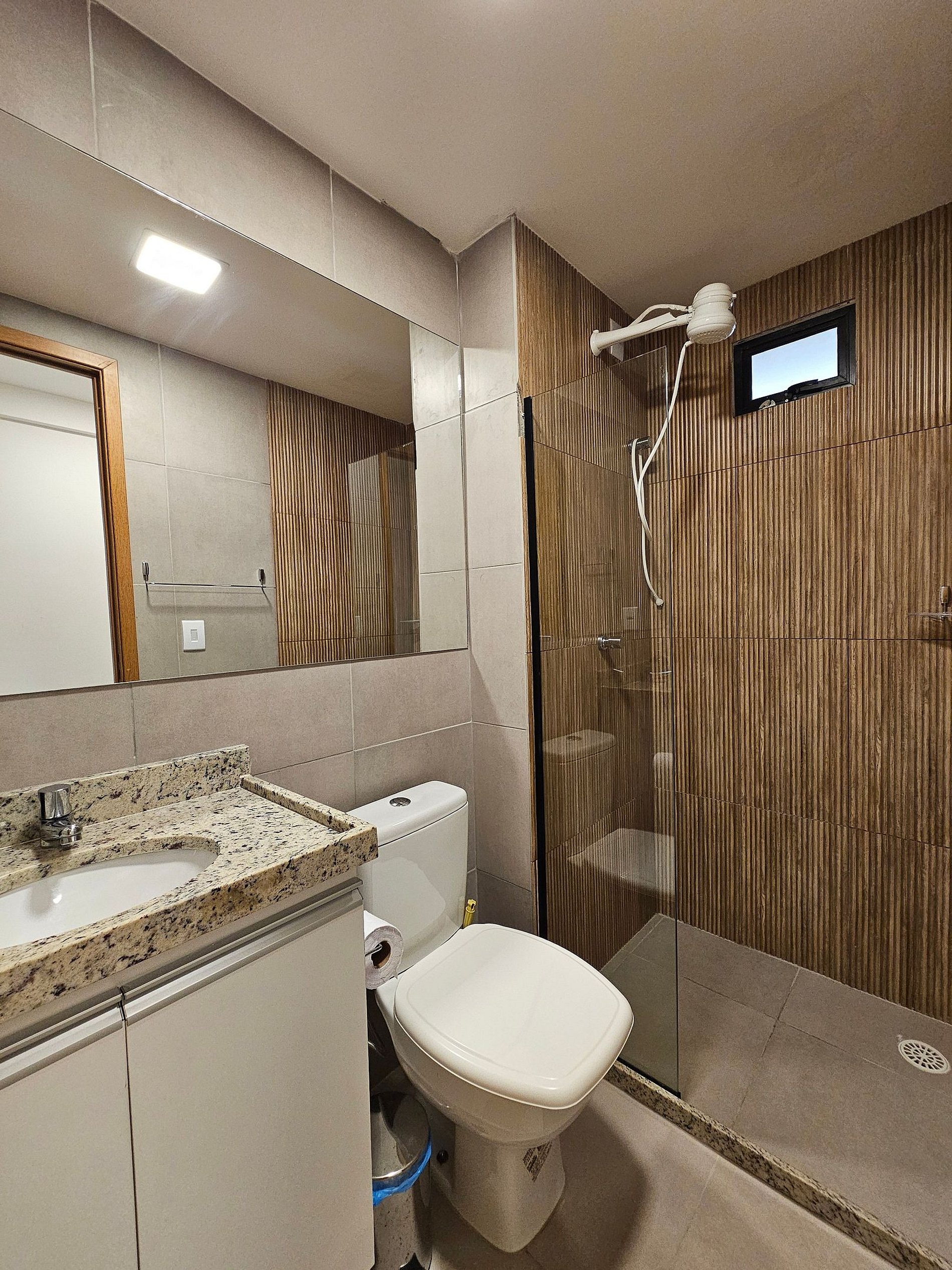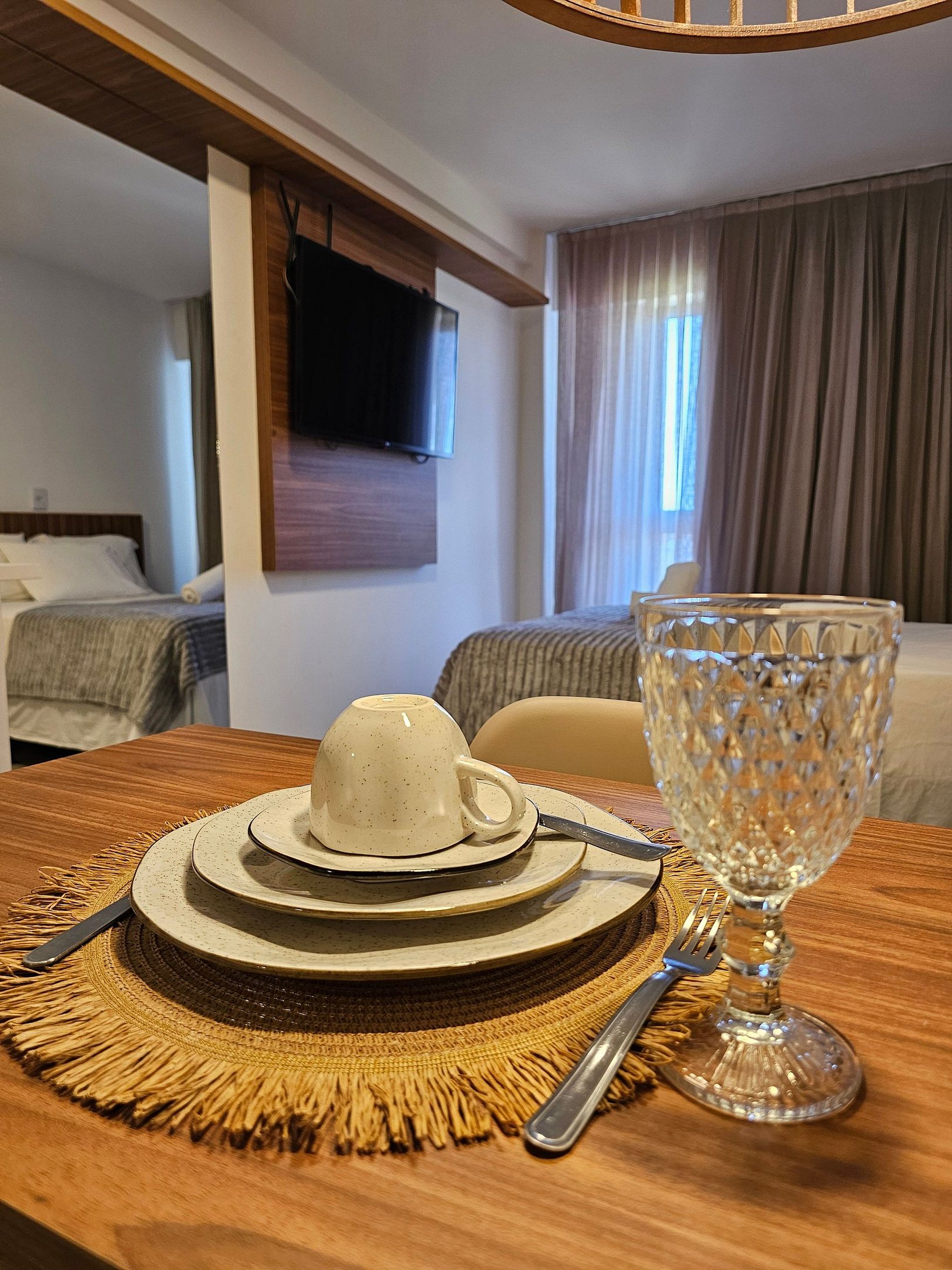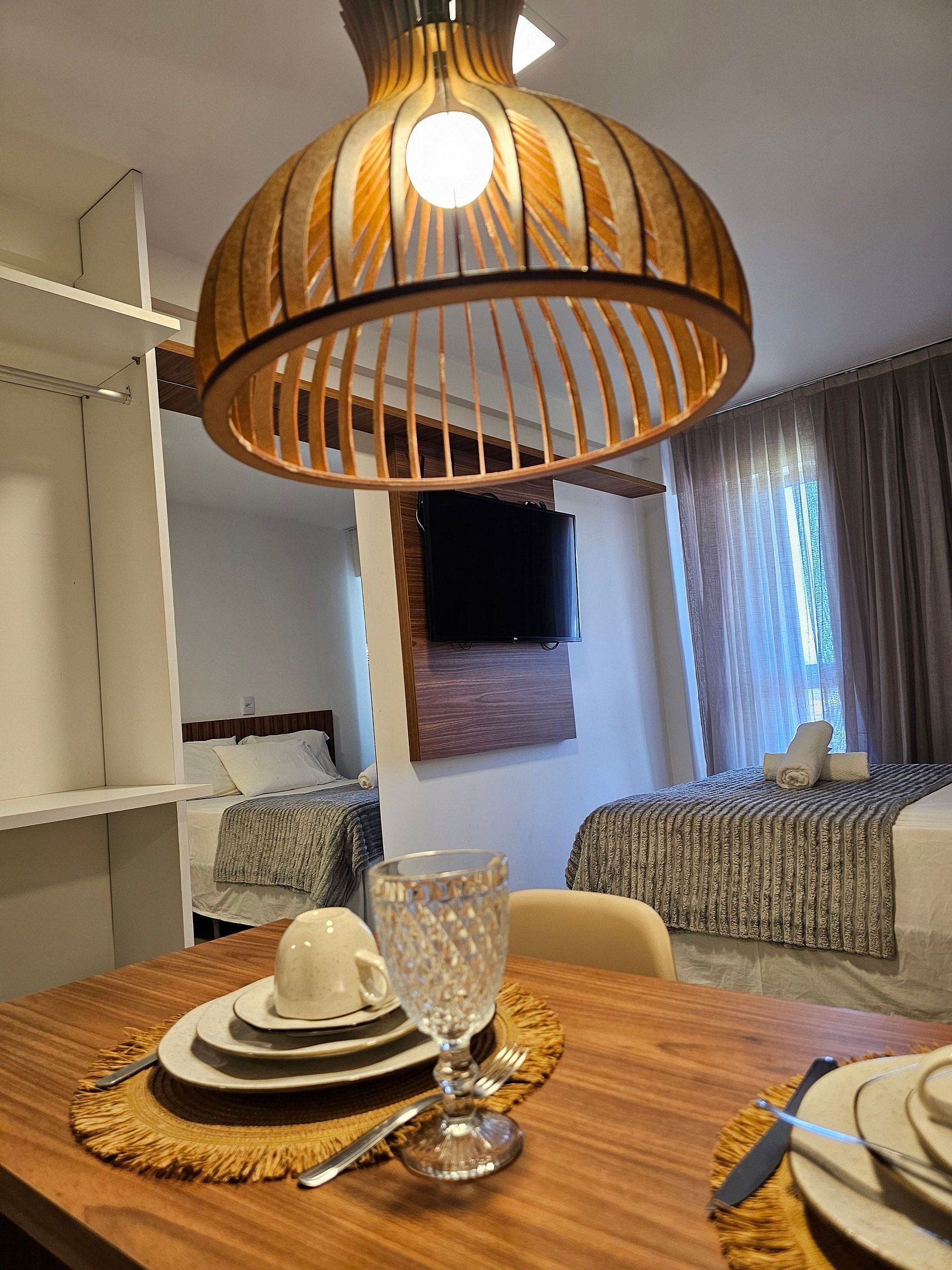 Decoração Moderna e Iluminação Planejada: A decoração do apartamento segue um estilo moderno e elegante, com detalhes em cores neutras e iluminação indireta que criam uma atmosfera aconchegante e sofisticada. As luzes estrategicamente posicionadas proporcionam um ambiente acolhedor, ideal tanto para momentos de relaxamento quanto para criar um clima especial durante suas noites no Cupe Exclusive.