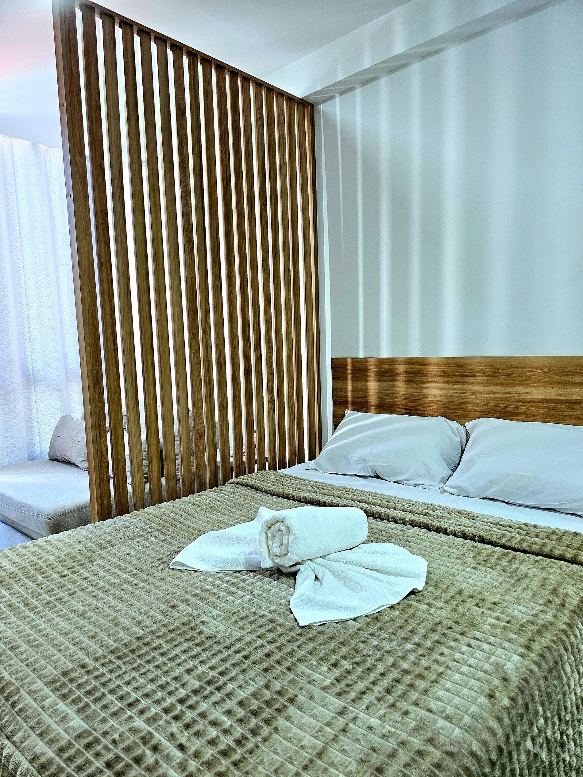 * O apartamento oferece uma cama de casal confortável e um excelente sofá-cama, que acomoda duas pessoas adicionais, tornando-o ideal para até 4 hóspedes. É um espaço equipado e funcional, que atende às necessidades de quem procura um lugar confortável para descansar após um dia aproveitando as praias e atrações locais.