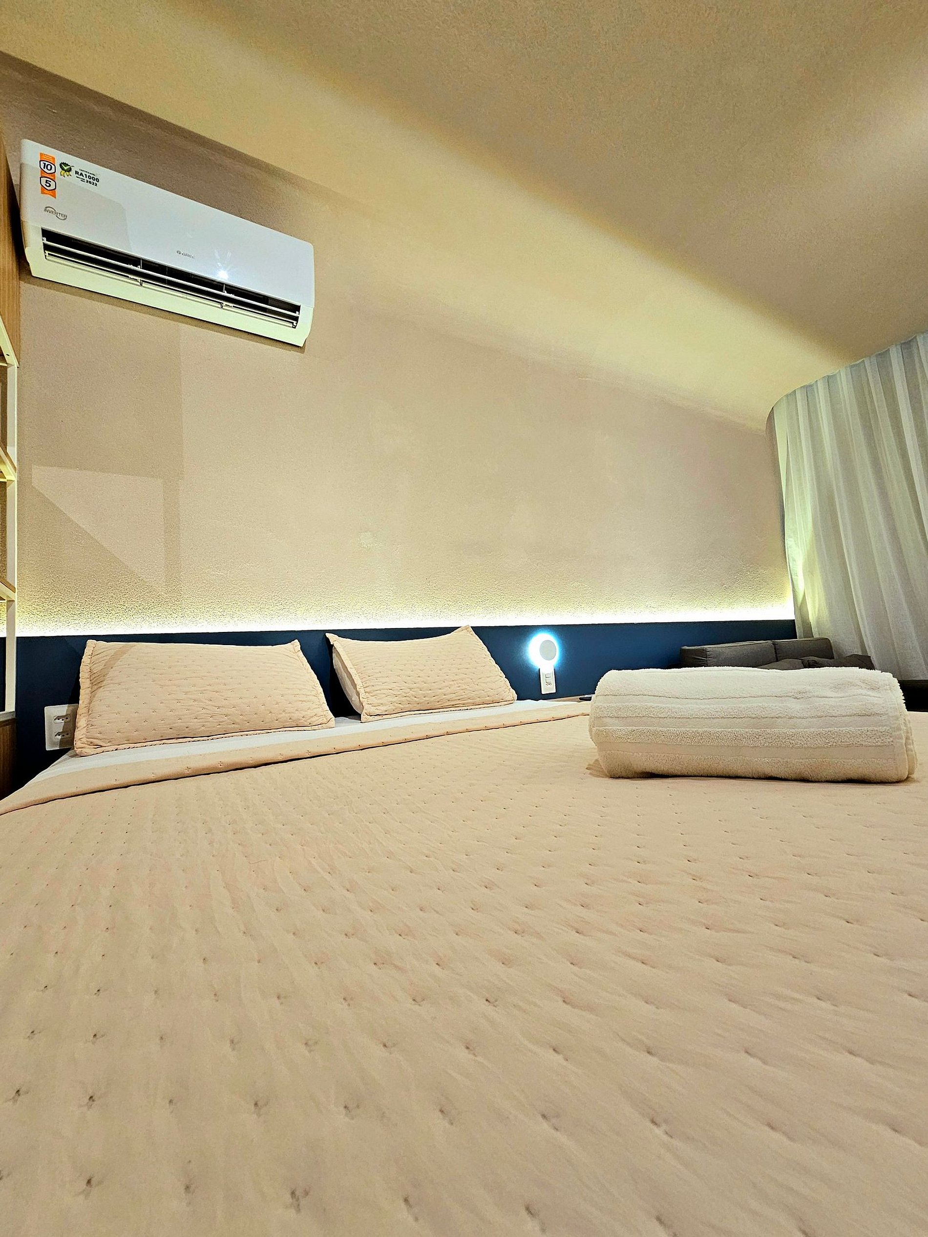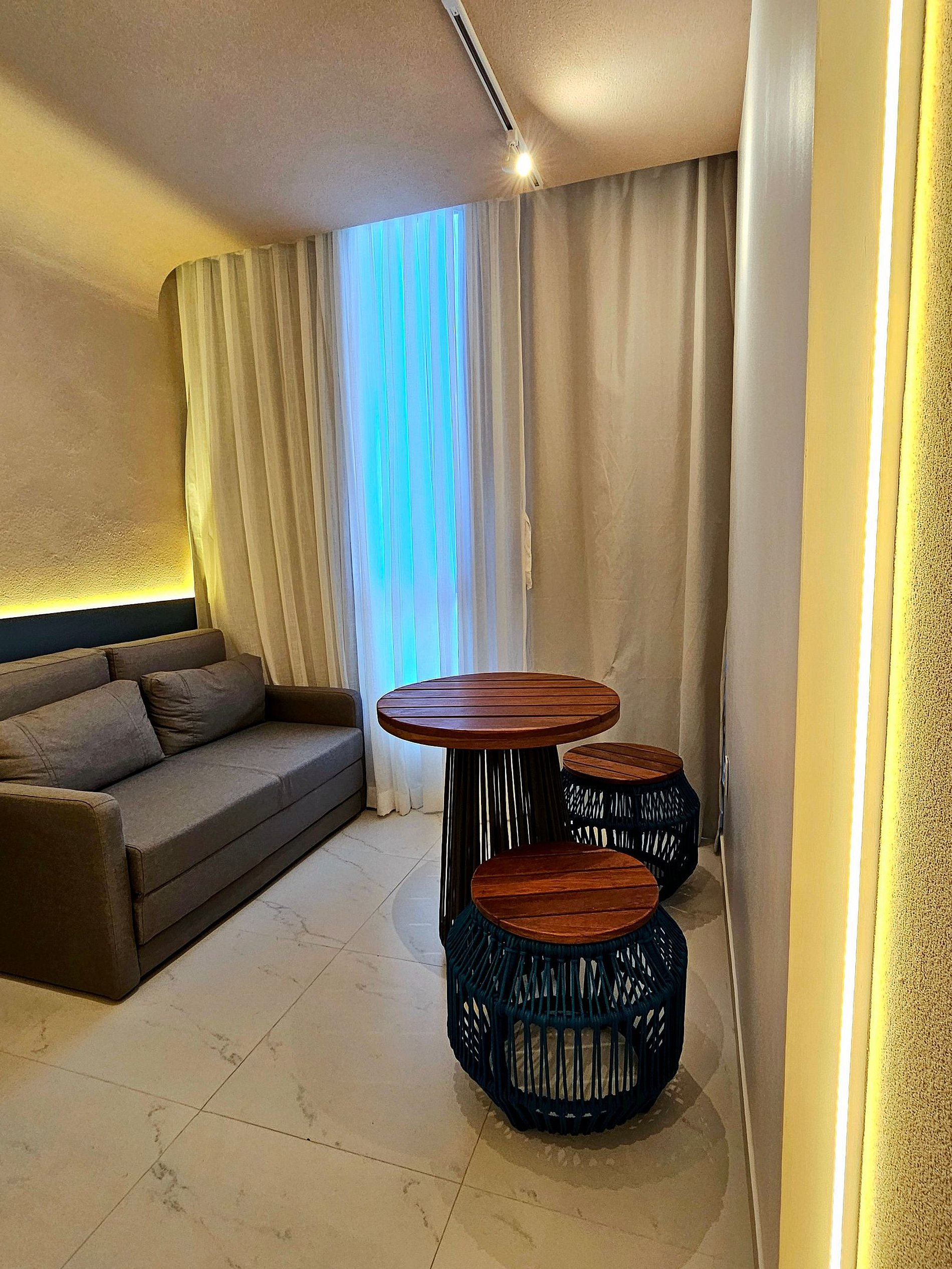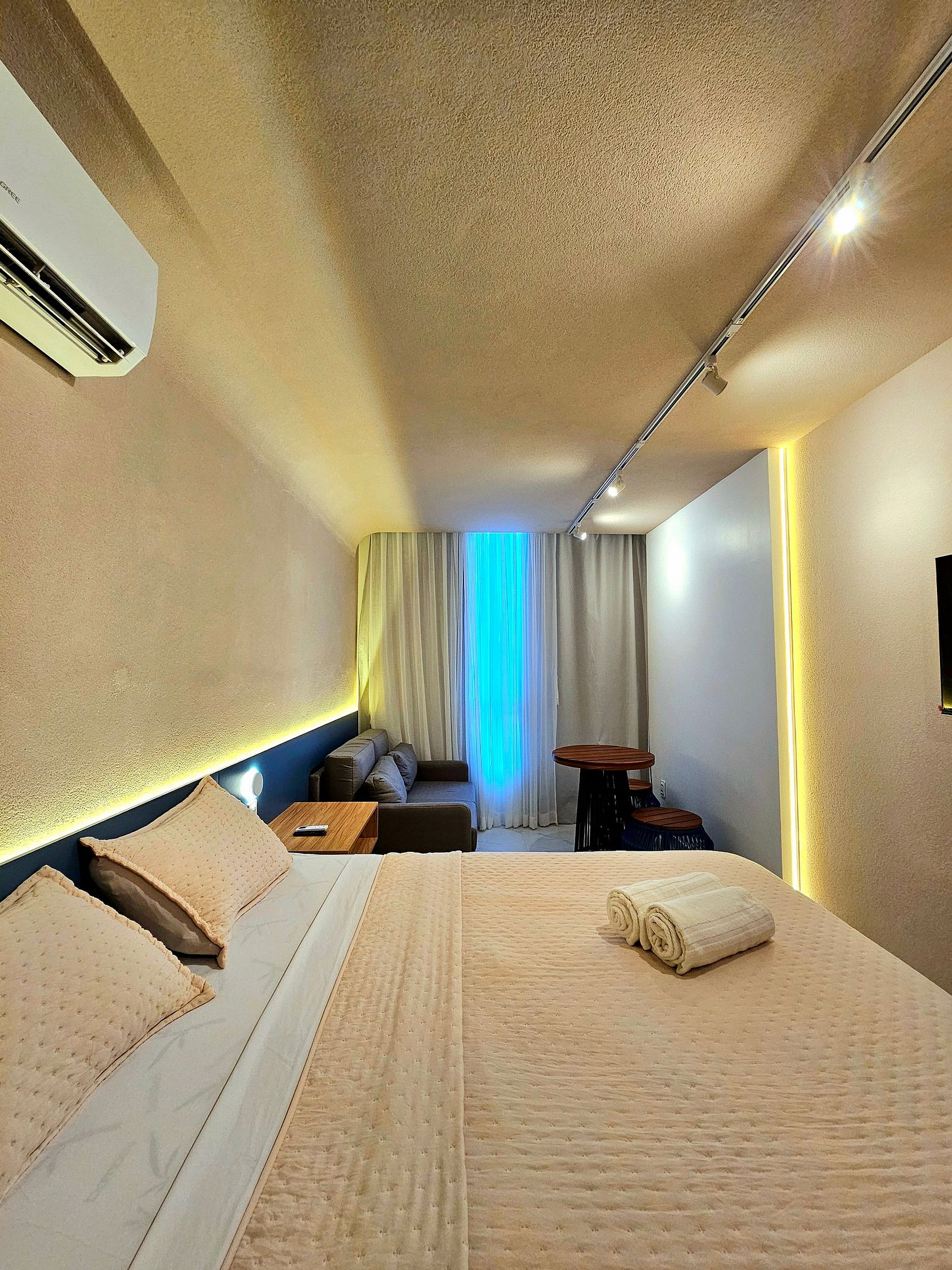 Este studio foi projetado para proporcionar uma estadia com muito estilo e conforto. A decoração moderna, com iluminação aconchegante, cria um ambiente agradável, perfeito para relaxar após um dia explorando Porto de Galinhas. Os detalhes únicos, como a textura tátil e os móveis de alto padrão, fazem deste espaço uma escolha sofisticada e diferenciada para sua hospedagem. O studio acomoda até 4 pessoas confortavelmente. O quarto conta com uma cama de casal confortável, ideal para garantir uma boa noite de sono, temos também um sofá-cama de qualidade, proporcionando espaço extra para dois hóspedes. Tudo foi pensado para oferecer praticidade e bem-estar. A cozinha completa é equipada com os principais eletrodomésticos, incluindo geladeira, cooktop, liquidificador e cafeteira, além de utensílios de cozinha essenciais. Este ambiente foi planejado para que você possa preparar suas refeições de forma prática e conveniente, aproveitando o máximo de sua estadia sem abrir mão de conforto. A localização do Porto City também é um ponto forte. O studio está a poucos minutos das praias e da principal rua do centrinho de Porto de Galinhas, onde você encontrará uma grande variedade de restaurantes, lojas e atrações turísticas. Sua estadia será marcada pela conveniência de ter tudo por perto, facilitando seu deslocamento e aproveitamento do melhor que a cidade tem a oferecer. Este studio é perfeito para quem busca uma estadia estilosa, bem equipada e com uma localização prática, ideal para casais, famílias pequenas ou amigos que desejam explorar Porto de Galinhas com conforto e sofisticação.