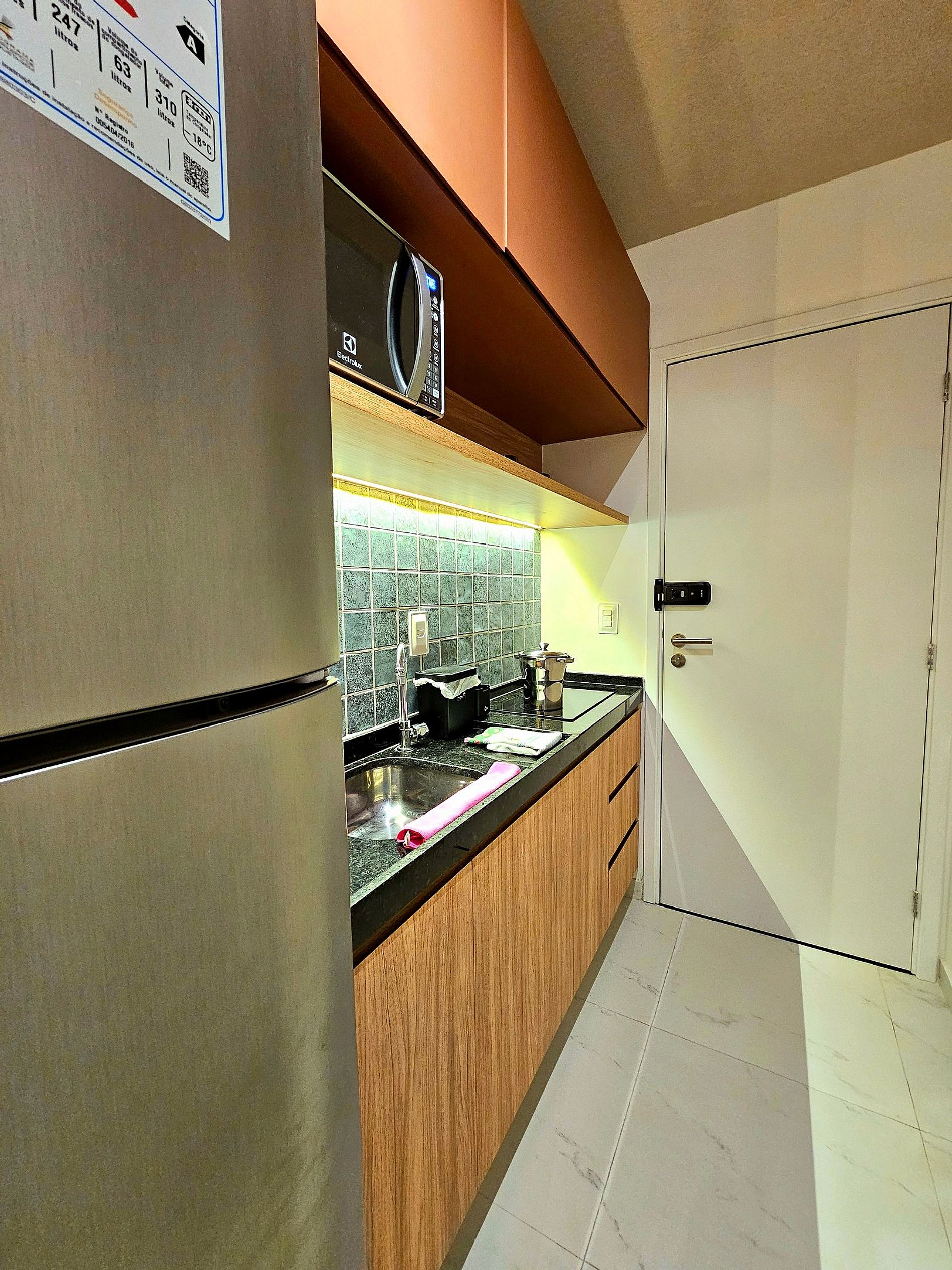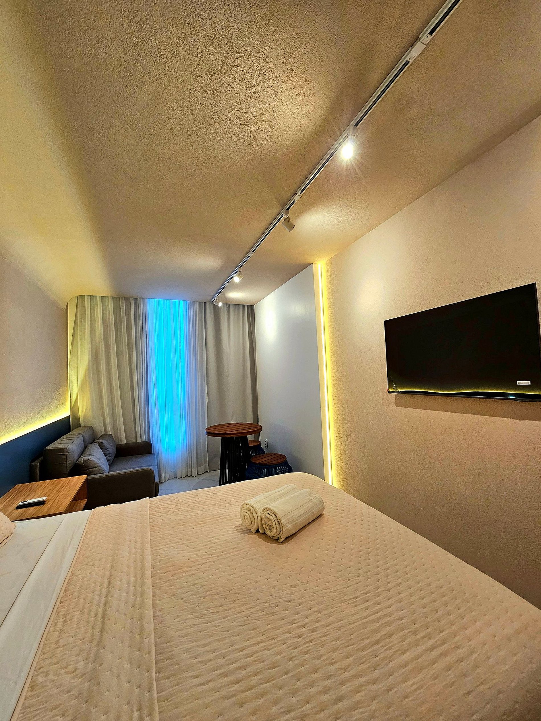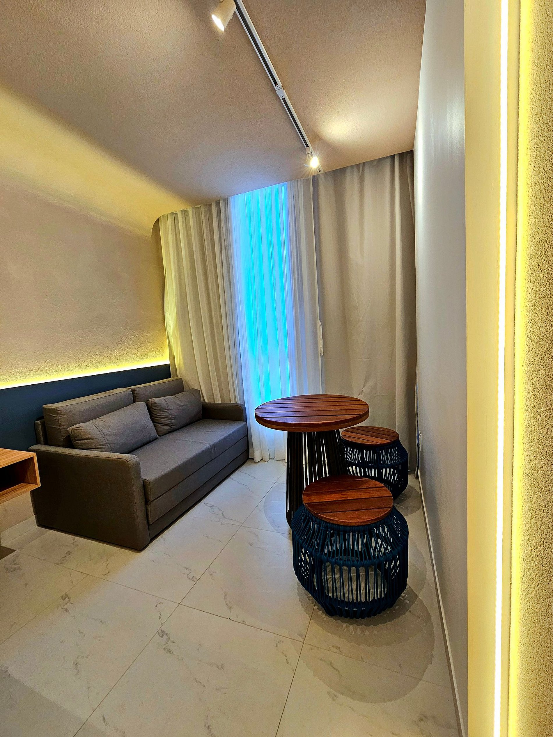 Este studio foi projetado para proporcionar uma estadia com muito estilo e conforto. A decoração moderna, com iluminação aconchegante, cria um ambiente agradável, perfeito para relaxar após um dia explorando Porto de Galinhas. Os detalhes únicos, como a textura tátil e os móveis de alto padrão, fazem deste espaço uma escolha sofisticada e diferenciada para sua hospedagem. O studio acomoda até 4 pessoas confortavelmente. O quarto conta com uma cama de casal confortável, ideal para garantir uma boa noite de sono, temos também um sofá-cama de qualidade, proporcionando espaço extra para dois hóspedes. Tudo foi pensado para oferecer praticidade e bem-estar. A cozinha completa é equipada com os principais eletrodomésticos, incluindo geladeira, cooktop, liquidificador e cafeteira, além de utensílios de cozinha essenciais. Este ambiente foi planejado para que você possa preparar suas refeições de forma prática e conveniente, aproveitando o máximo de sua estadia sem abrir mão de conforto. A localização do Porto City também é um ponto forte. O studio está a poucos minutos das praias e da principal rua do centrinho de Porto de Galinhas, onde você encontrará uma grande variedade de restaurantes, lojas e atrações turísticas. Sua estadia será marcada pela conveniência de ter tudo por perto, facilitando seu deslocamento e aproveitamento do melhor que a cidade tem a oferecer. Este studio é perfeito para quem busca uma estadia estilosa, bem equipada e com uma localização prática, ideal para casais, famílias pequenas ou amigos que desejam explorar Porto de Galinhas com conforto e sofisticação.