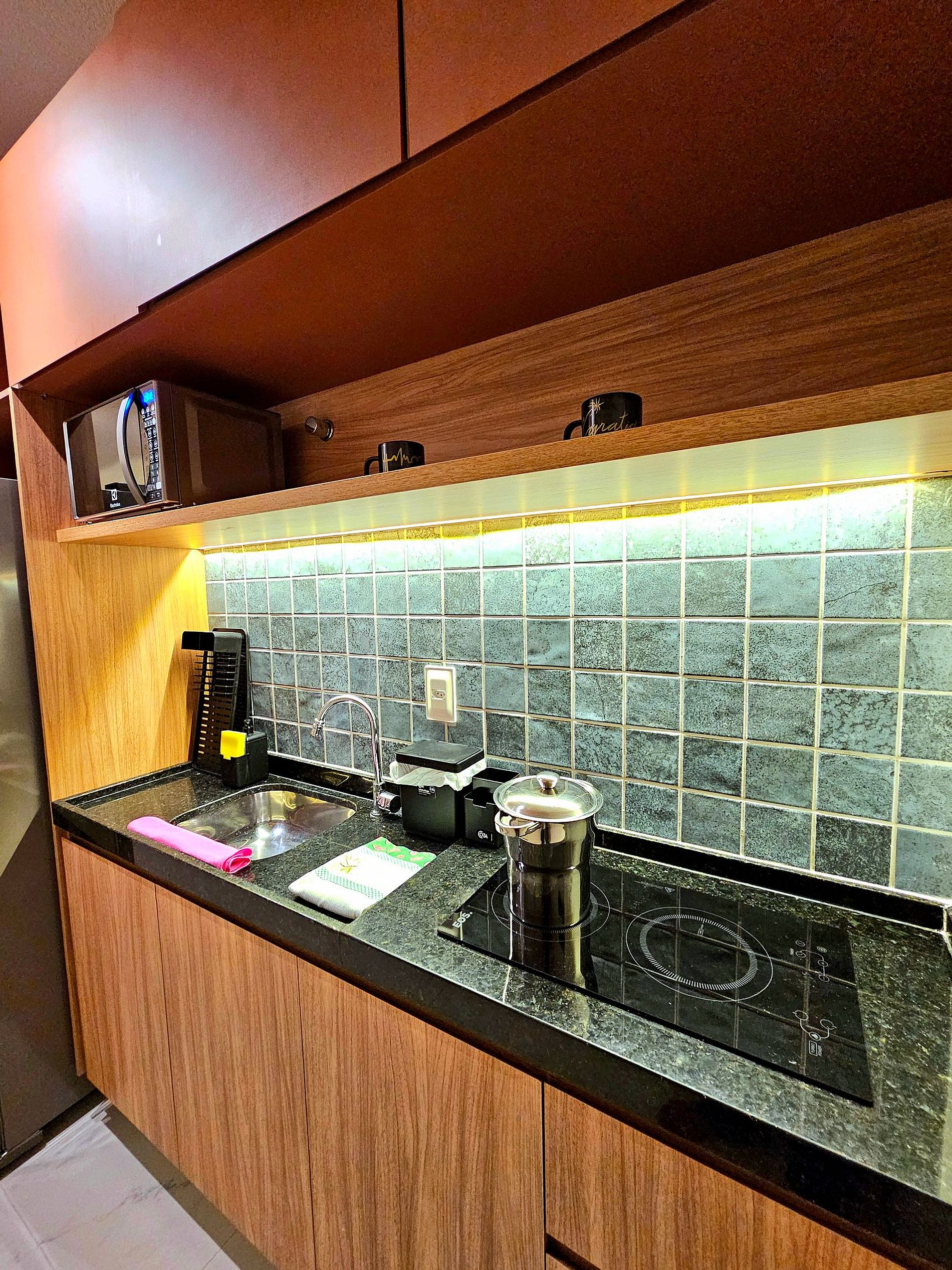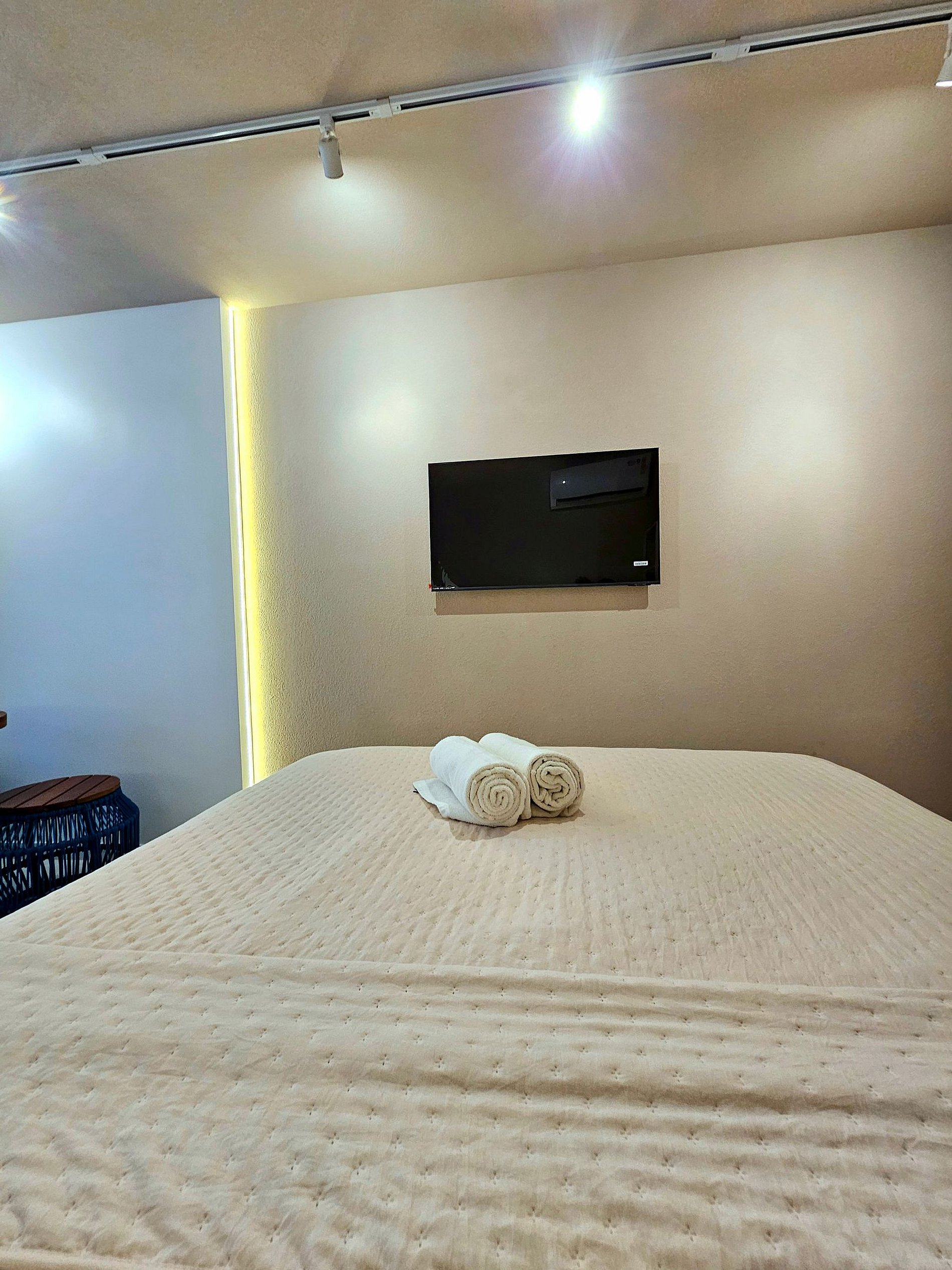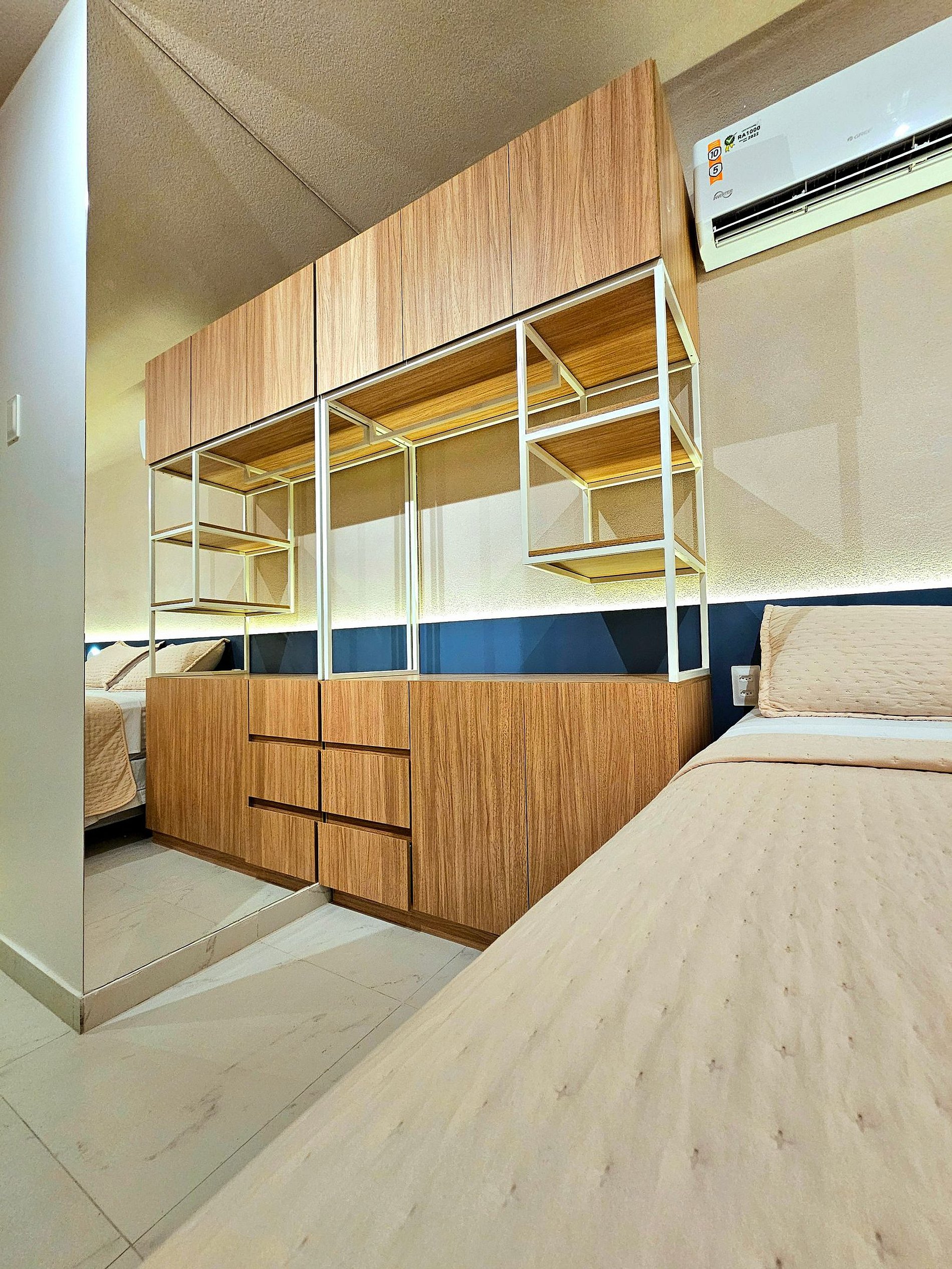 Este studio foi projetado para proporcionar uma estadia com muito estilo e conforto. A decoração moderna, com iluminação aconchegante, cria um ambiente agradável, perfeito para relaxar após um dia explorando Porto de Galinhas. Os detalhes únicos, como a textura tátil e os móveis de alto padrão, fazem deste espaço uma escolha sofisticada e diferenciada para sua hospedagem. O studio acomoda até 4 pessoas confortavelmente. O quarto conta com uma cama de casal confortável, ideal para garantir uma boa noite de sono, temos também um sofá-cama de qualidade, proporcionando espaço extra para dois hóspedes. Tudo foi pensado para oferecer praticidade e bem-estar. A cozinha completa é equipada com os principais eletrodomésticos, incluindo geladeira, cooktop, liquidificador e cafeteira, além de utensílios de cozinha essenciais. Este ambiente foi planejado para que você possa preparar suas refeições de forma prática e conveniente, aproveitando o máximo de sua estadia sem abrir mão de conforto. A localização do Porto City também é um ponto forte. O studio está a poucos minutos das praias e da principal rua do centrinho de Porto de Galinhas, onde você encontrará uma grande variedade de restaurantes, lojas e atrações turísticas. Sua estadia será marcada pela conveniência de ter tudo por perto, facilitando seu deslocamento e aproveitamento do melhor que a cidade tem a oferecer. Este studio é perfeito para quem busca uma estadia estilosa, bem equipada e com uma localização prática, ideal para casais, famílias pequenas ou amigos que desejam explorar Porto de Galinhas com conforto e sofisticação.