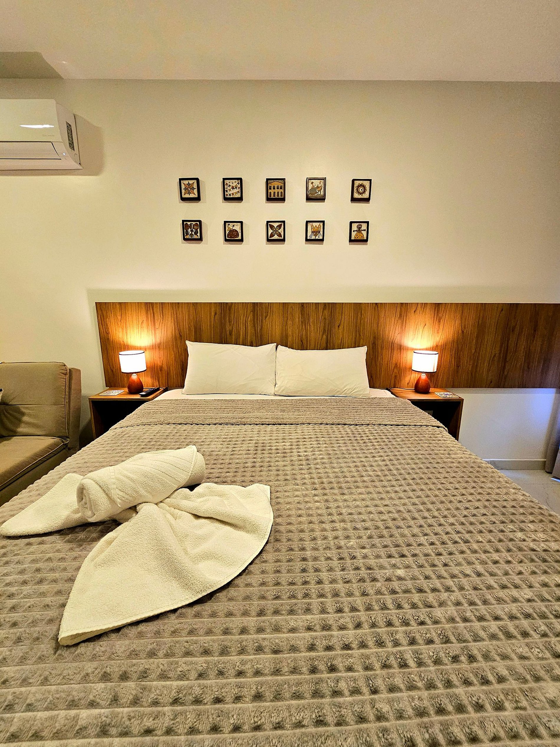 * Acomoda até 4 Pessoas: O apartamento comporta até 4 pessoas com total conforto. Ele dispõe de uma cama de casal espaçosa e confortável, e um sofá-cama de excelente qualidade, perfeito para dois hóspedes adicionais. O ambiente é ideal para famílias ou pequenos grupos de amigos que desejam compartilhar momentos juntos, sem abrir mão de conforto.