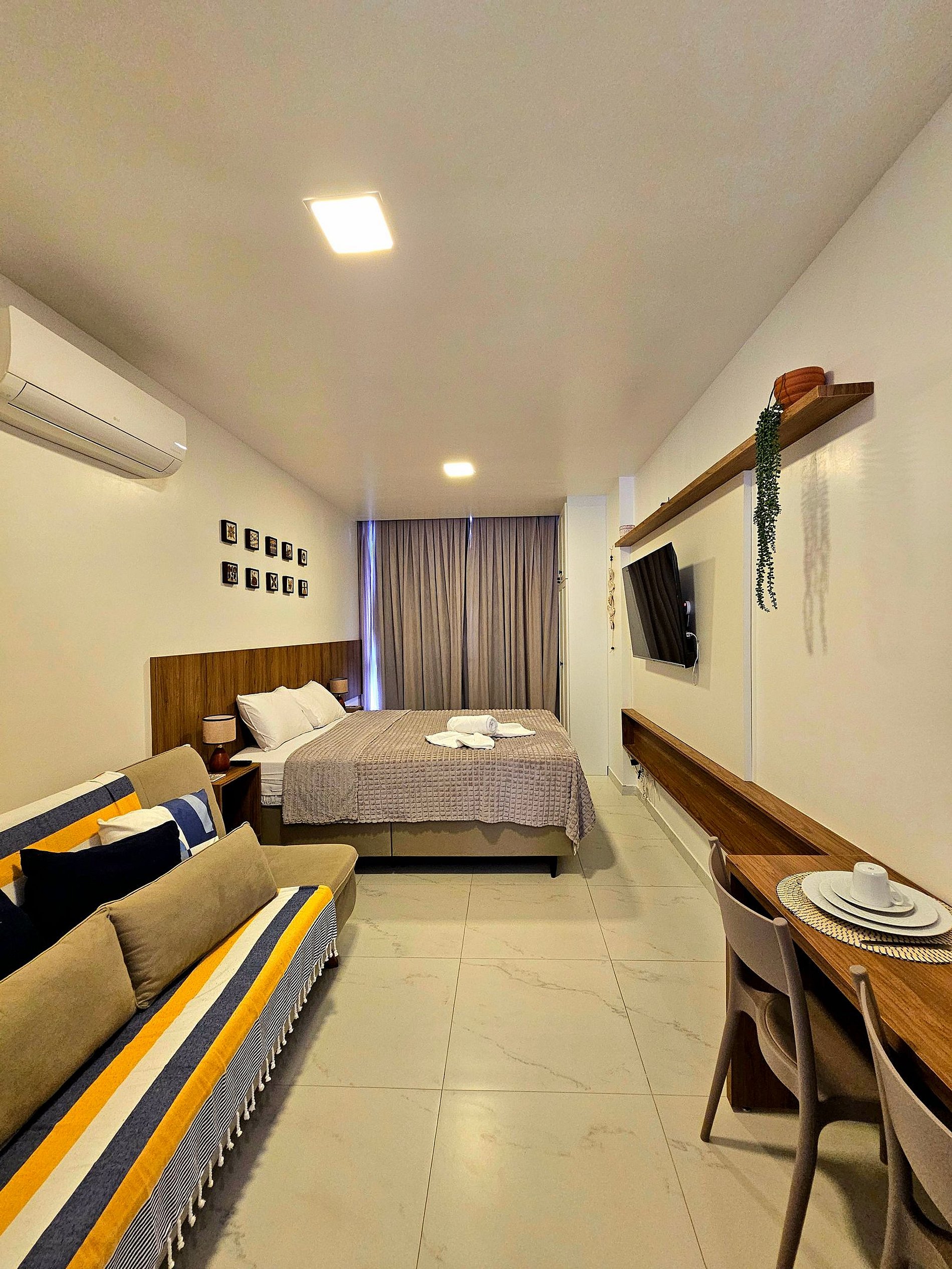 Cada canto do apartamento foi planejado com foco no conforto dos hóspedes. Com móveis e utensílios de alta qualidade, o ambiente é ideal tanto para descanso quanto para momentos de lazer. A escolha dos itens foi feita com atenção especial aos detalhes, garantindo que você se sinta em casa durante sua estadia.