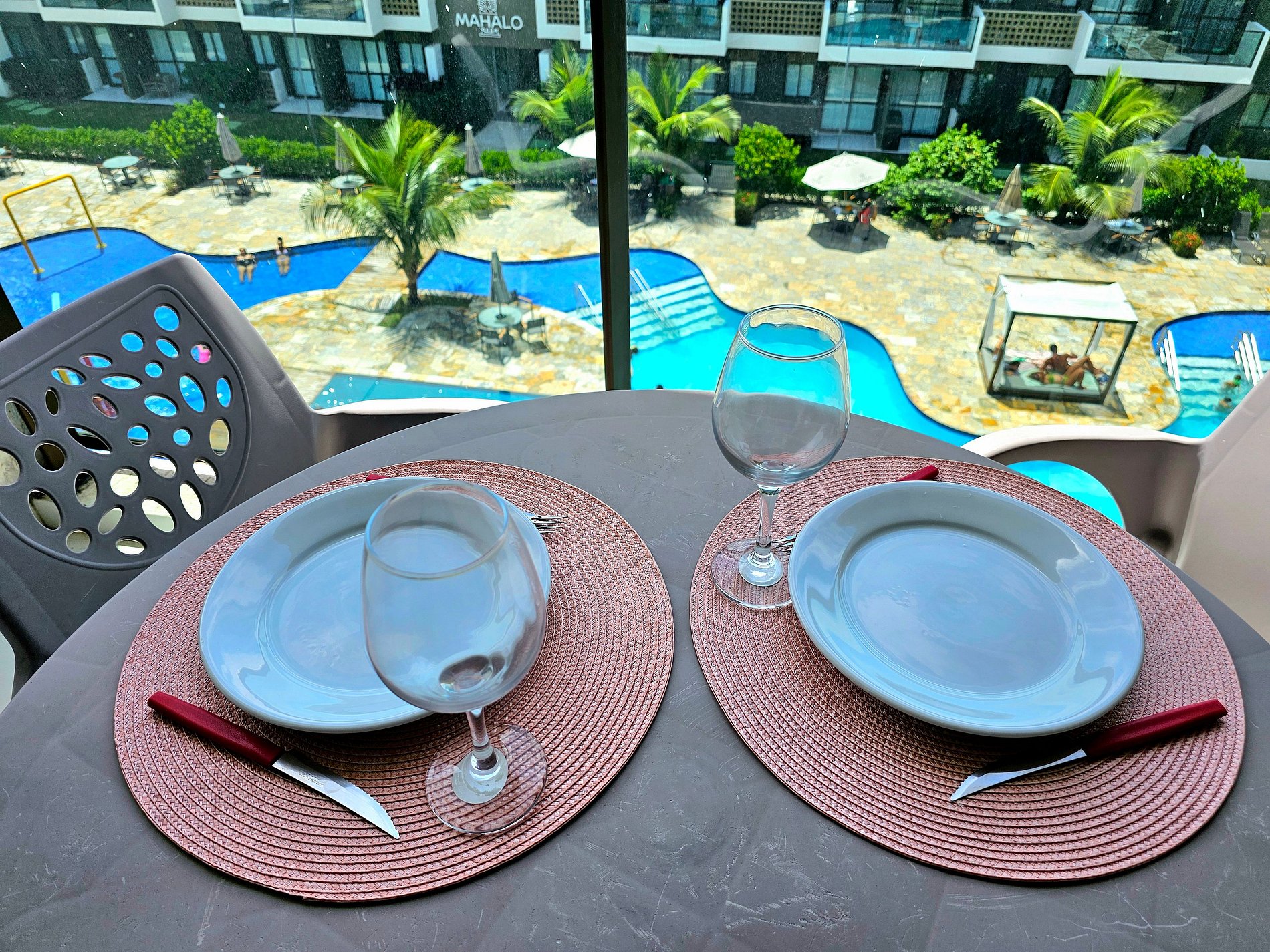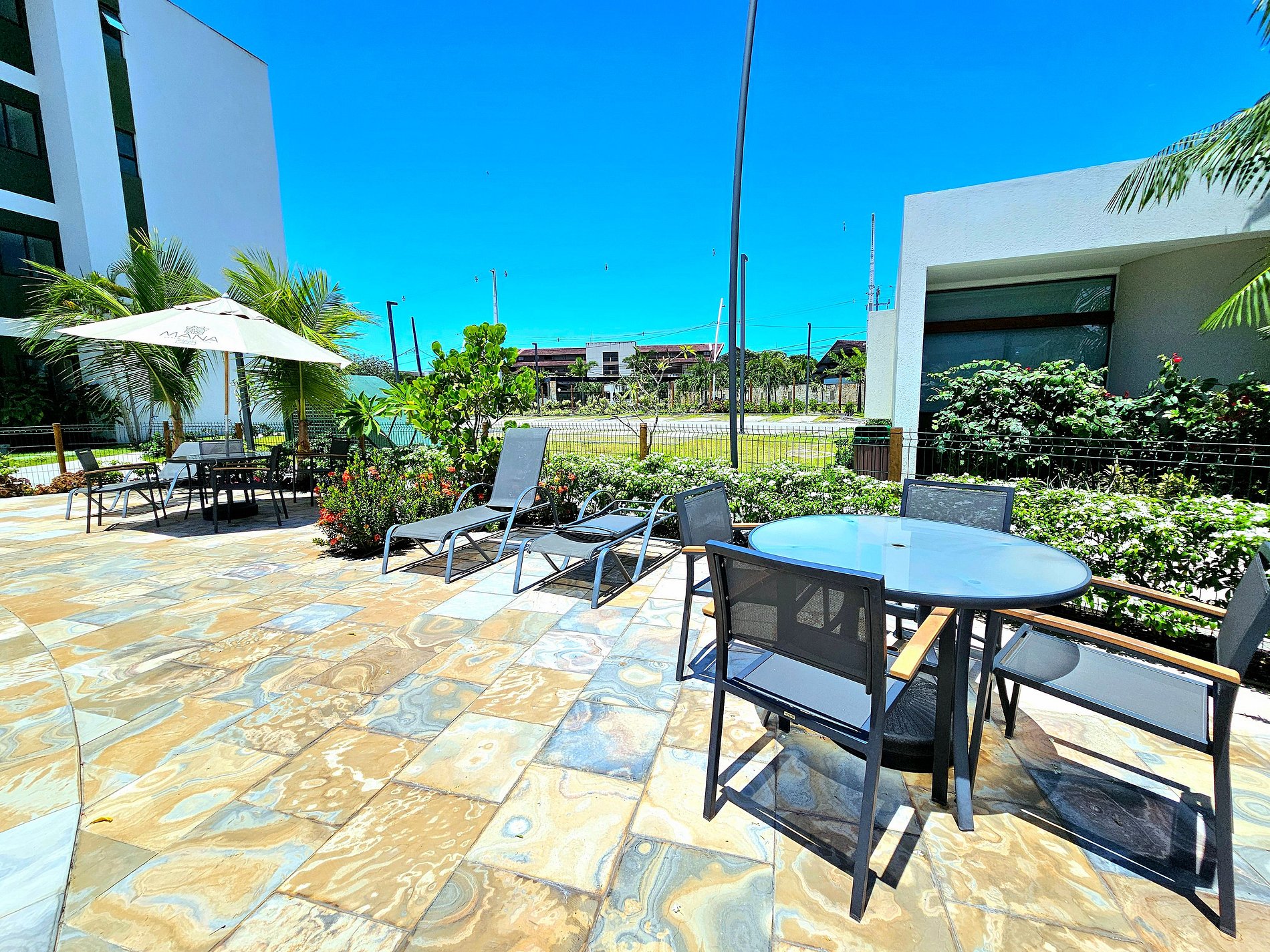 O Mana Beach Experience também oferece uma excelente varanda, perfeita para aproveitar momentos ao ar livre. O espaço é ideal para refeições ao ar livre ou simplesmente para relaxar após um dia de atividades.