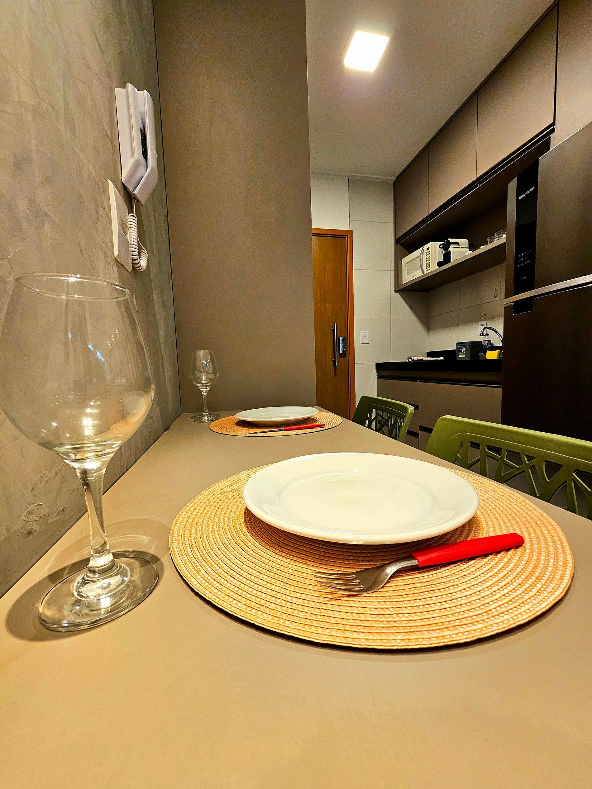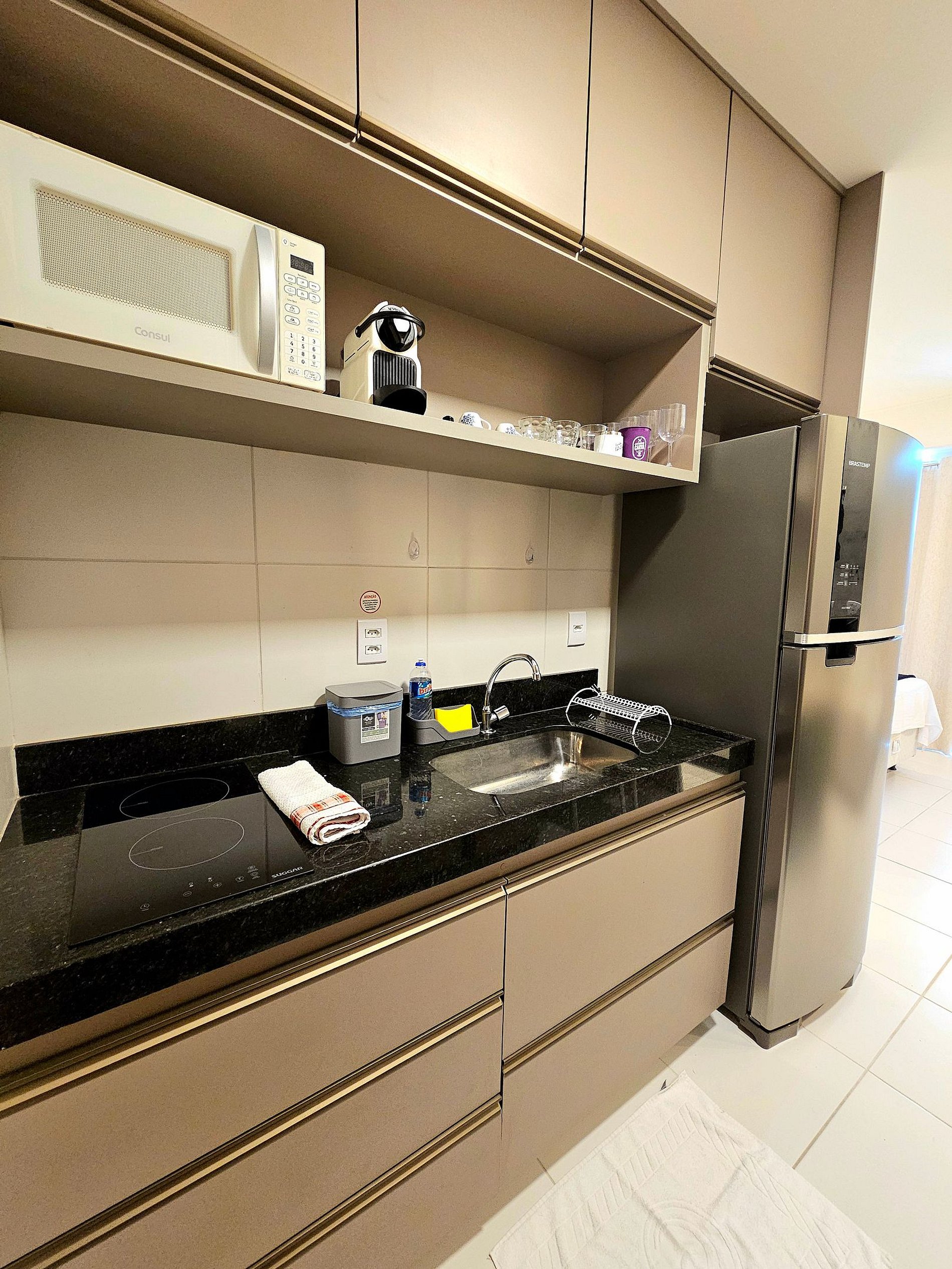 A cozinha é totalmente equipada com os principais eletrodomésticos, incluindo geladeira, cooktop, micro-ondas, liquidificador, sanduicheira, airfryer e cafeteira. Além de completa em utensílios como petisqueiras, Copos e Taças, conj. de facas, etc. Assim, você terá tudo o que precisa para preparar desde um café da manhã tranquilo até refeições mais elaboradas. Além disso, a cozinha conta com todos os utensílios básicos, como pratos, talheres e panelas, tornando o espaço prático e funcional para o dia a dia.