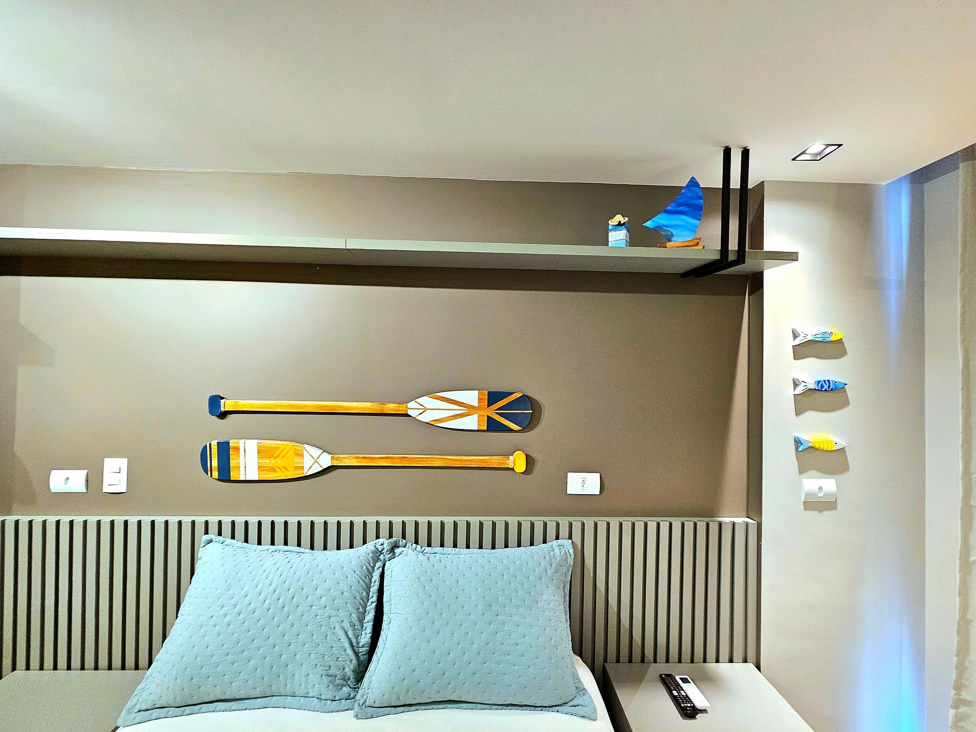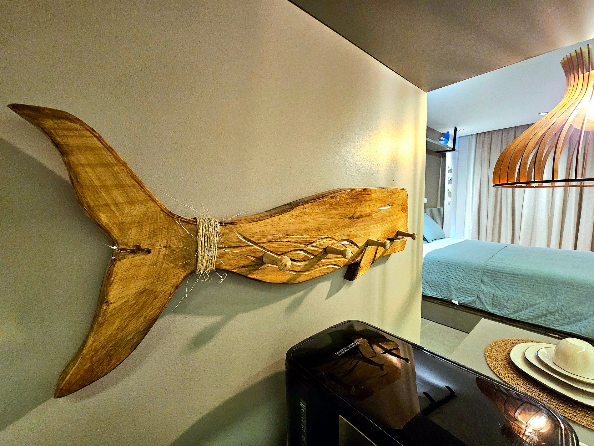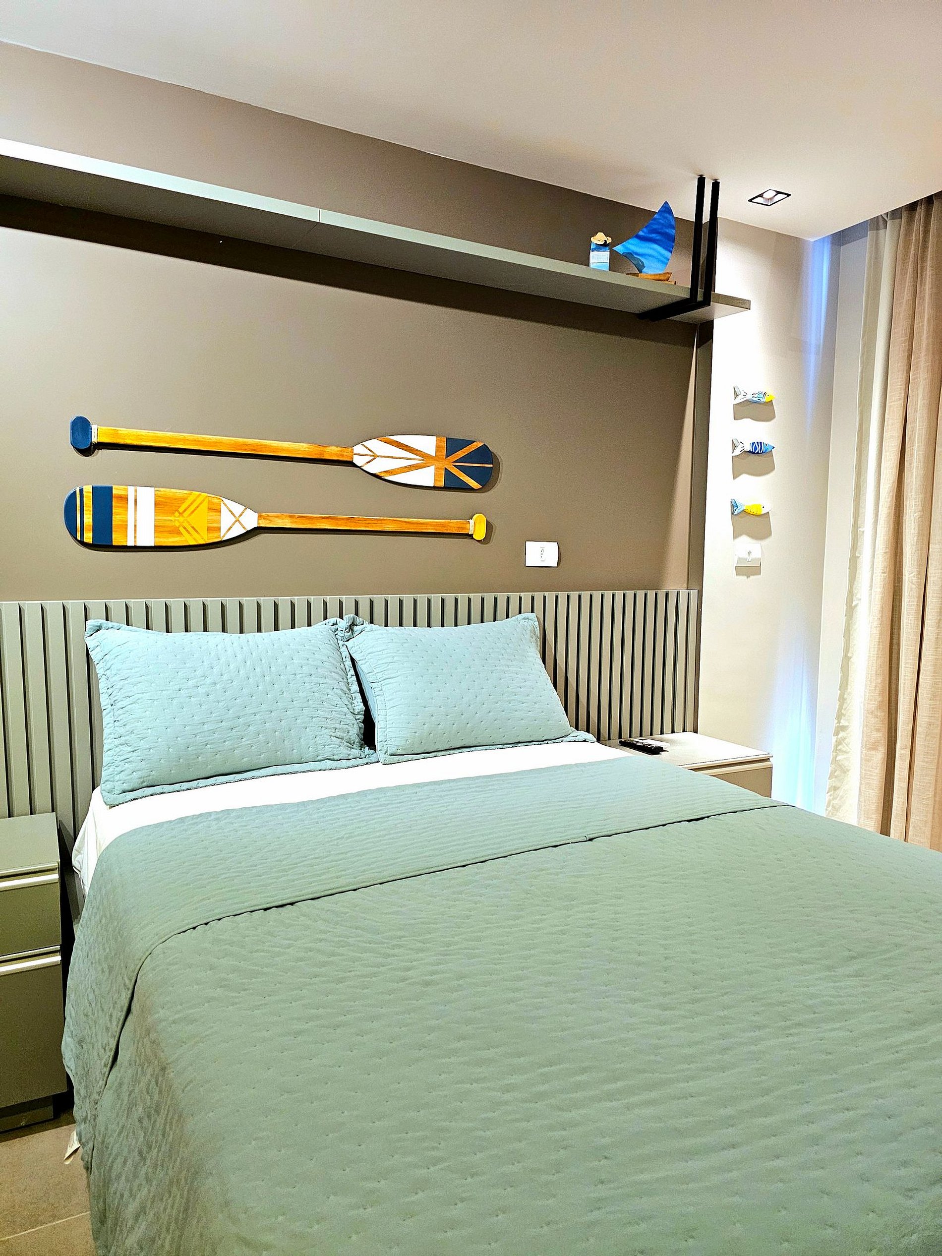 Decoração Moderna e Iluminação Planejada: A decoração do apartamento segue um estilo moderno e elegante, com detalhes em cores neutras e iluminação indireta que criam uma atmosfera aconchegante e sofisticada. As luzes estrategicamente posicionadas proporcionam um ambiente acolhedor, ideal tanto para momentos de relaxamento quanto para criar um clima especial durante suas noites no Reserva do Cupe