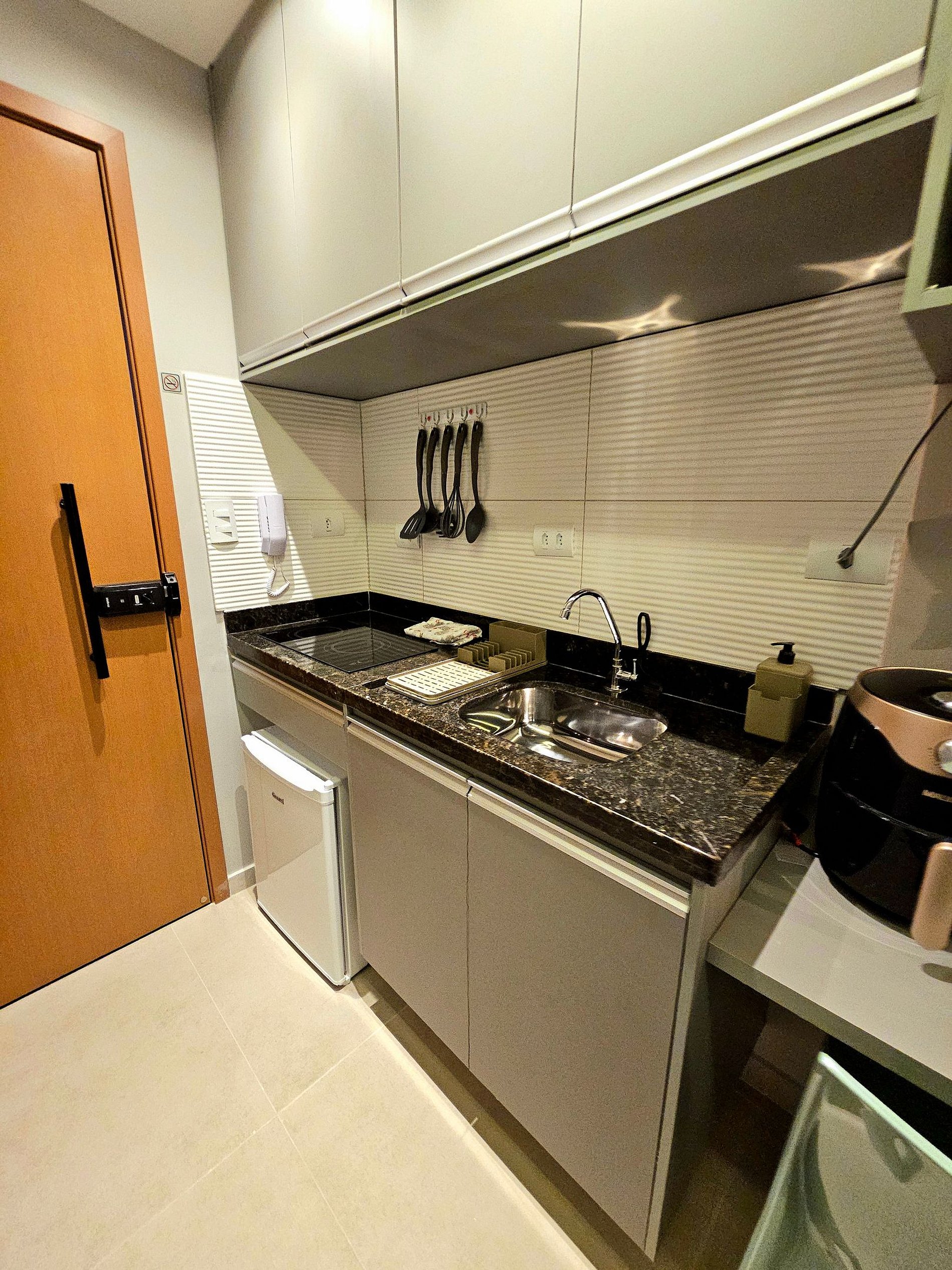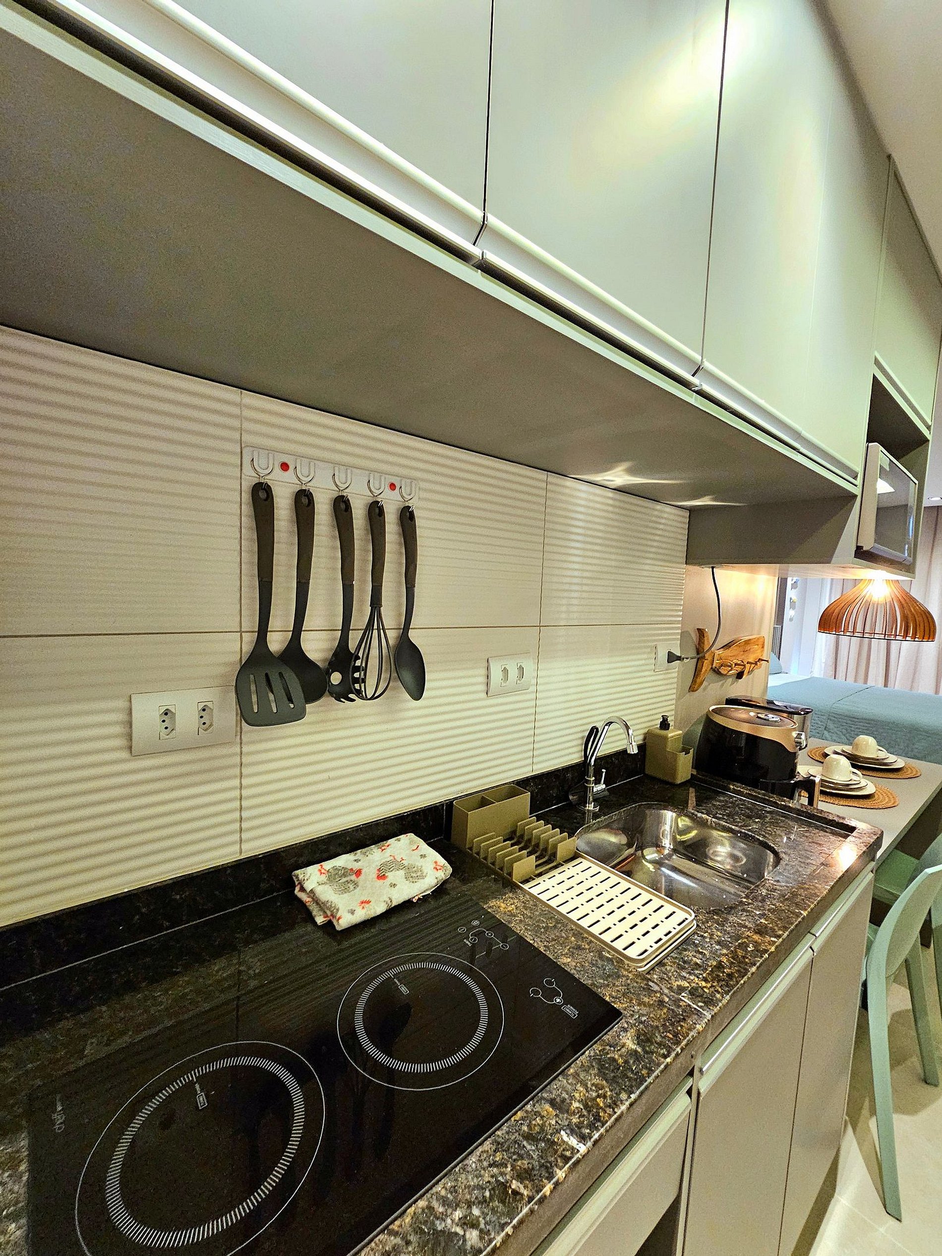 Destaques do Apartamento: Utensílios de Primeira Linha. Este apartamento foi planejado para oferecer a melhor experiência possível aos hóspedes. A cozinha é totalmente equipada com eletrodomésticos de ponta, incluindo Cooktop, sanduicheira, cafeteira, airfryer e liquidificador, garantindo que você tenha tudo o que precisa para preparar suas refeições com praticidade. Além disso, todos os utensílios são de alta qualidade, proporcionando uma experiência gourmet no conforto de seu próprio espaço.