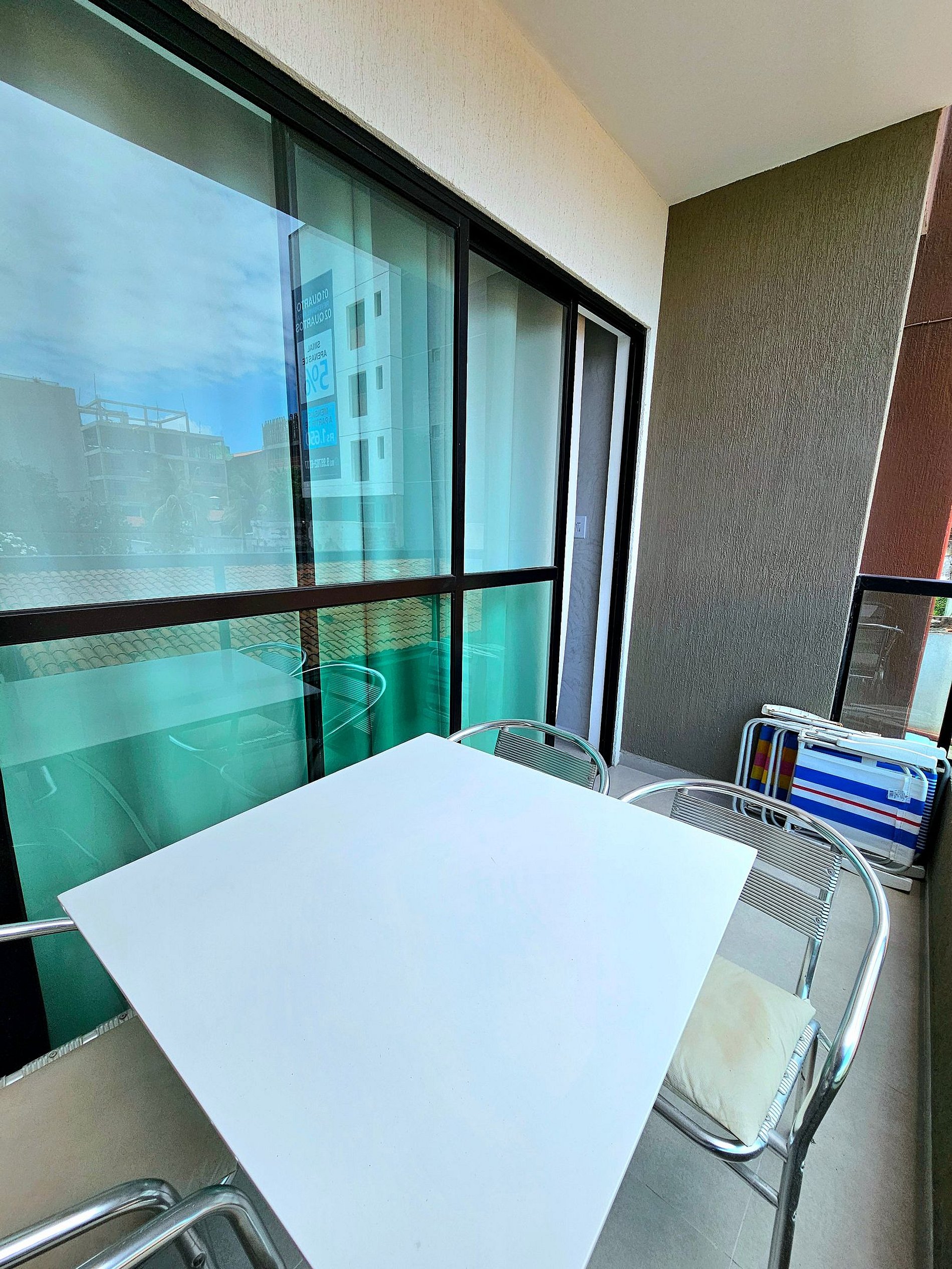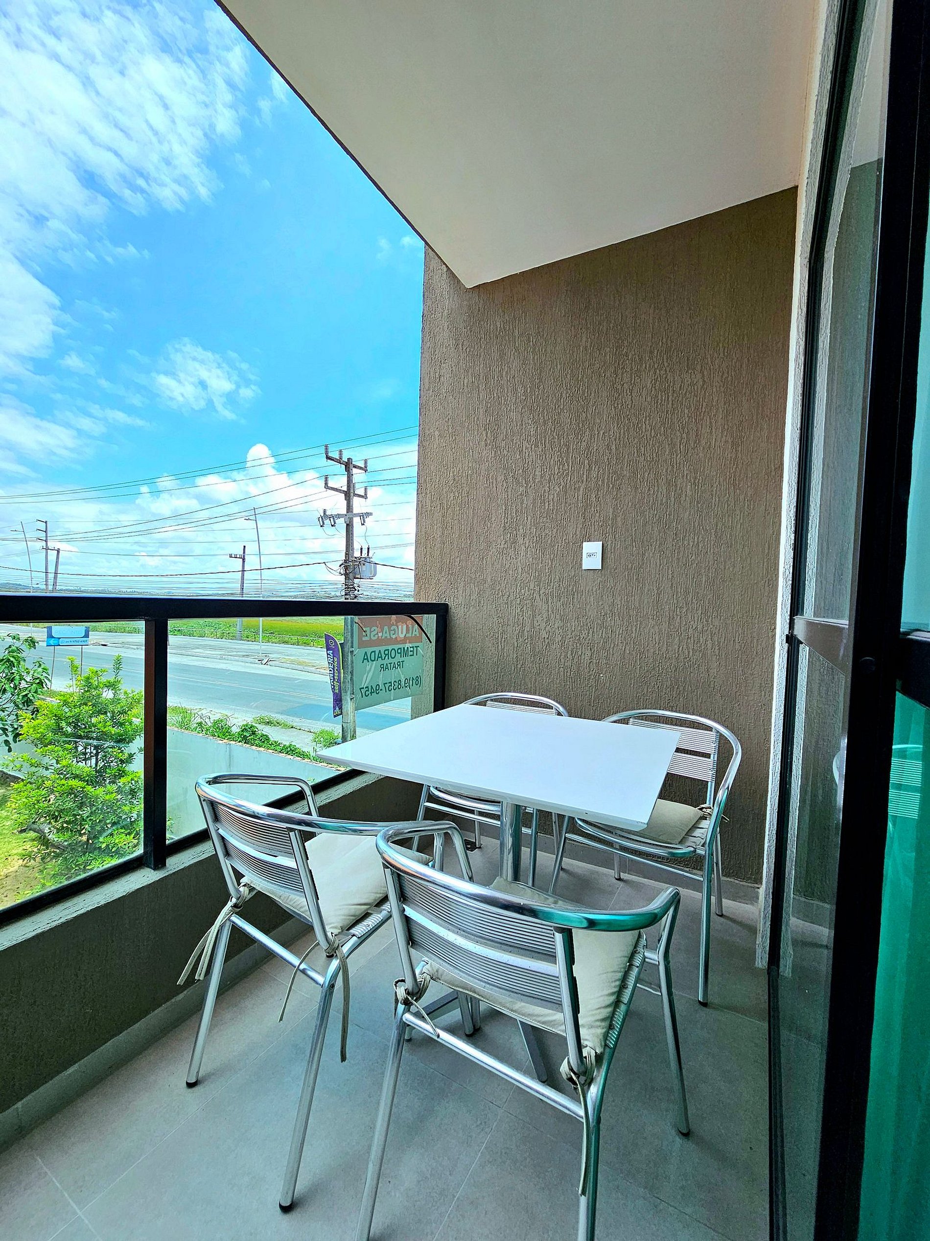 Ao entrar, você encontrará uma sala de estar moderna, equipada com um excelente sofá-cama, perfeito para acomodar um casal de forma confortável. A sala também dispõe de uma smart TV, garantindo momentos de lazer e entretenimento durante a sua estadia. O ambiente se estende até uma espaçosa varanda, onde há uma mesa para 4 pessoas, ideal para refeições ao ar livre ou para relaxar enquanto aprecia o clima tropical de Porto de Galinhas. A varanda é um dos pontos altos do apartamento, proporcionando um espaço perfeito para começar o dia com um café da manhã ou relaxar à noite.