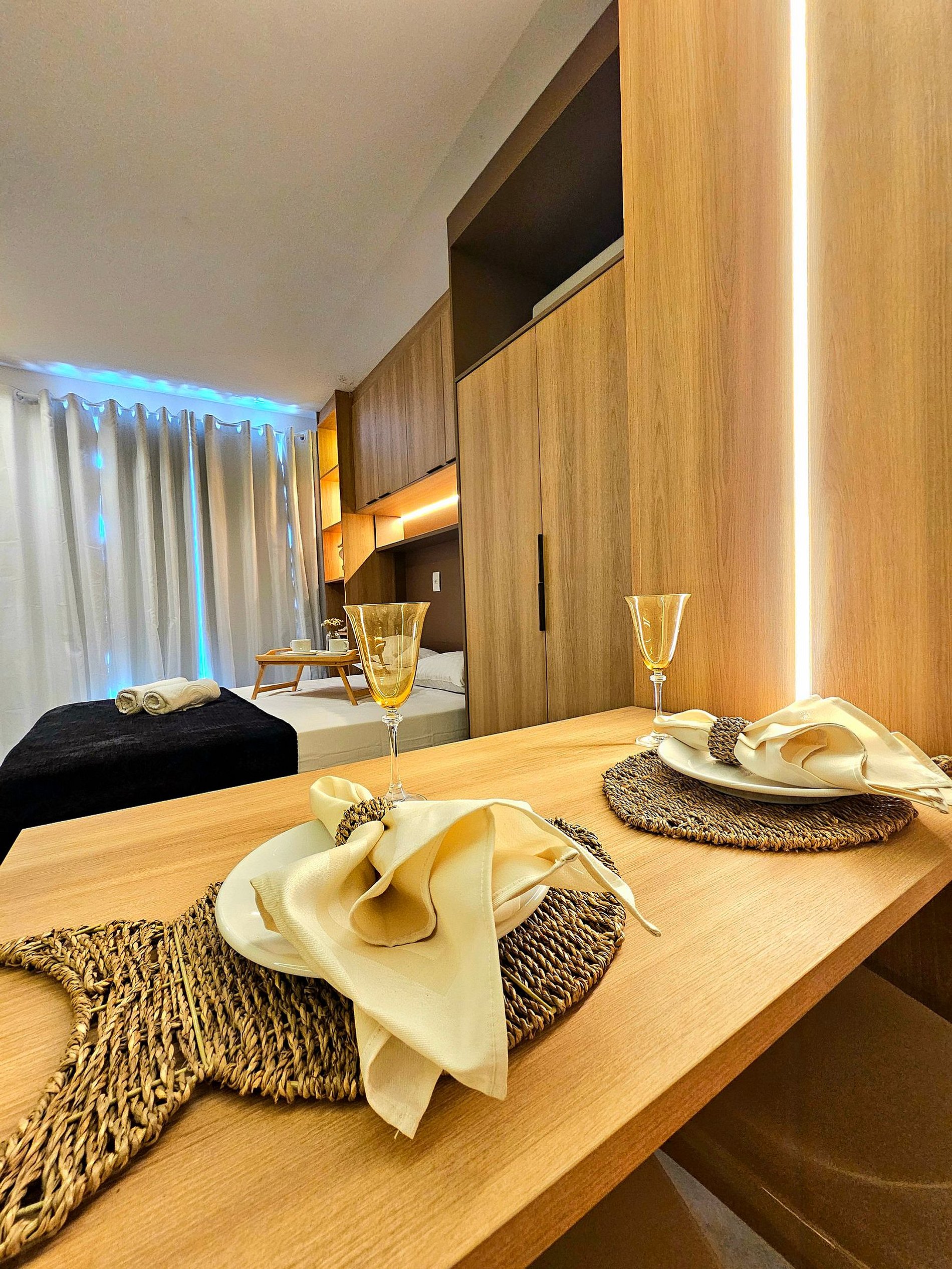 Decoração Moderna e Iluminação Planejada: A decoração do apartamento segue um estilo moderno e elegante, com detalhes em cores neutras e iluminação indireta que criam uma atmosfera aconchegante e sofisticada. As luzes estrategicamente posicionadas proporcionam um ambiente acolhedor, ideal tanto para momentos de relaxamento quanto para criar um clima especial durante suas noites no Cupe Exclusive.