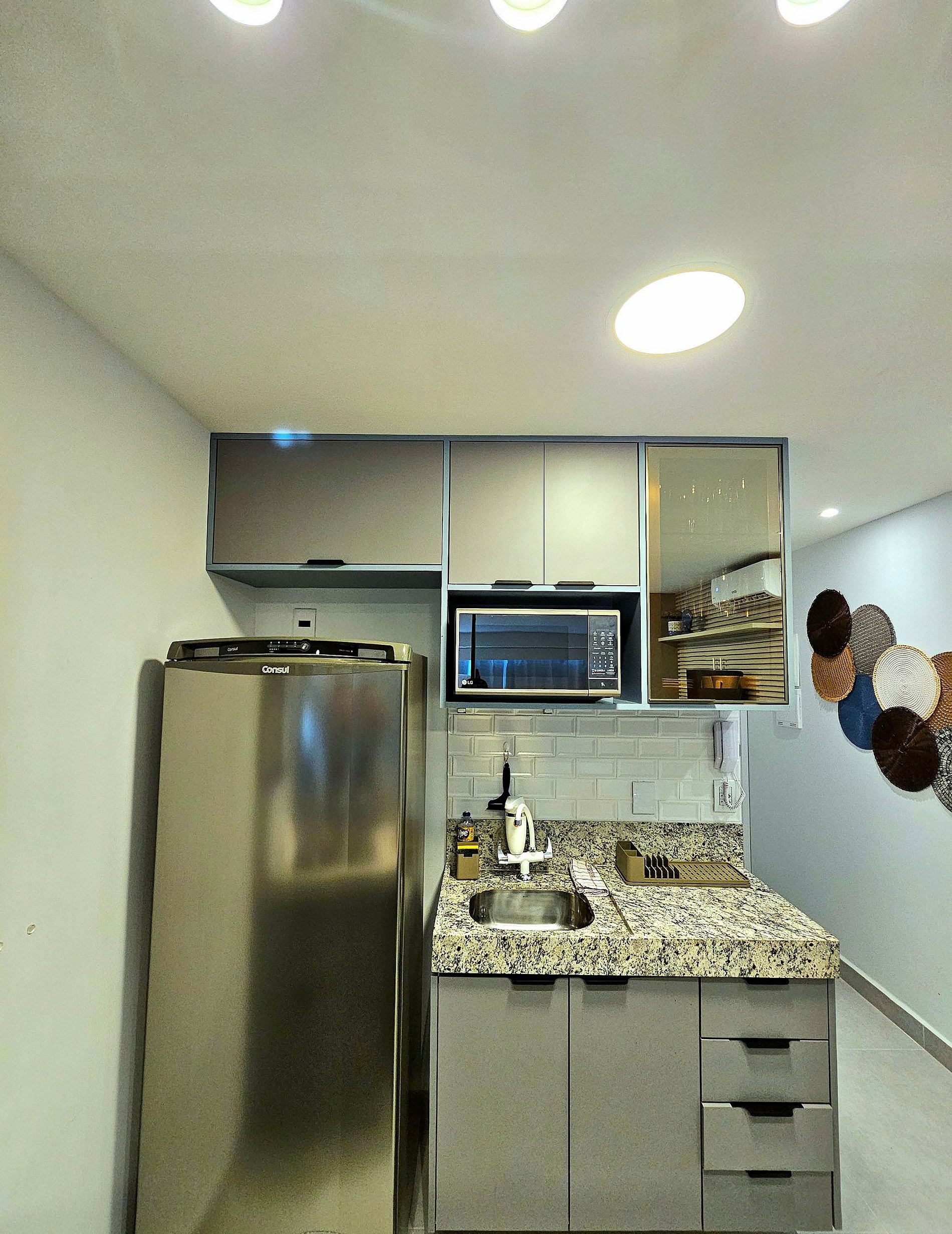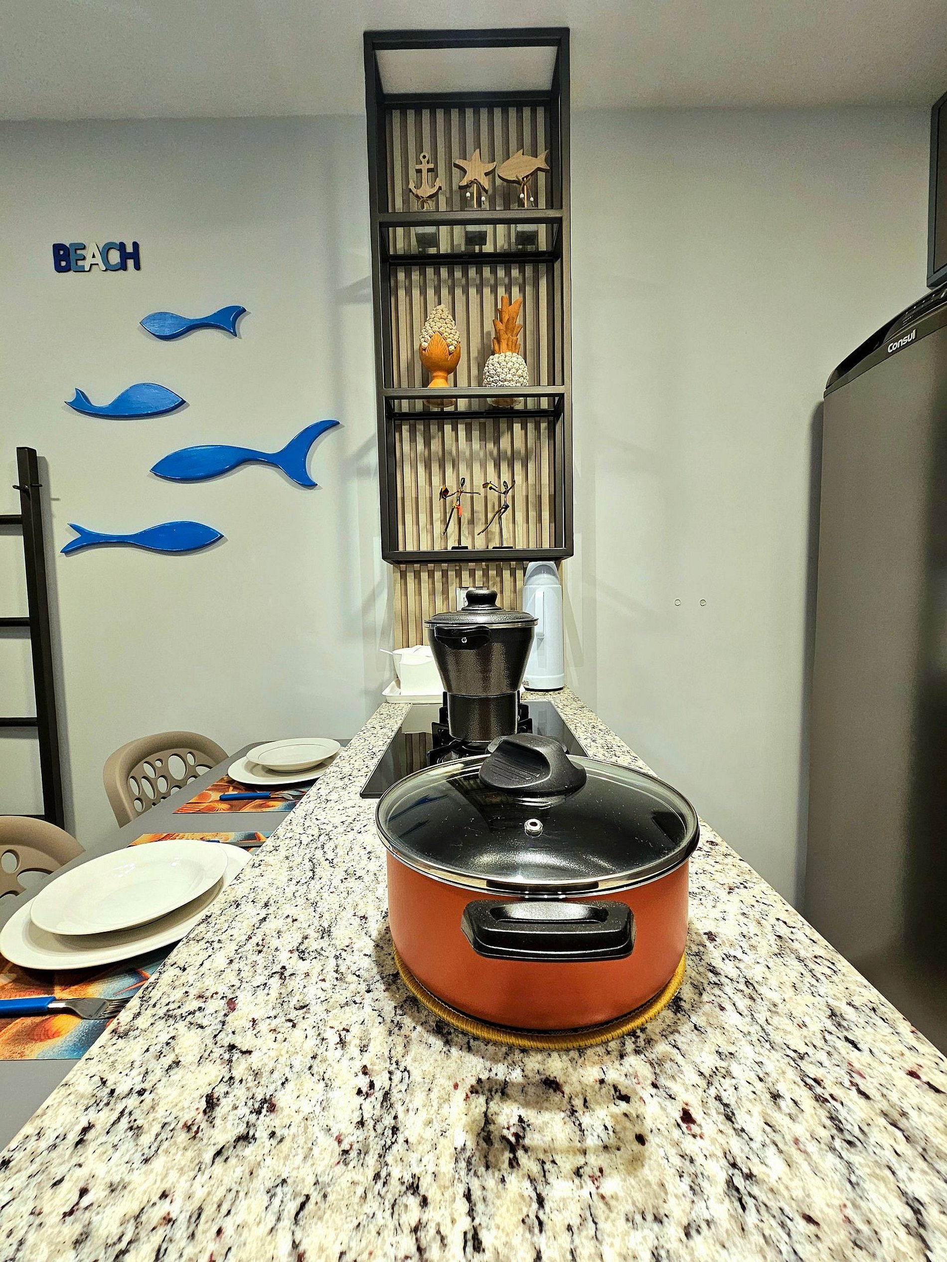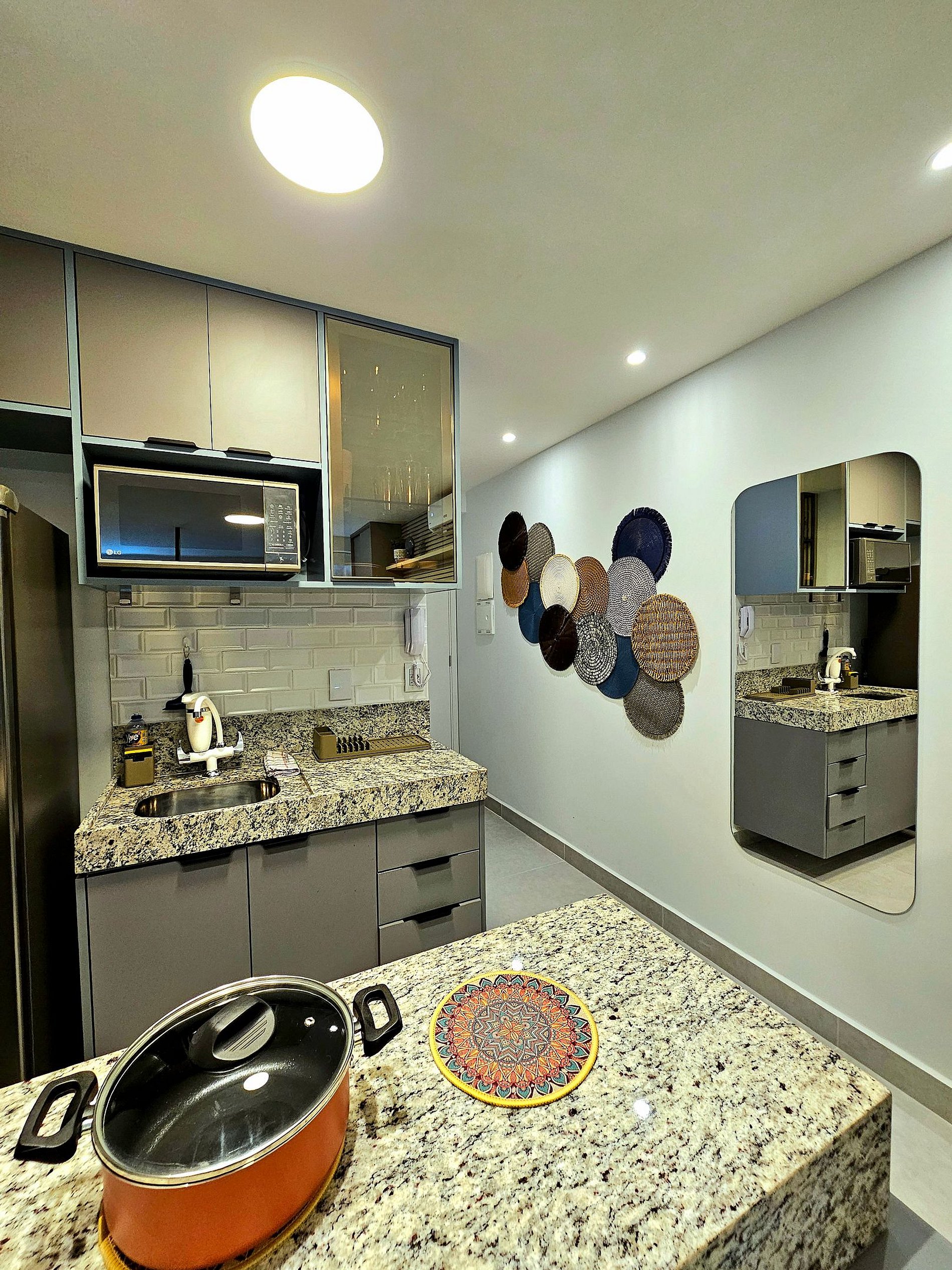 Cozinha Equipada: Prepare suas refeições com facilidade na cozinha bem equipada, que inclui os principais eletrodomésticos modernos (Liquidificador, Air fryer, cafeteira, microondas, sanduicheira). Seja para um café da manhã rápido antes de explorar a cidade ou para um jantar especial, você encontrará tudo o que precisa para cozinhar com praticidade e eficiência.
