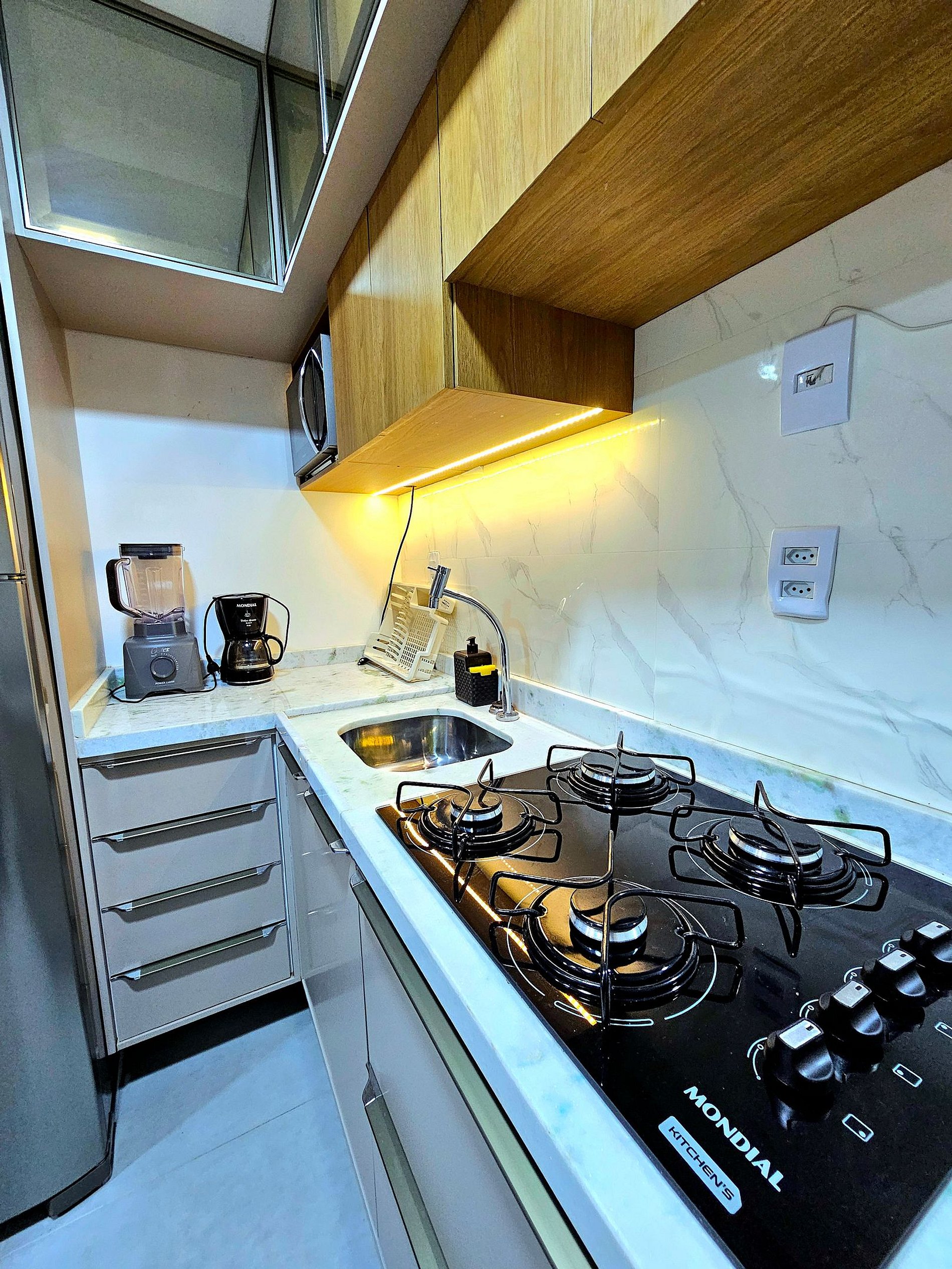 Cozinha Equipada Prepare suas refeições com facilidade na cozinha bem equipada, que inclui os principais eletrodomésticos modernos (Liquidificador, cafeteira, microondas, sanduicheira) Seja para um café da manhã rápido antes de explorar a cidade ou para um jantar especial, você encontrará tudo o que precisa para cozinhar com praticidade e eficiência.
