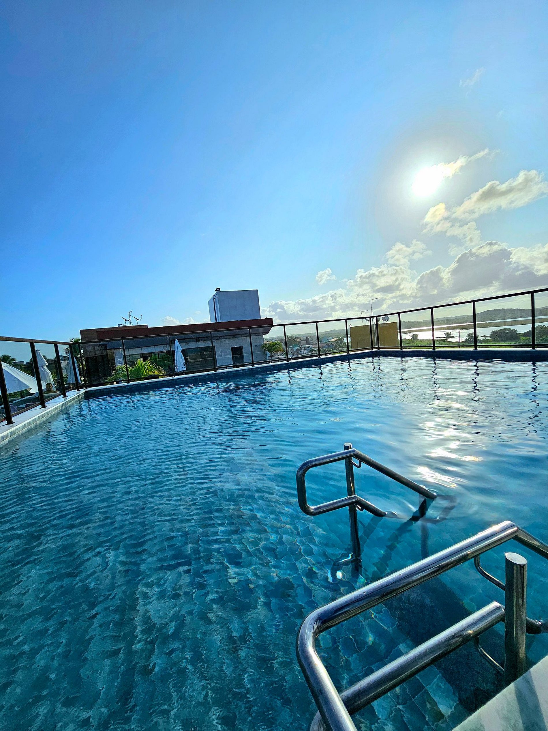 O Porto Atlantis foi projetado para oferecer uma estadia confortável e moderna, com uma estrutura completa e vistas incríveis. Um dos destaques é a piscina ampla com prainha, que oferece uma vista panorâmica espetacular do mar e do pôr do sol, proporcionando momentos únicos de relaxamento. Ao redor da piscina, você encontrará espreguiçadeiras e um lounge externo com mesas, perfeito para aproveitar o sol ou socializar com amigos e familiares.