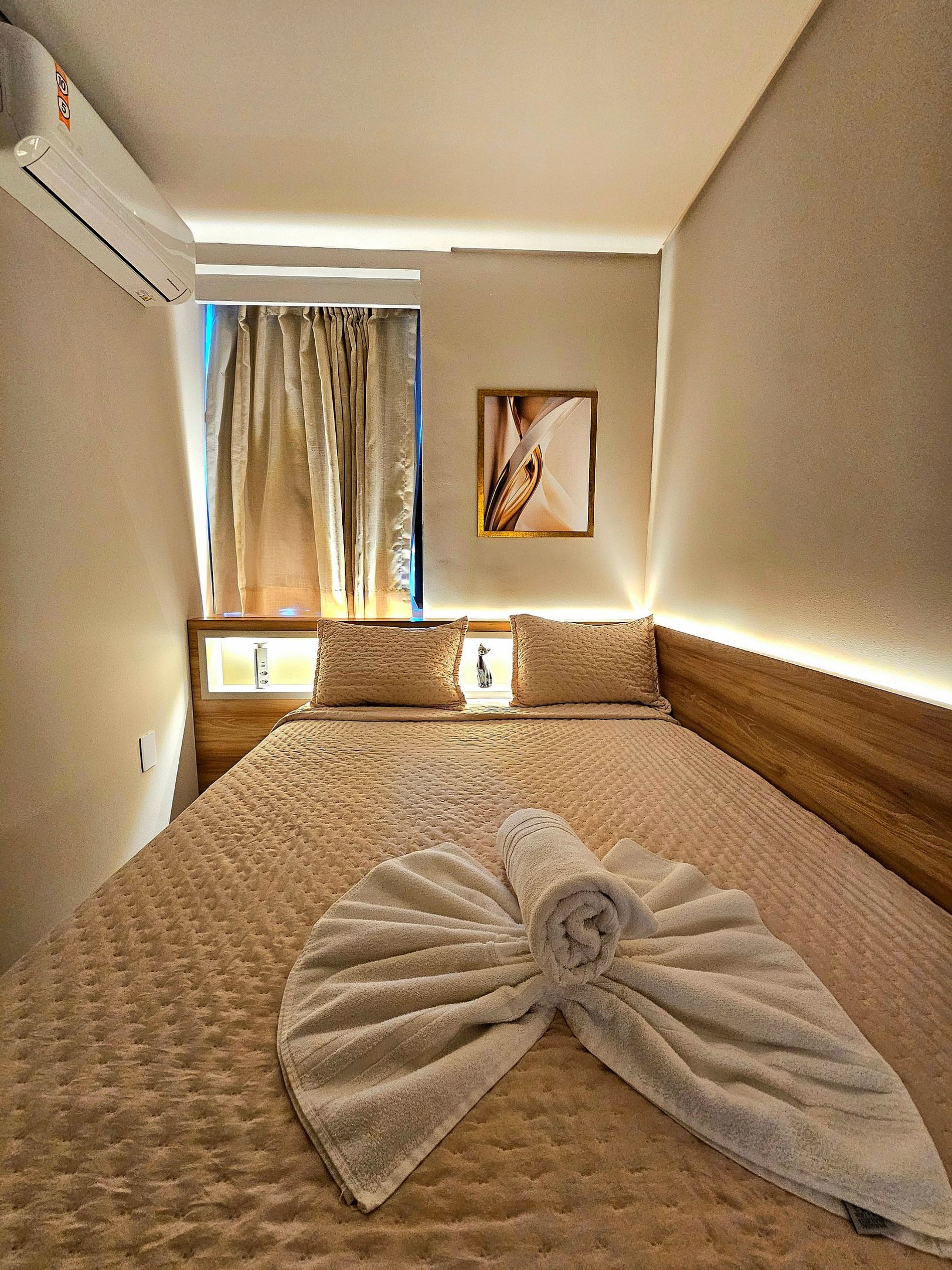 Este apartamento amplo e luxuoso foi planejado para proporcionar o máximo de conforto aos seus hóspedes. Com iluminação moderna e climatização em todos os ambientes, o espaço acomoda até 4 pessoas com conforto e estilo. O quarto principal é moderno, equipado com uma cama de casal extremamente confortável e uma decoração sofisticada que proporciona um ambiente relaxante após um dia de passeios em Porto de Galinhas.
