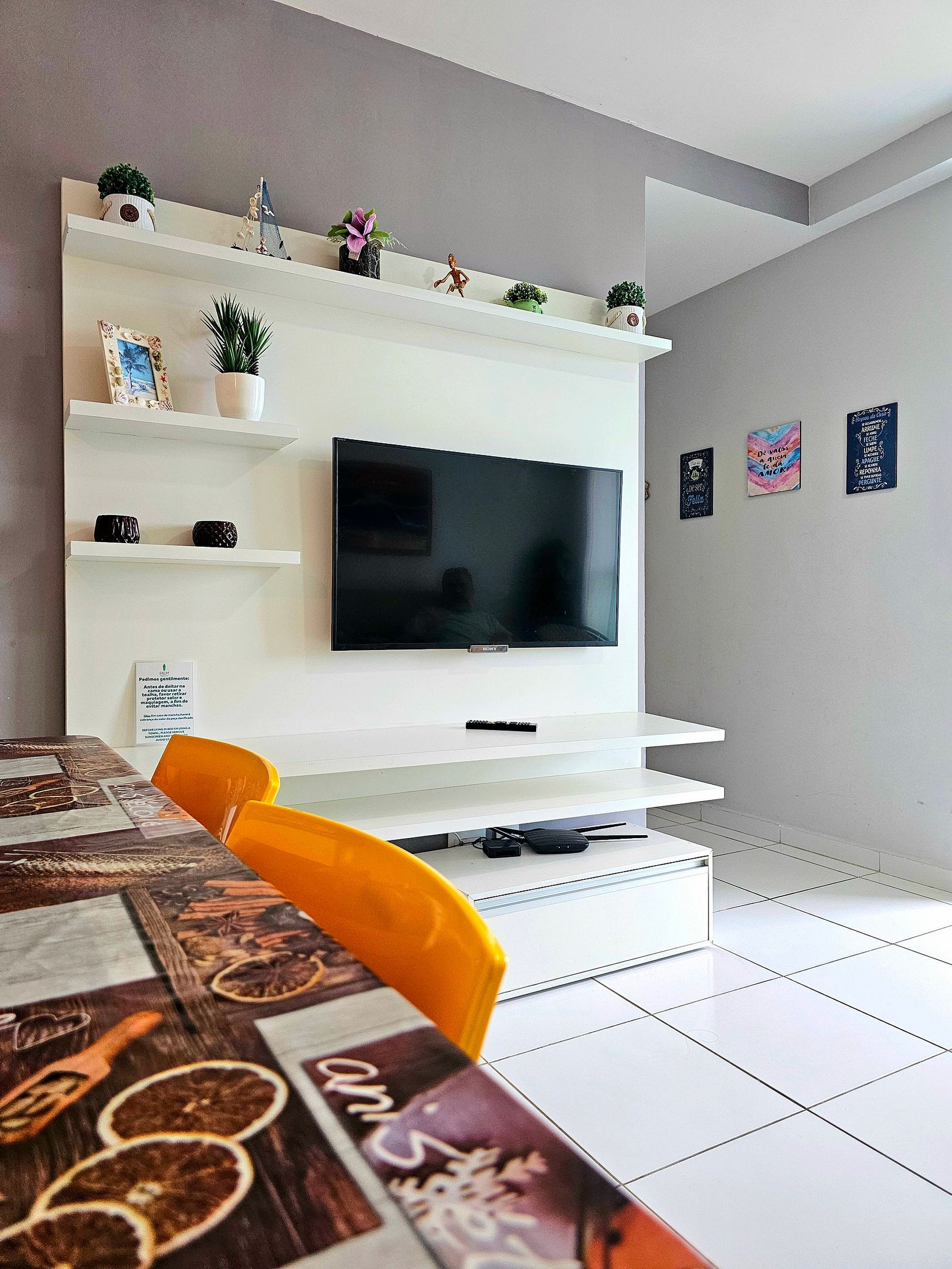 Apartamento de 3 quartos combina modernidade, conforto e praticidade, ideal para famílias ou grupos de até 8 pessoas. Os ambientes foram cuidadosamente decorados para criar um espaço aconchegante e funcional, garantindo uma estadia agradável. A sala de estar é equipada com um sofá de excelente qualidade, Smart Tv, uma boa mesa para refeições em família e varanda.