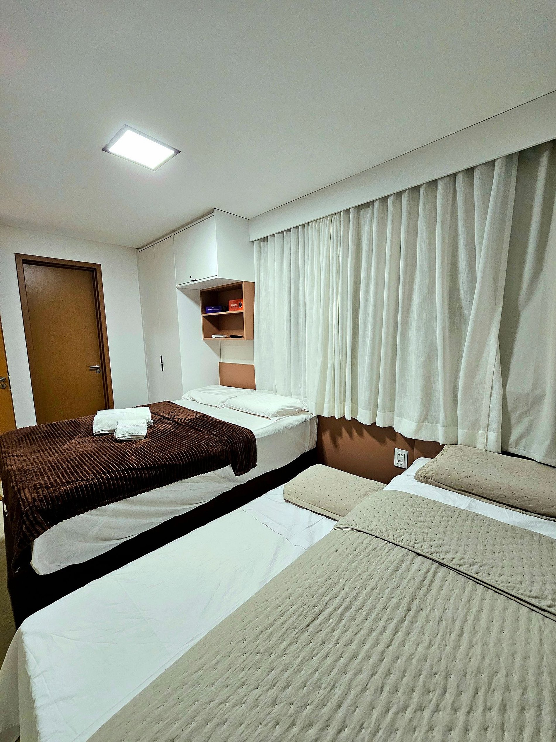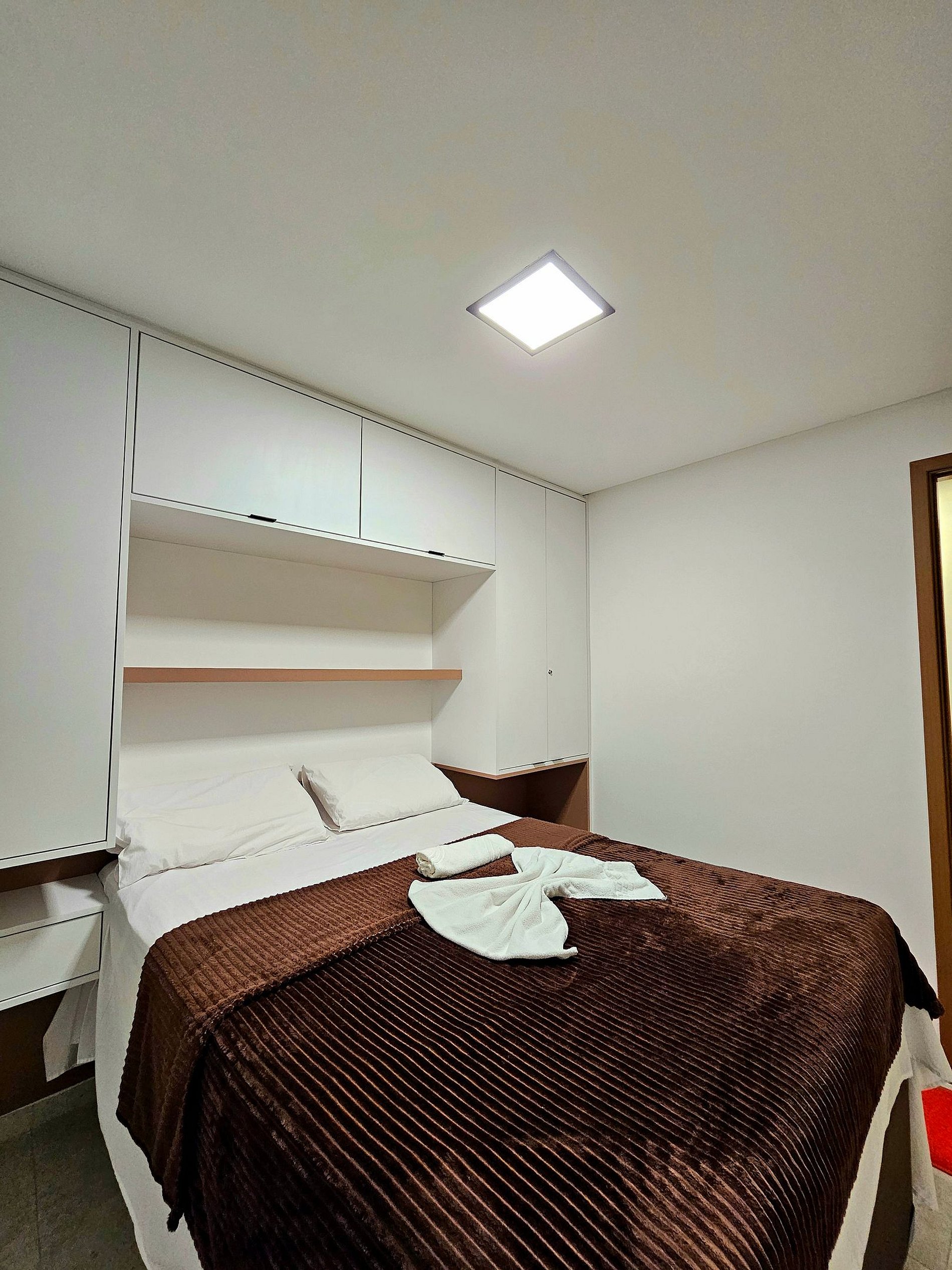 Este lindo e amplo apartamento de 2 quartos (1 suíte + 1 banheiro social) é a escolha perfeita para uma família ou grupo de amigos de até 6 pessoas para uma estadia com muito conforto, possuímos um Quarto social com uma excelente cama de casal, um banheiro social confortável e moderno e uma suíte que acomodam muito bem até 4 hóspedes.