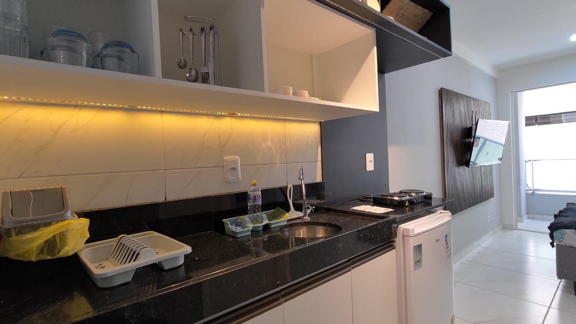Este apartamento foi planejado para oferecer a melhor experiência possível aos hóspedes. A cozinha é totalmente equipada com eletrodomésticos de ponta, incluindo uma sanduicheira, cafeteira e liquidificador, garantindo que você tenha tudo o que precisa para preparar suas refeições com praticidade. Além disso, todos os utensílios são de alta qualidade, proporcionando uma experiência gourmet no conforto de seu próprio espaço, temos também Cooler para maior comodidade dos nossos hóspedes. O apartamento conta com uma Excelente cama de casal e uma cama auxiliar de solteiro, além de bem equipado ainda tem uma confortável varanda, perfeito para um descanso no final da tarde ou um jantar romântico.