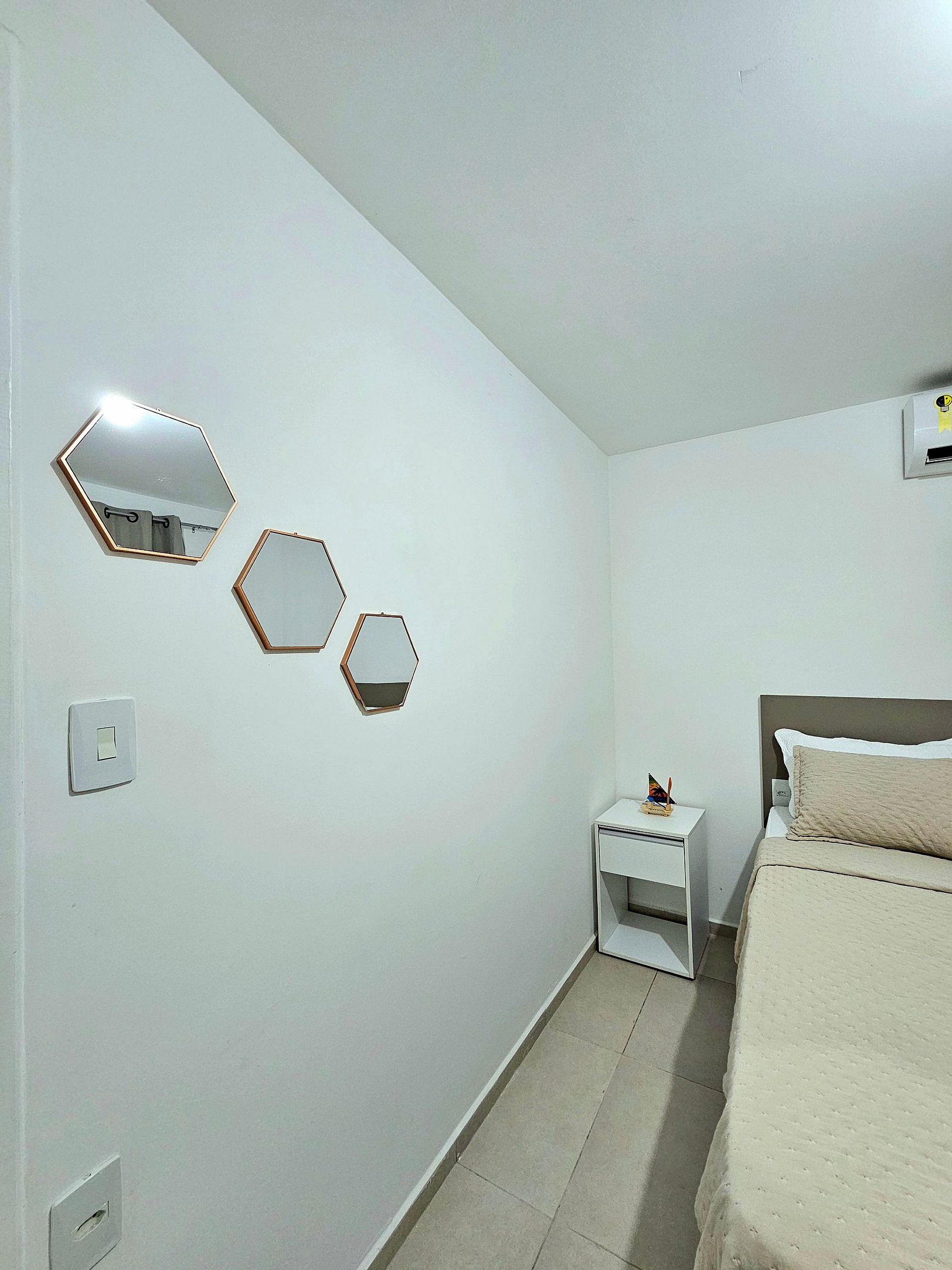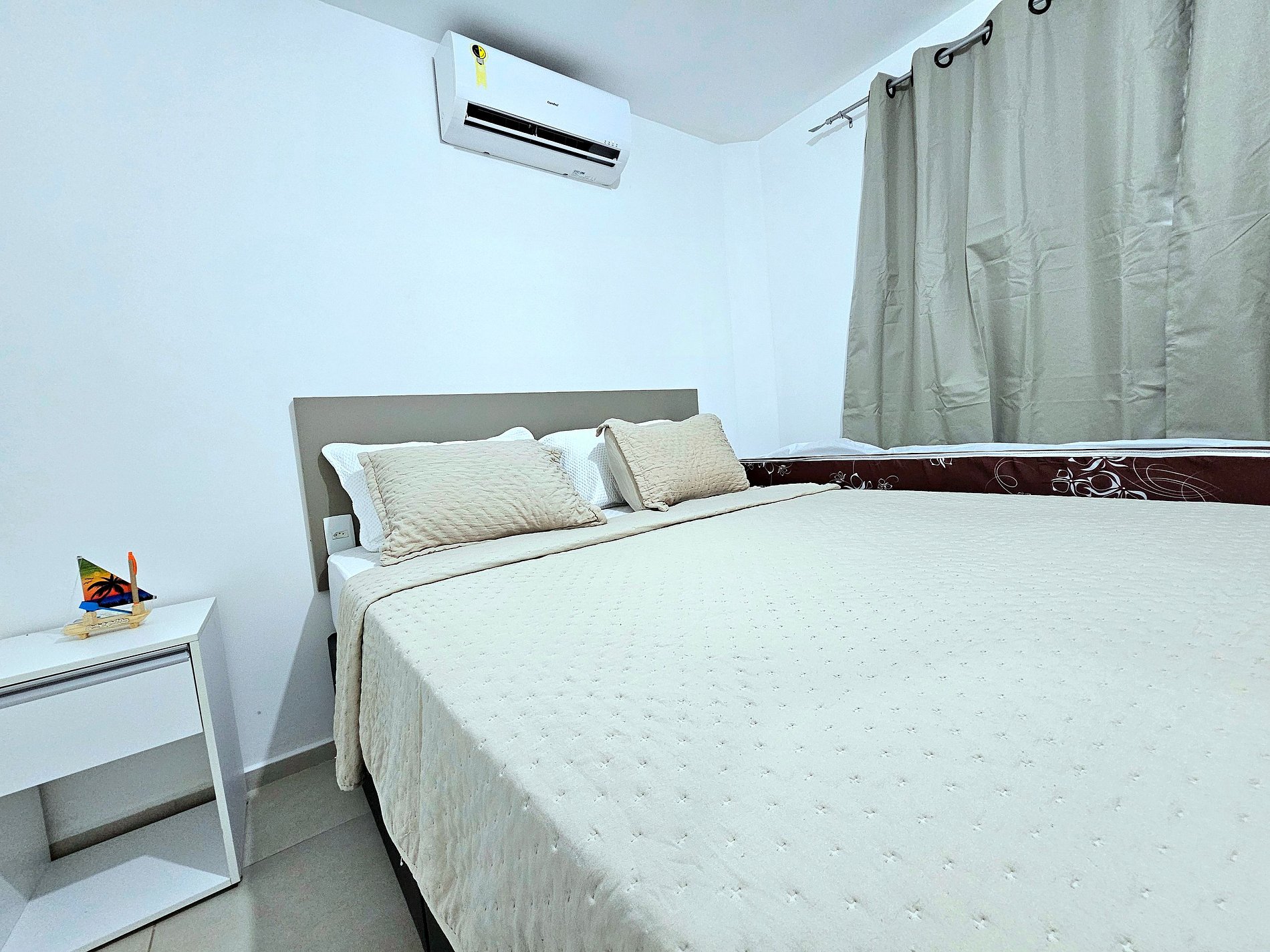 Este lindo e amplo apartamento de 2 quartos (1 suíte + 1 banheiro social) é a escolha perfeita para uma família ou grupo de amigos de até 6 pessoas para uma estadia com muito conforto, possuímos um Quarto social com uma excelente cama de casal e dois colchões extras de solteiro, um banheiro social confortável e moderno e uma suíte que acomodam muito bem 1 casal em cama Queen.