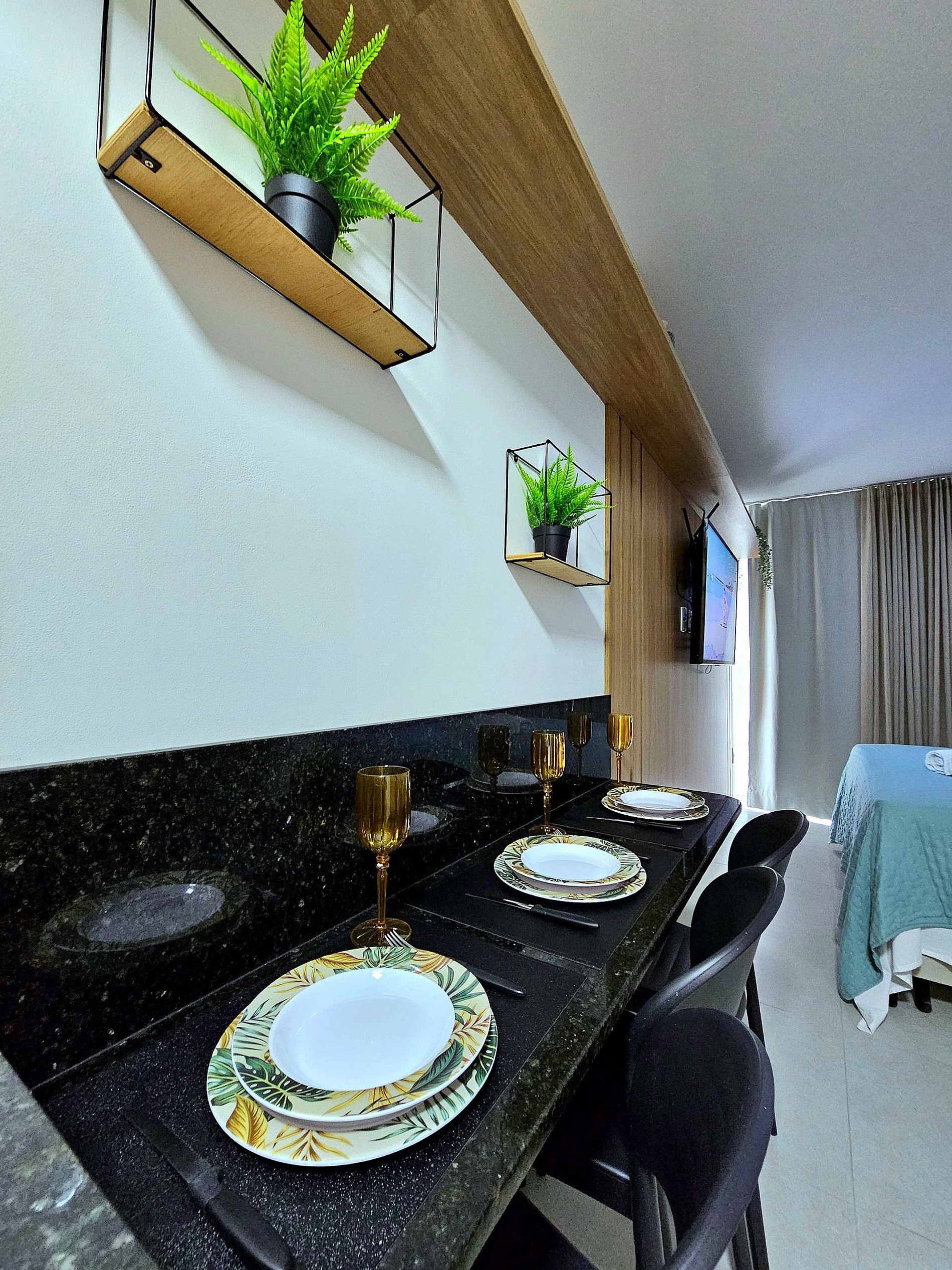 Lindo Flat Studio com Piscina privativa finamente decorado no centro de Porto de Galinhas. Cozinha completa e equipada, acomoda bem 3 pessoas, possui ar-condicionado, projeto de mobilias e decoração diferenciados para proporcionar o máximo de conforto. Ideal para aproveitar Porto sem depender de carro!