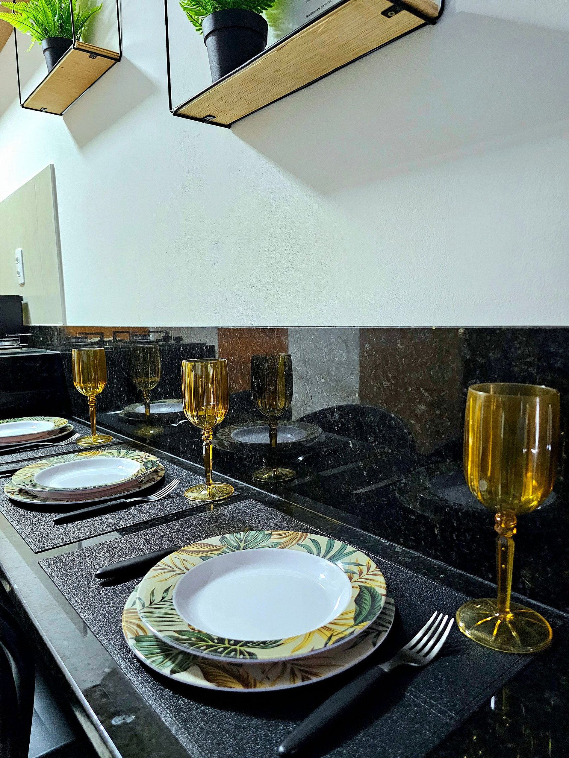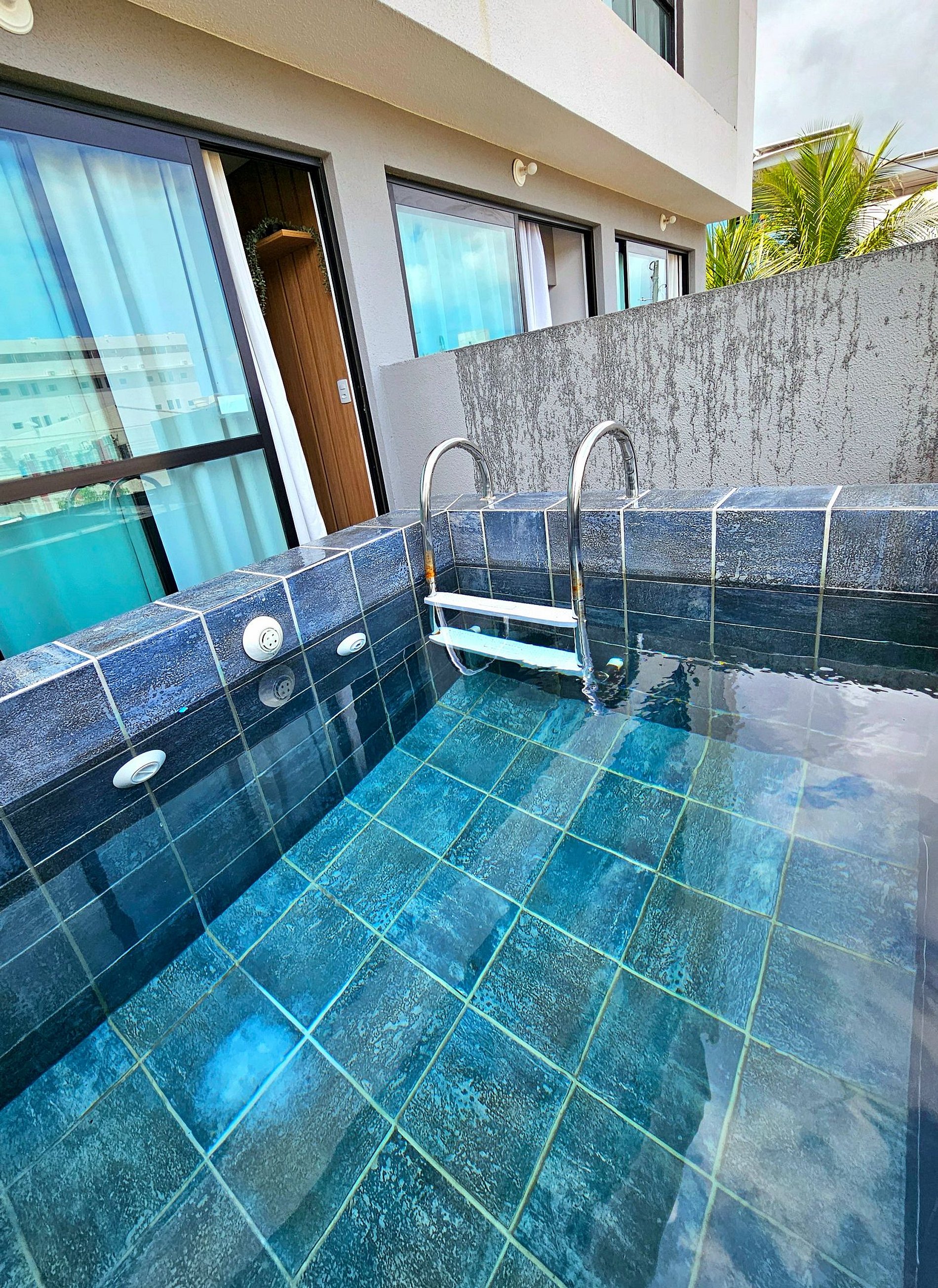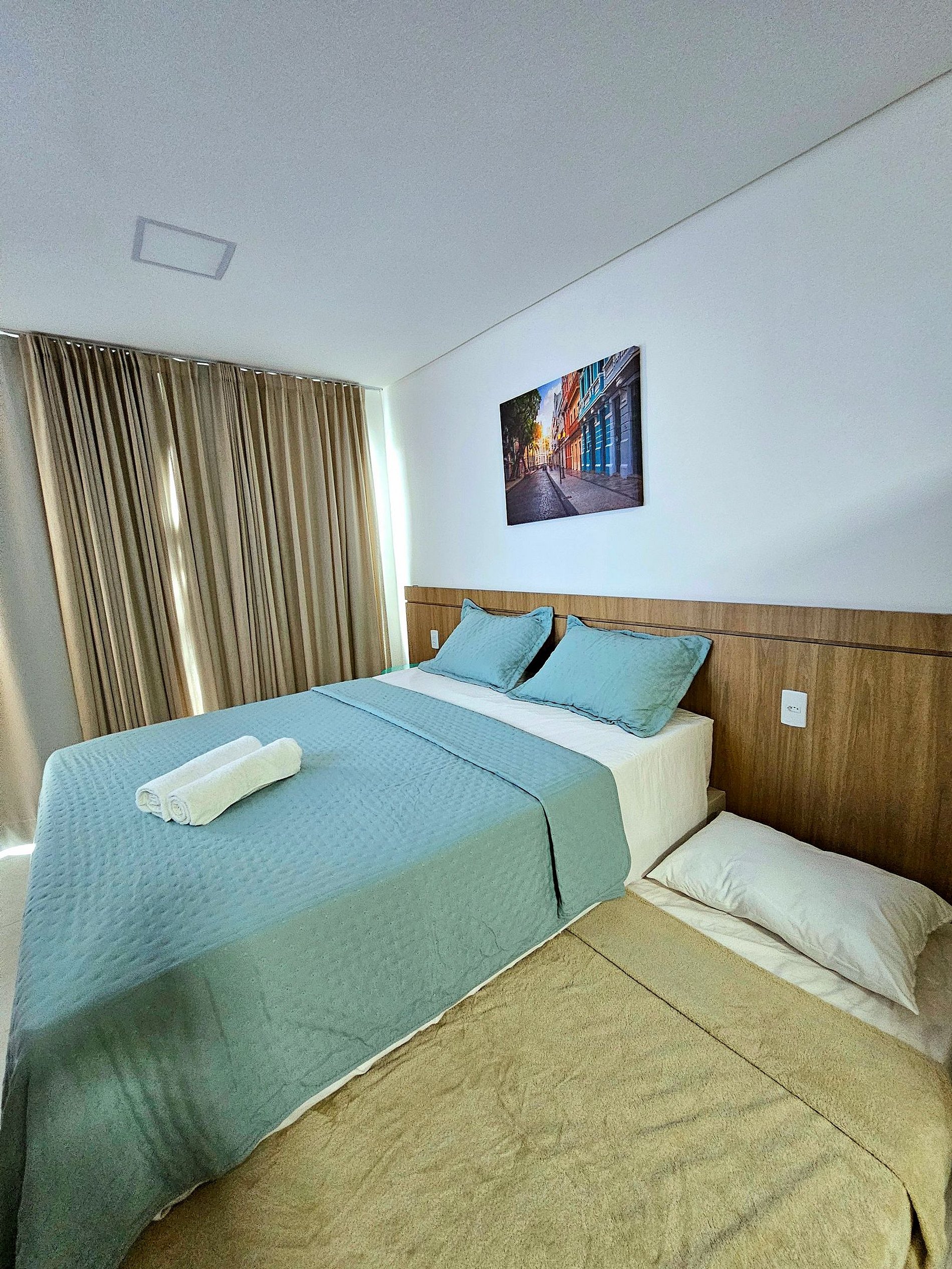 Nossa unidade possui 1 cama de casal e 1 Auxiliar de solteiro, a cozinha possui os principais eletrodomésticos (cooktop 2 bocas, airfryer, microondas, sanduicheira, liquidificador, frigobar, conjunto de panelas, travessas, etc...), possuímos na nossa unidade uma área externa com a exclusiva piscina privativa que é perfeita para um fim de tarde!