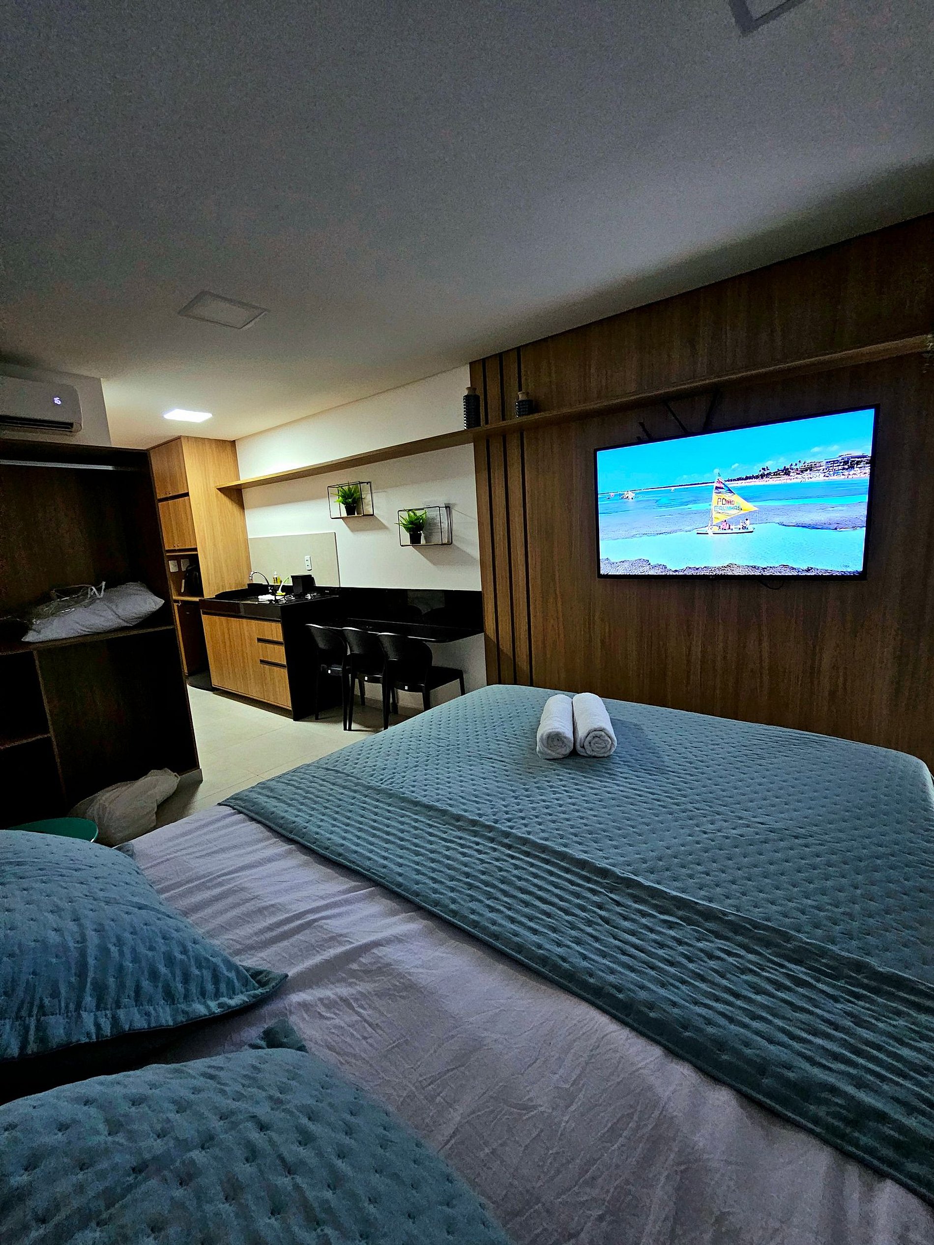 Lindo Flat Studio com Piscina privativa finamente decorado no centro de Porto de Galinhas. Cozinha completa e equipada, acomoda bem 3 pessoas, possui ar-condicionado, projeto de mobilias e decoração diferenciados para proporcionar o máximo de conforto. Ideal para aproveitar Porto sem depender de carro!