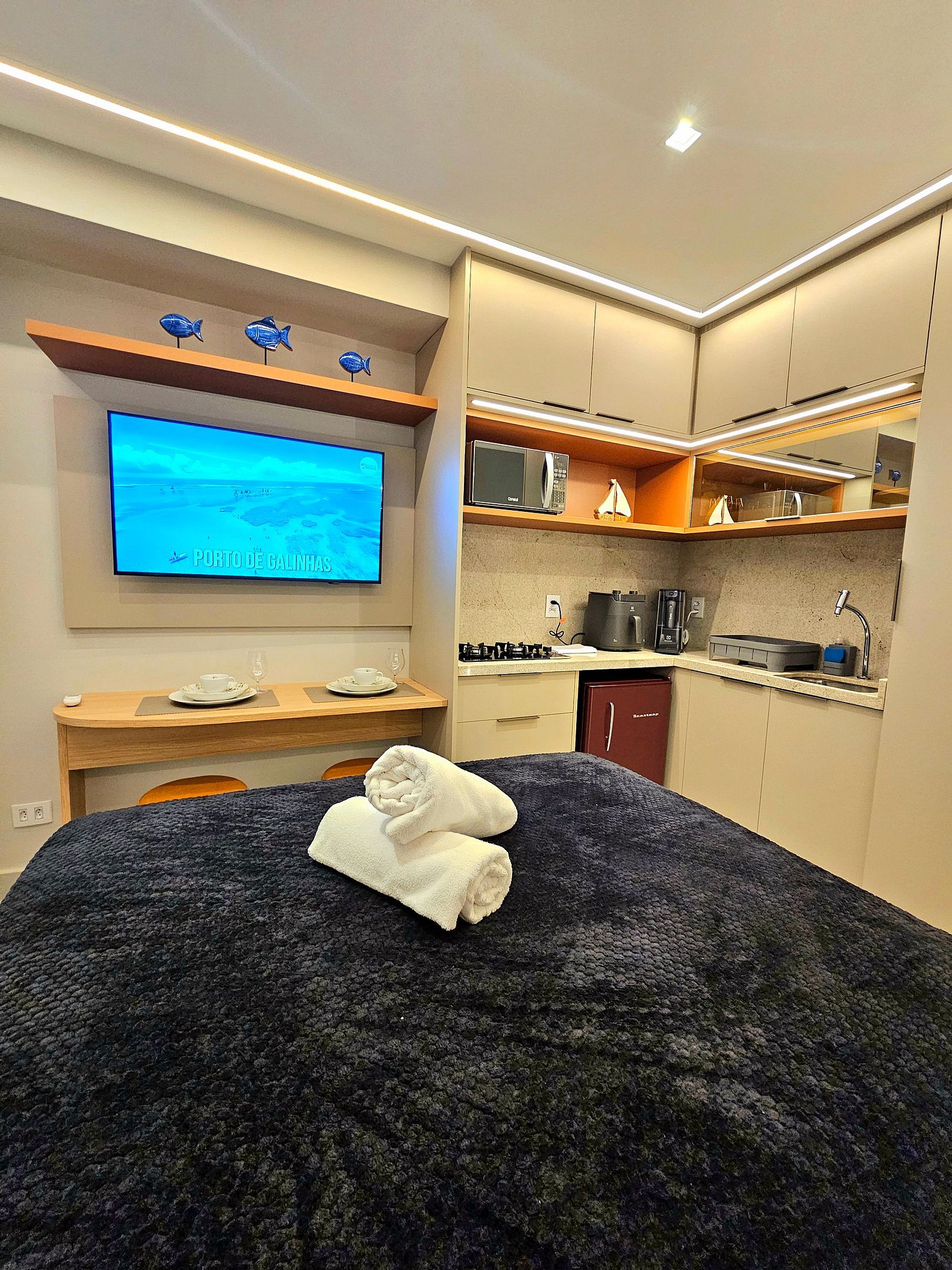Este charmoso apartamento studio é a escolha ideal para quem busca uma estadia confortável e elegante. Perfeitamente situado a poucos passos do mar, o apartamento oferece tudo o que você precisa para relaxar e desfrutar de Porto de Galinhas com estilo.