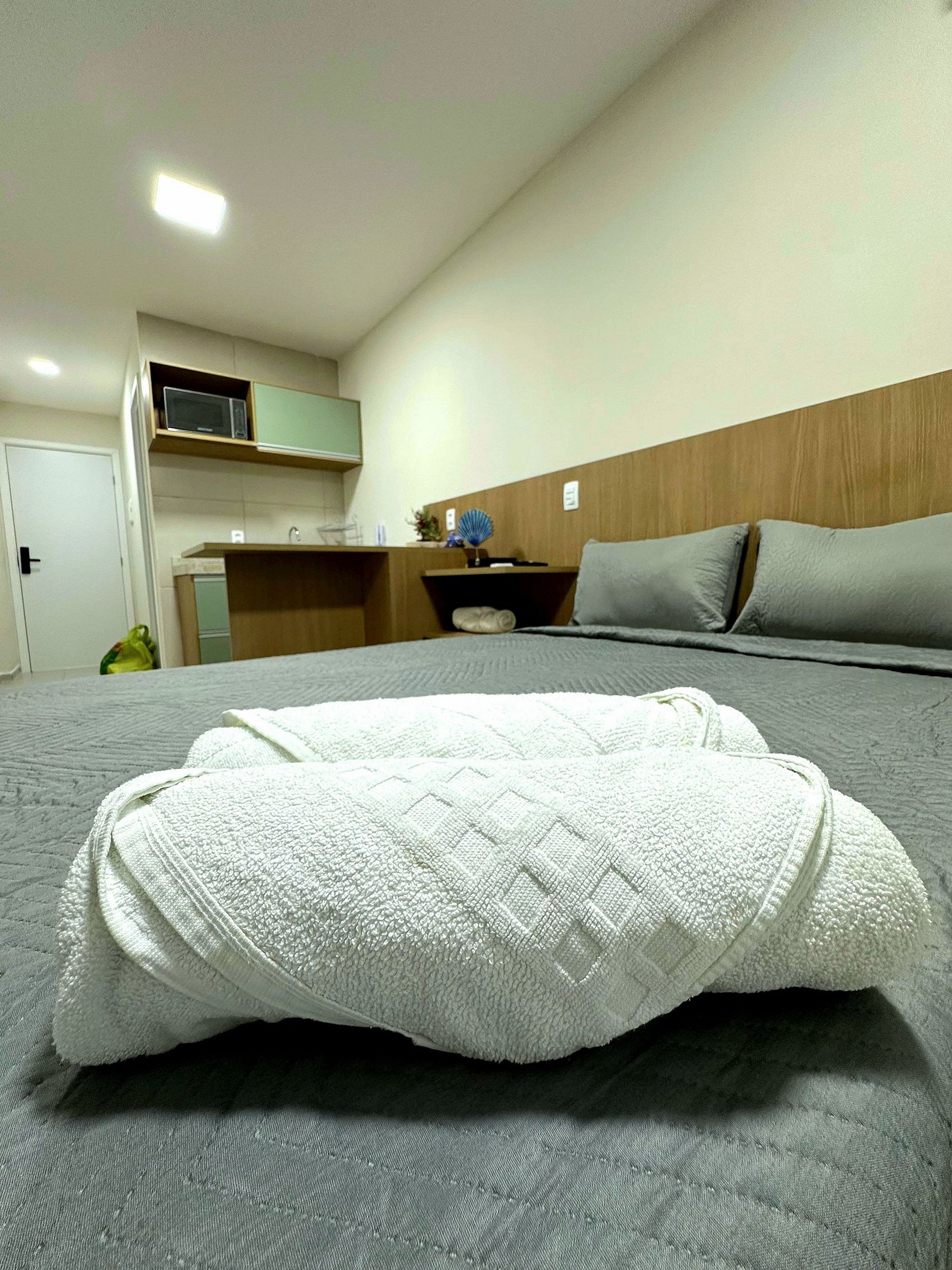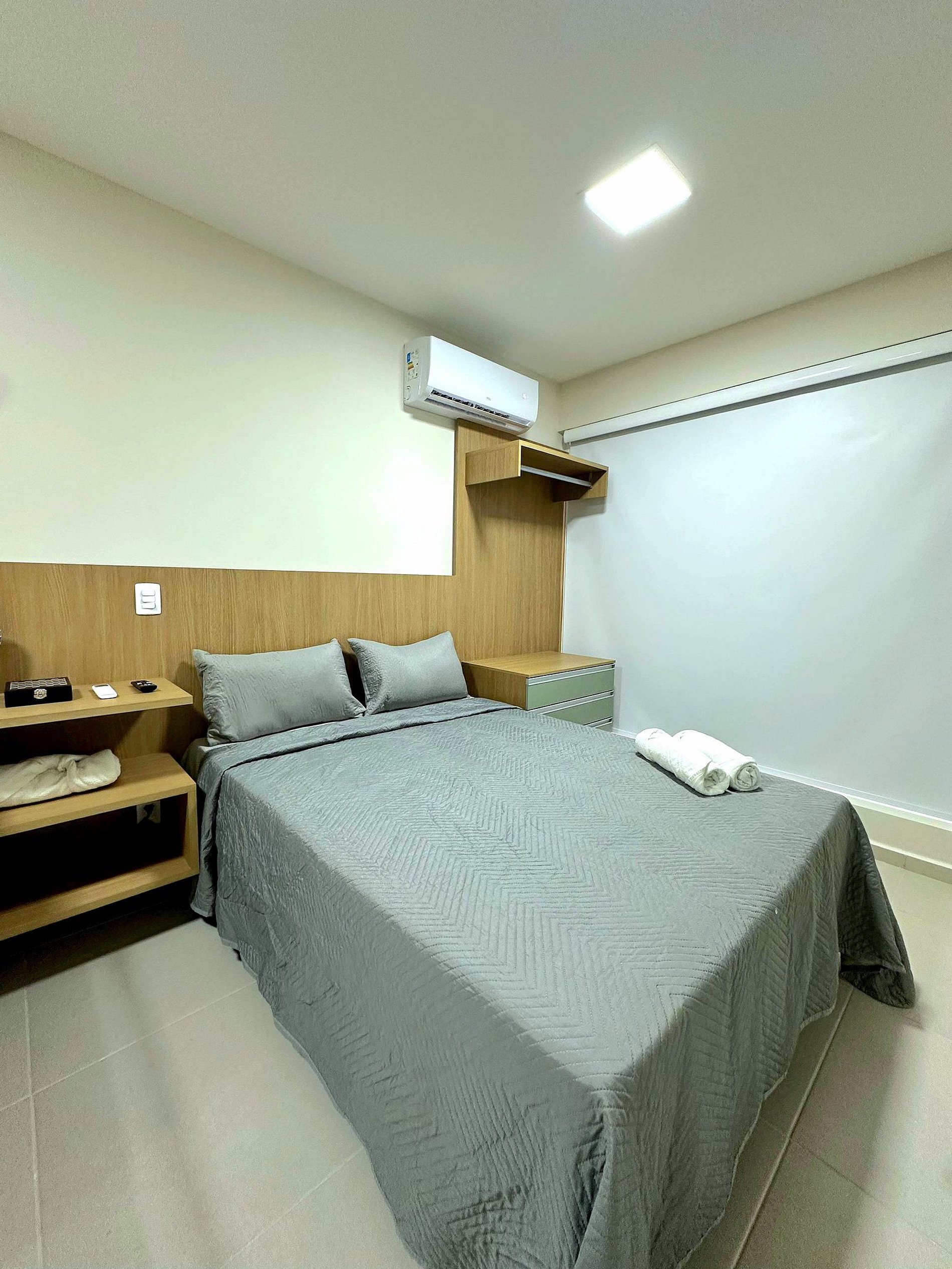 Nosso flat conta com apartamentos bem equipados, projetados para proporcionar a você o máximo de conforto. Cada unidade possui ar-condicionado, Wi-Fi gratuito, TV de tela plana e uma cozinha compacta, facilitando sua estadia. Descanse em camas confortáveis e aproveite os detalhes que tornam seu refúgio ainda mais especial.