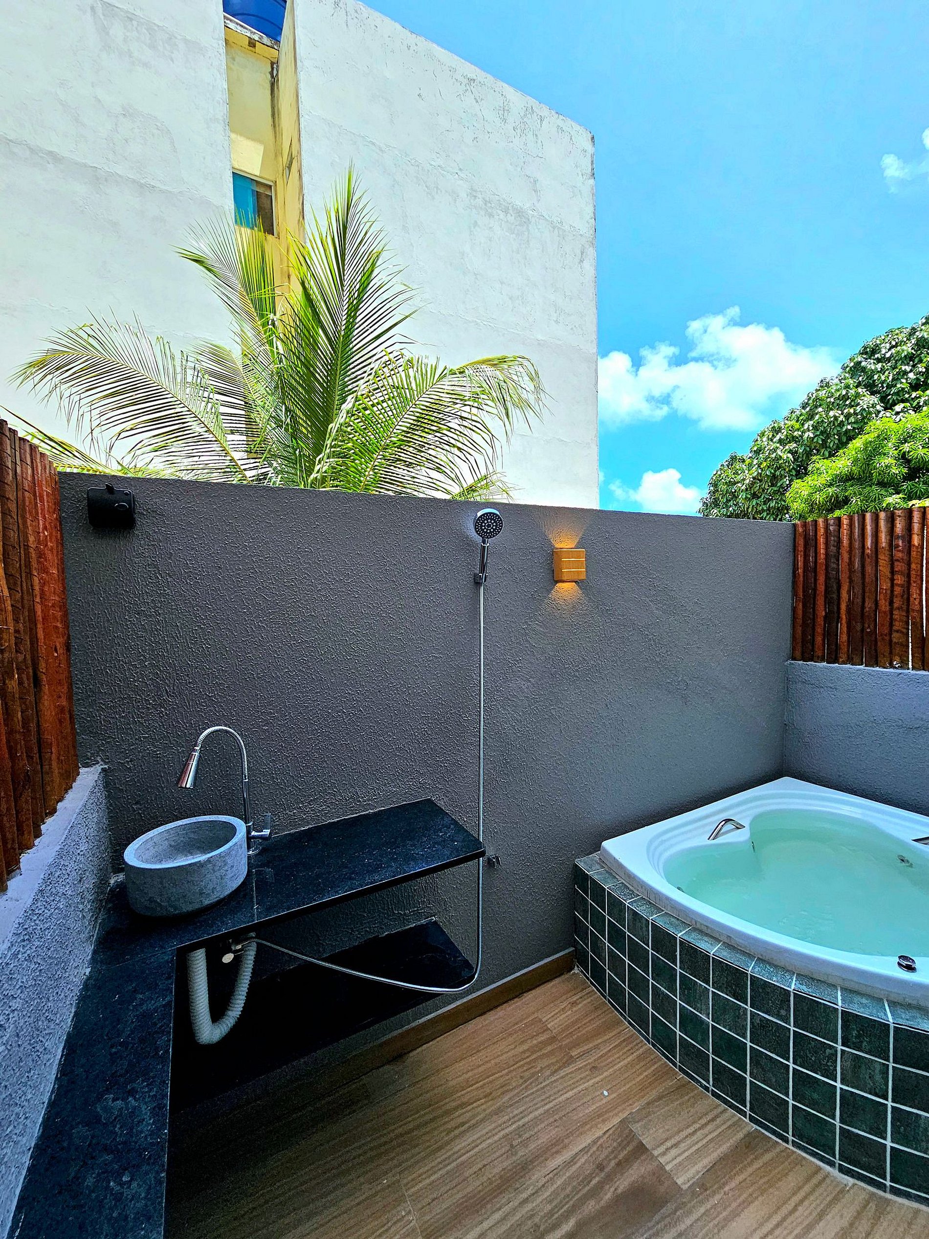 Incrível Studio com Hidromassagem privativa, bancada Gourmet e chuveirão externo, localizado no centro de Porto de Galinhas, no Edifício Porto City (350m - 5 minutos de caminhada para a principal rua do centrinho de Porto, onde encontrará os principais restaurantes, comércios, feira de artesanato) e às piscinas naturais (8/10 minutos a pé), você estará na melhor localização de Porto de Galinhas para aproveitar ao máximo este paraíso. O apartamento é novo e completo com tudo que você precisa para uma estadia muito confortável e prazerosa. Acomoda bem até 5 pessoas com uma cama de casal macia, uma cama auxiliar e sofá cama extremamente confortável que garante mais conforto nas noites.