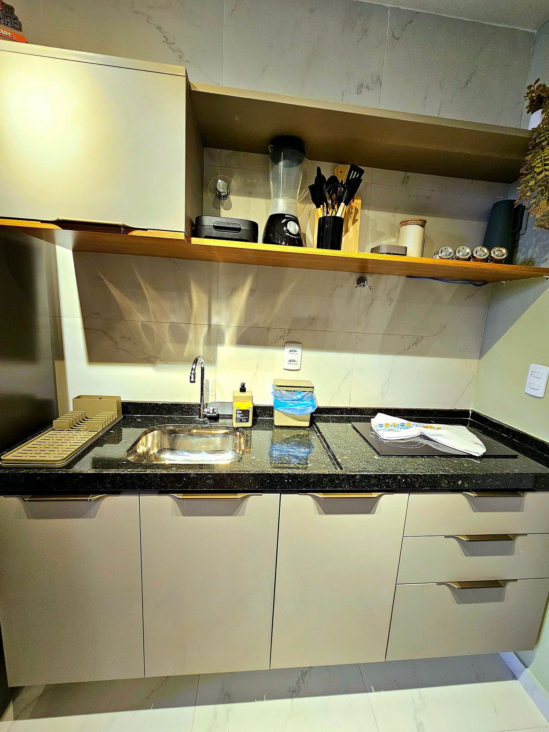3. Cozinha totalmente equipada com Airfryer, cafeteira, sanduicheira e liquidificador;