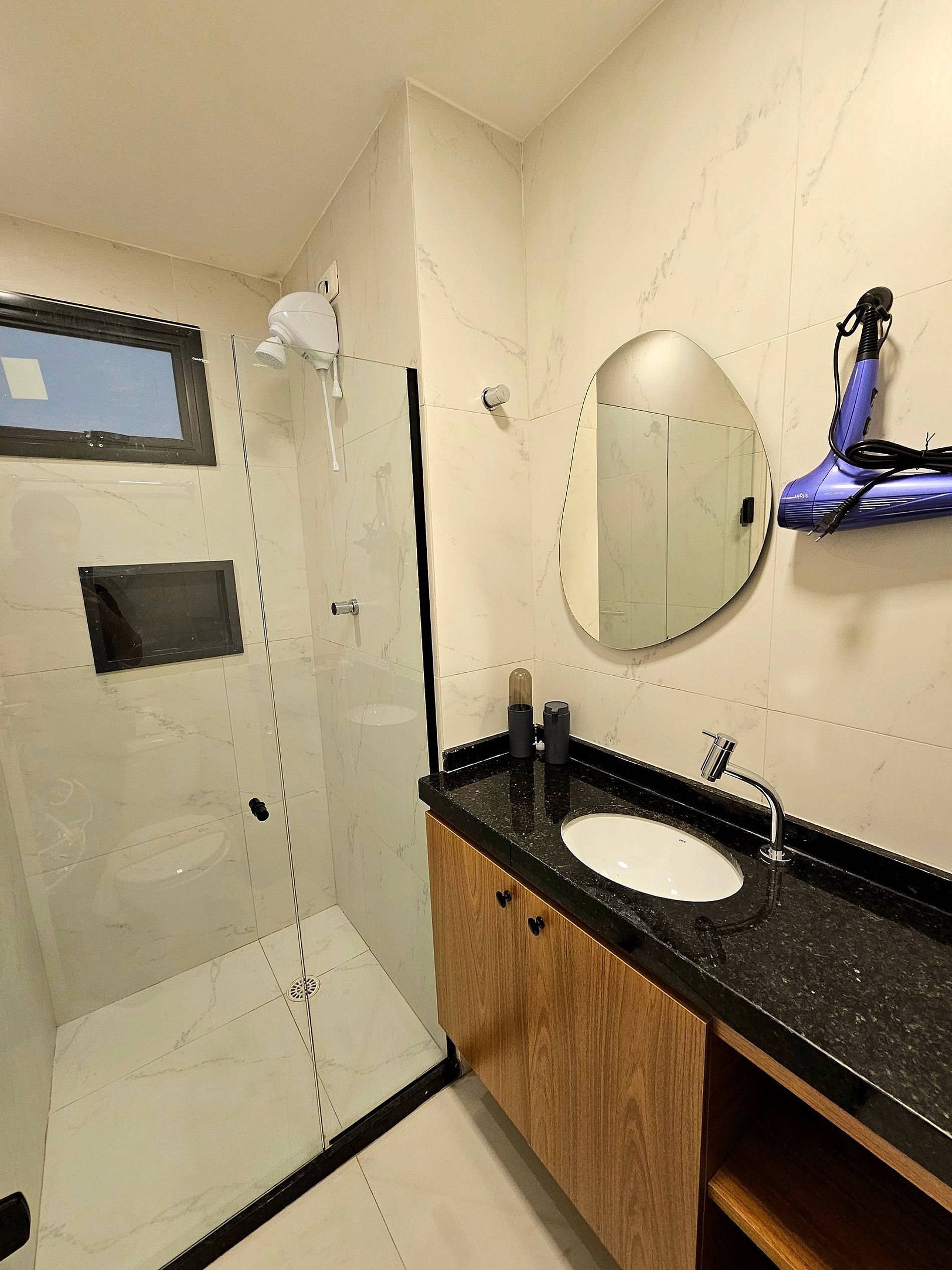 1. Banheiro com chuveiro elétrico, secador de cabelo e ferro de passar;
