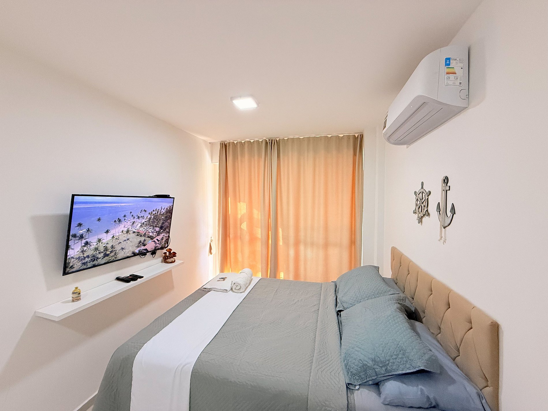 Nosso apartamento acomoda bem até 4 pessoas, conta com 1 cama de casal extremamente confortável e 1 sofá cama de casal, , uma cozinha compacta e equipada (liquidificador, cafeteira, micro-ondas, cooktop 1 boca, sanduicheira, frigobar, airfryer) com todos os itens que você precisa para realizar qualquer refeição. Desfrute de uma varanda privativa onde você pode apreciar a brisa do mar e o pôr do sol deslumbrante.