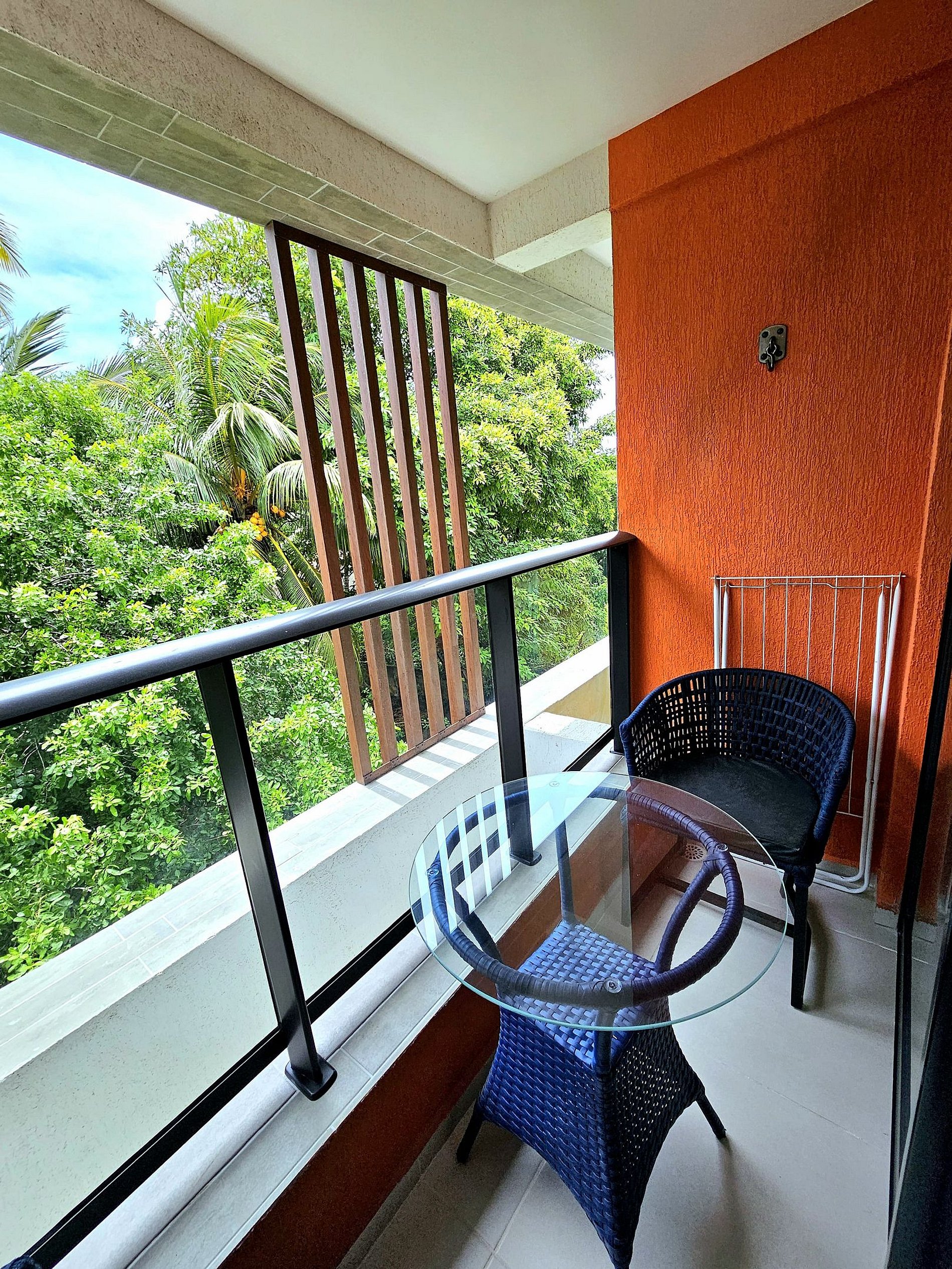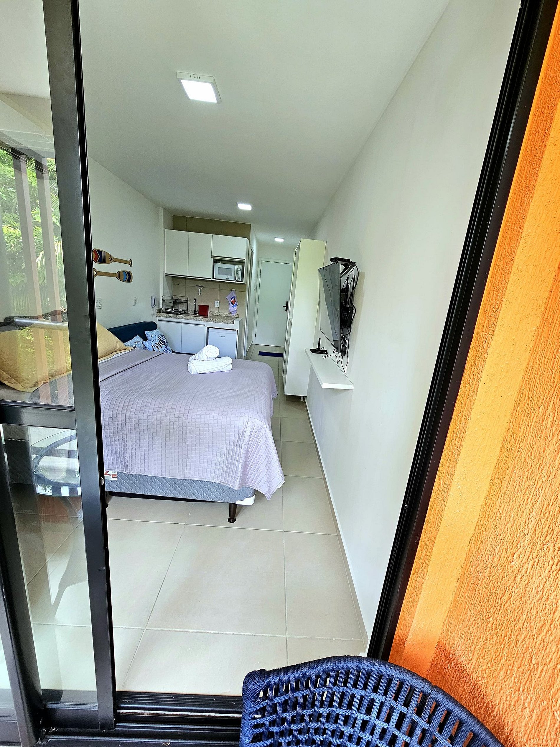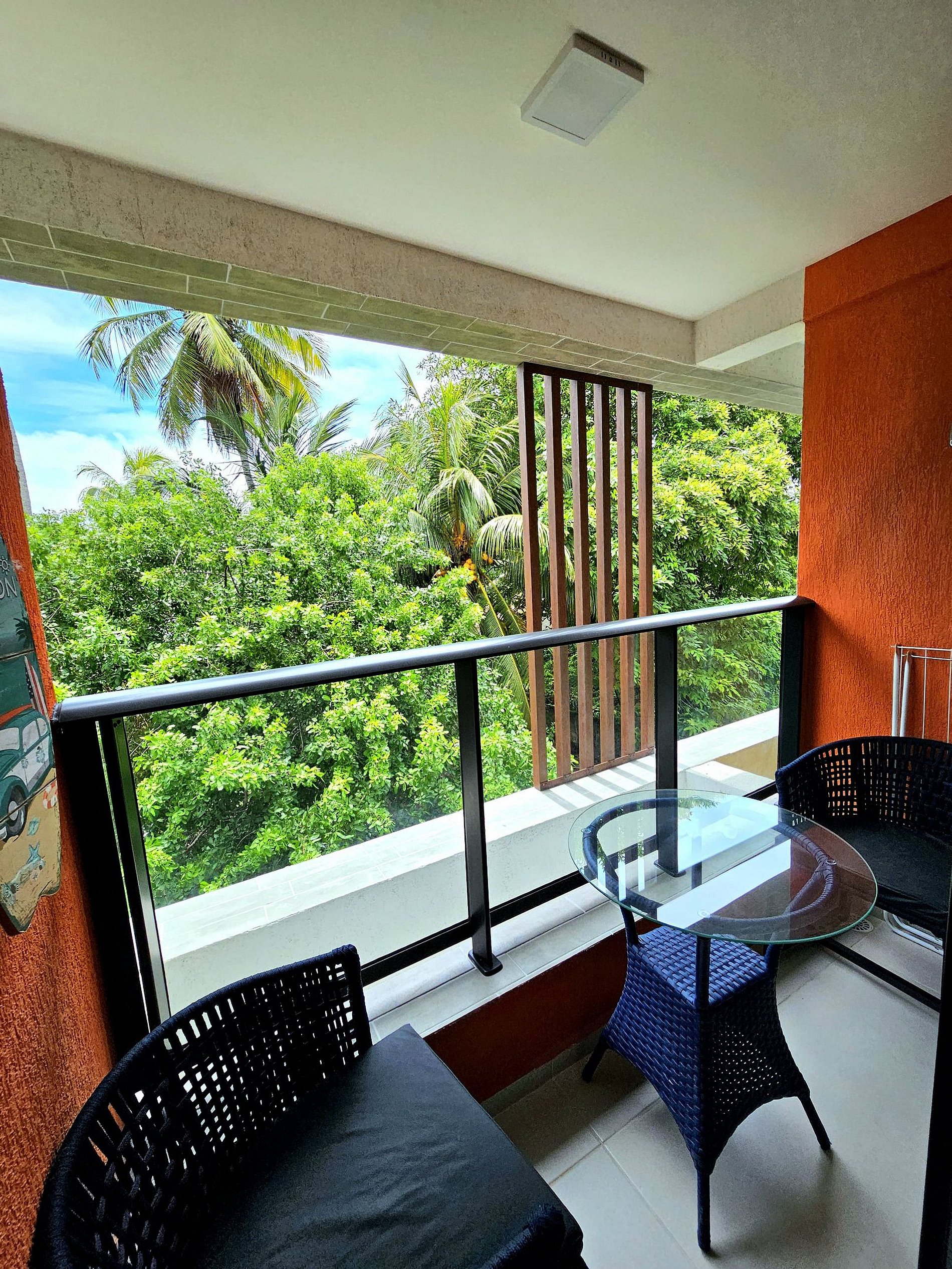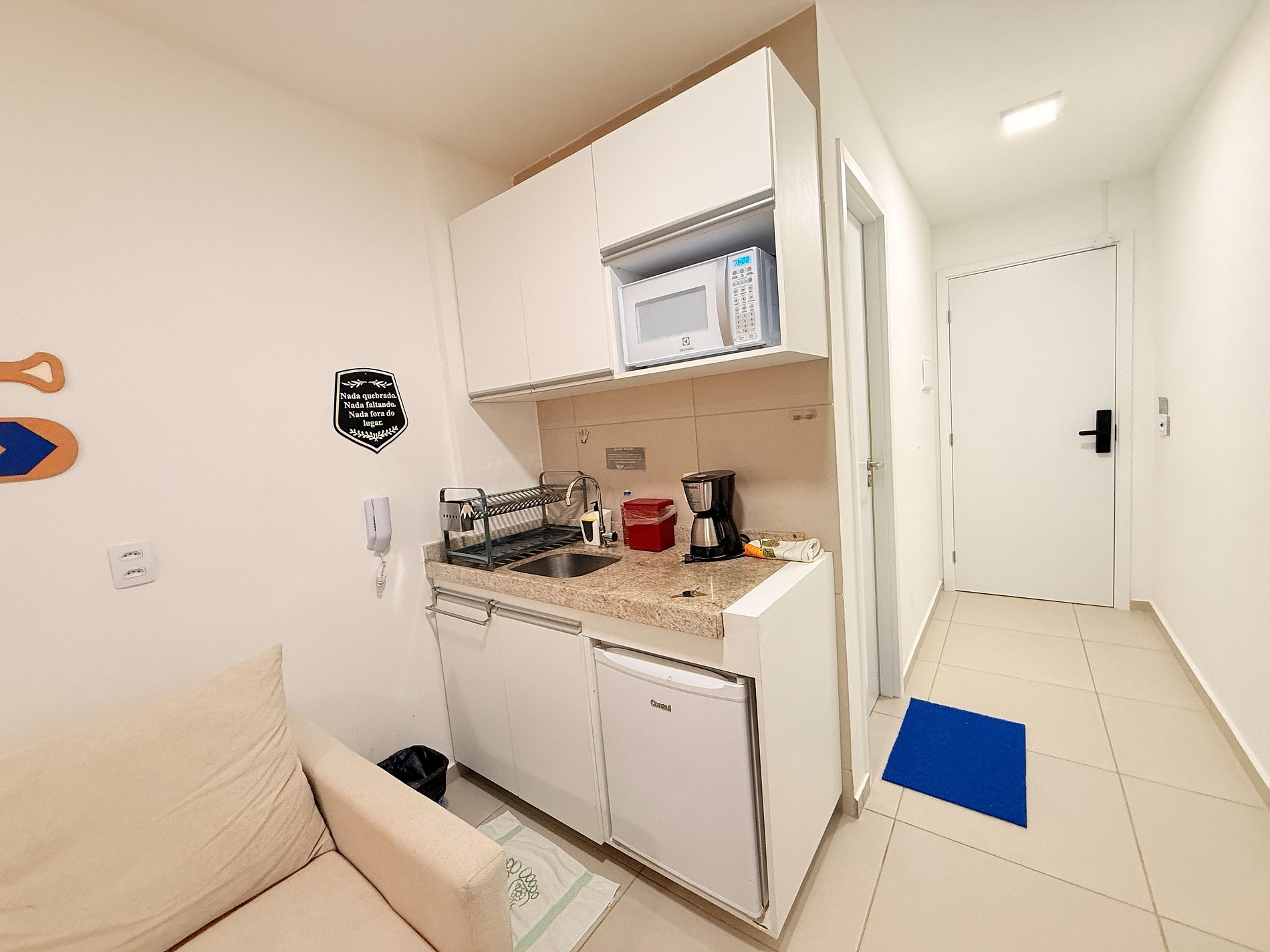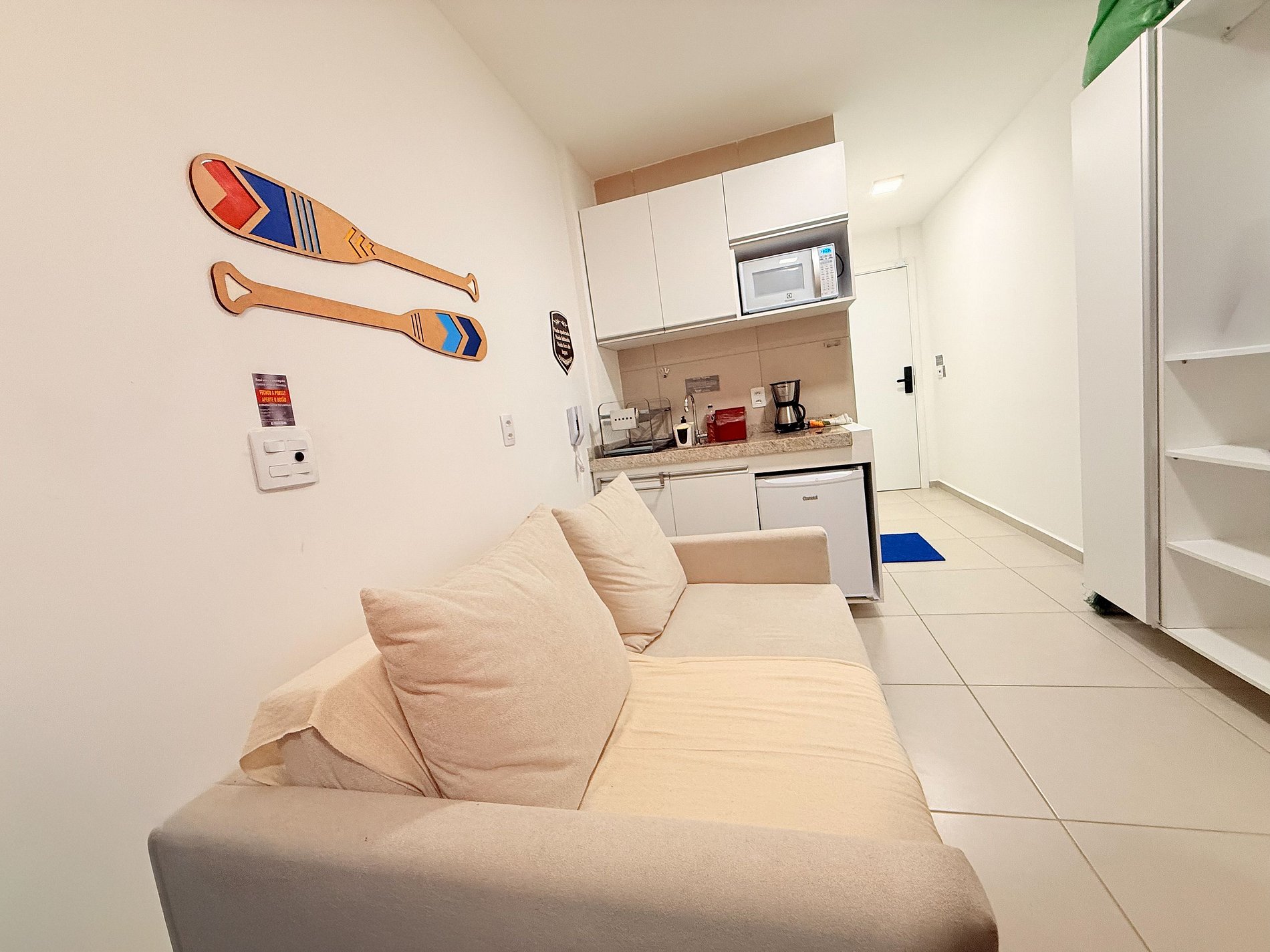 Nosso apartamento acomoda bem até 4 pessoas, conta com 1 cama de casal extremamente confortável e 1 sofá cama de casal, , uma cozinha compacta e equipada (liquidificador, cafeteira, micro-ondas, cooktop 1 boca, sanduicheira, frigobar, airfryer) com todos os itens que você precisa para realizar qualquer refeição. Desfrute de uma varanda privativa onde você pode apreciar a brisa do mar e o pôr do sol deslumbrante.