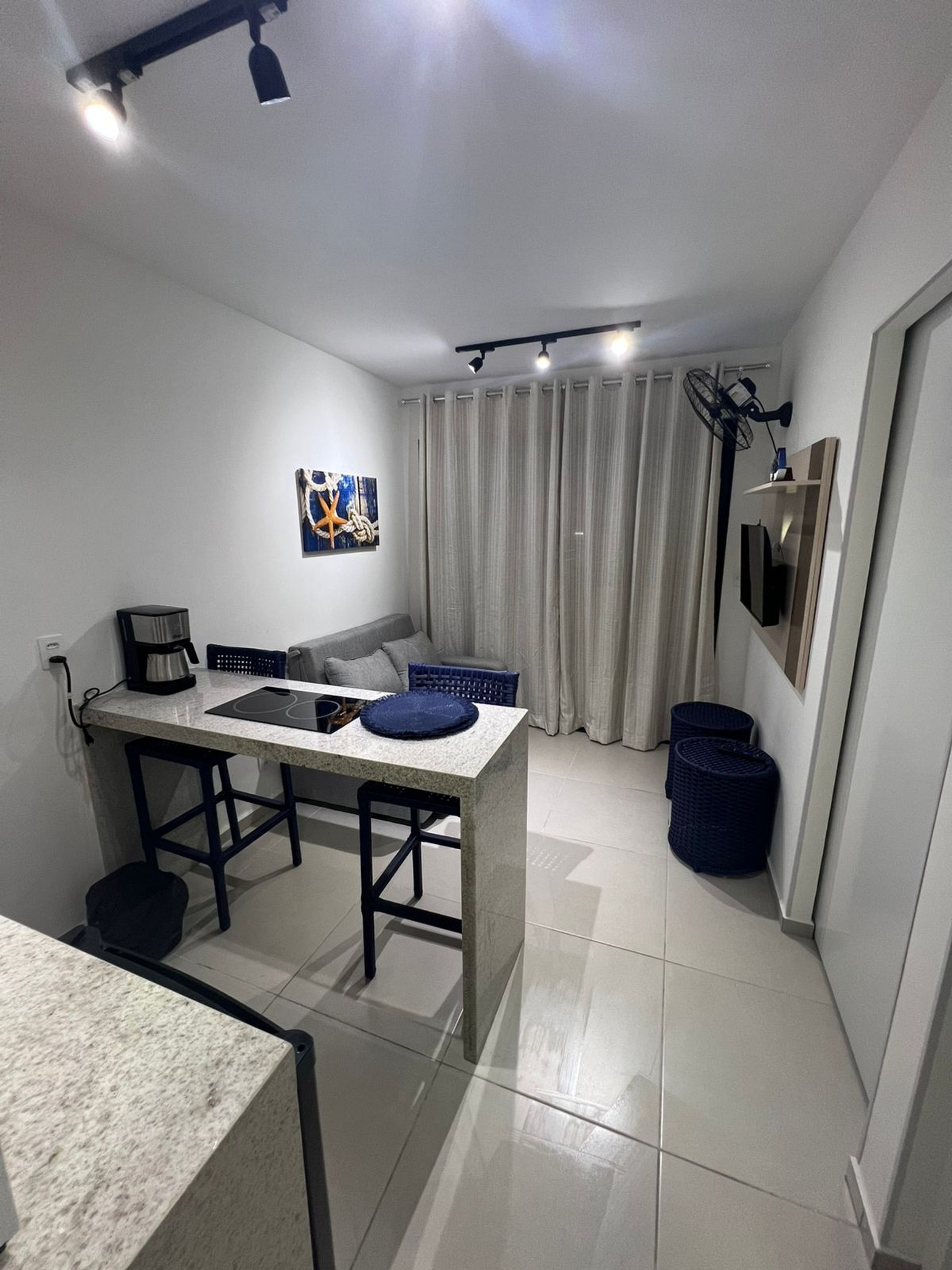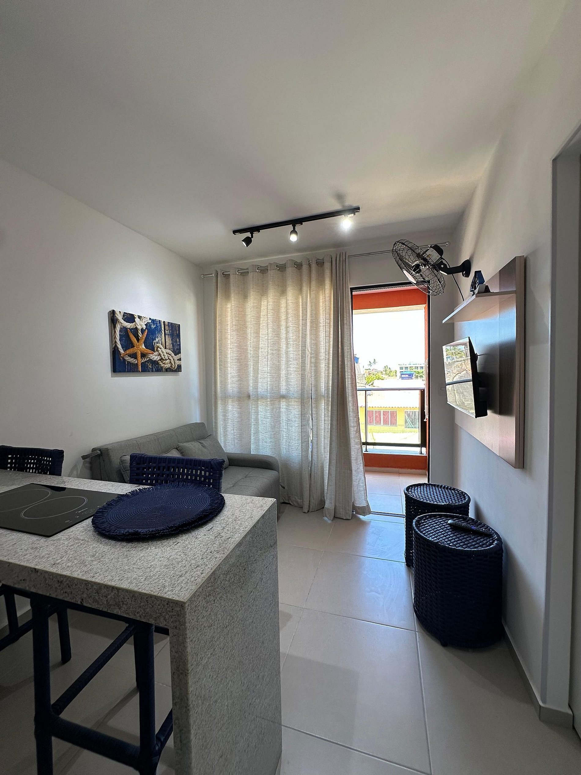 Este charmoso apartamento acomoda bem até 5 hóspedes e oferece todas as comodidades para uma estadia prazerosa e muito confortável. Com 1 quarto separado da sala onde contém 1 cama de casal extremamente macia e e uma 1 cama de solteiro, sala com sofá cama e uma cozinha totalmente equipada onde permite que você prepare suas principais refeições. Não se esqueça de aproveitar a varanda, ideal para descansar após um dia de praia, a decoração é uma mistura de estilo moderno e elementos rústicos, proporcionando um ambiente acolhedor e convidativo.