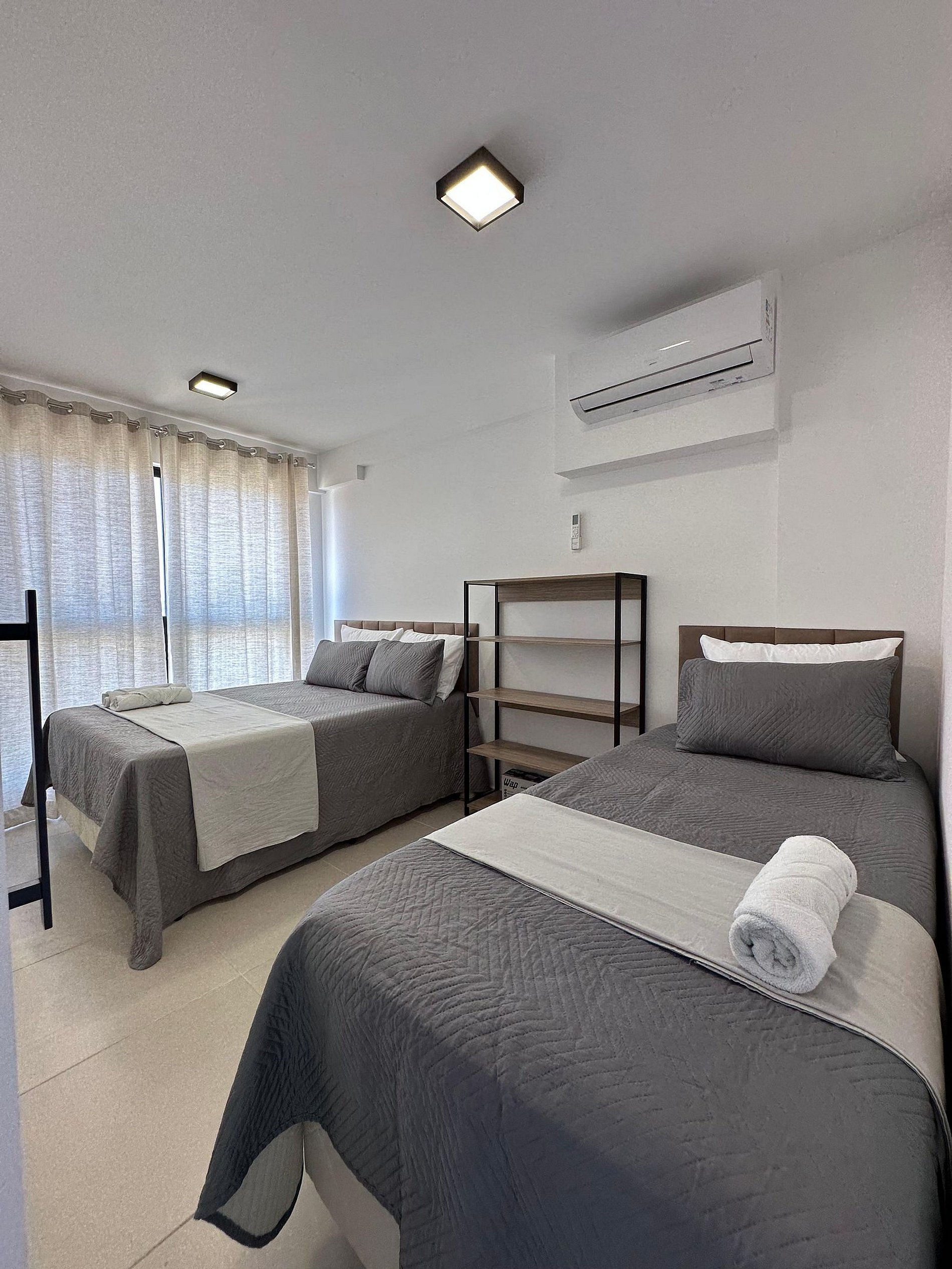 Nosso flat conta com apartamentos bem equipados, projetados para proporcionar a você o máximo de conforto. Cada unidade possui ar-condicionado, Wi-Fi gratuito, TV de tela plana e uma cozinha compacta, facilitando sua estadia. Descanse em camas confortáveis e aproveite os detalhes que tornam seu refúgio ainda mais especial.