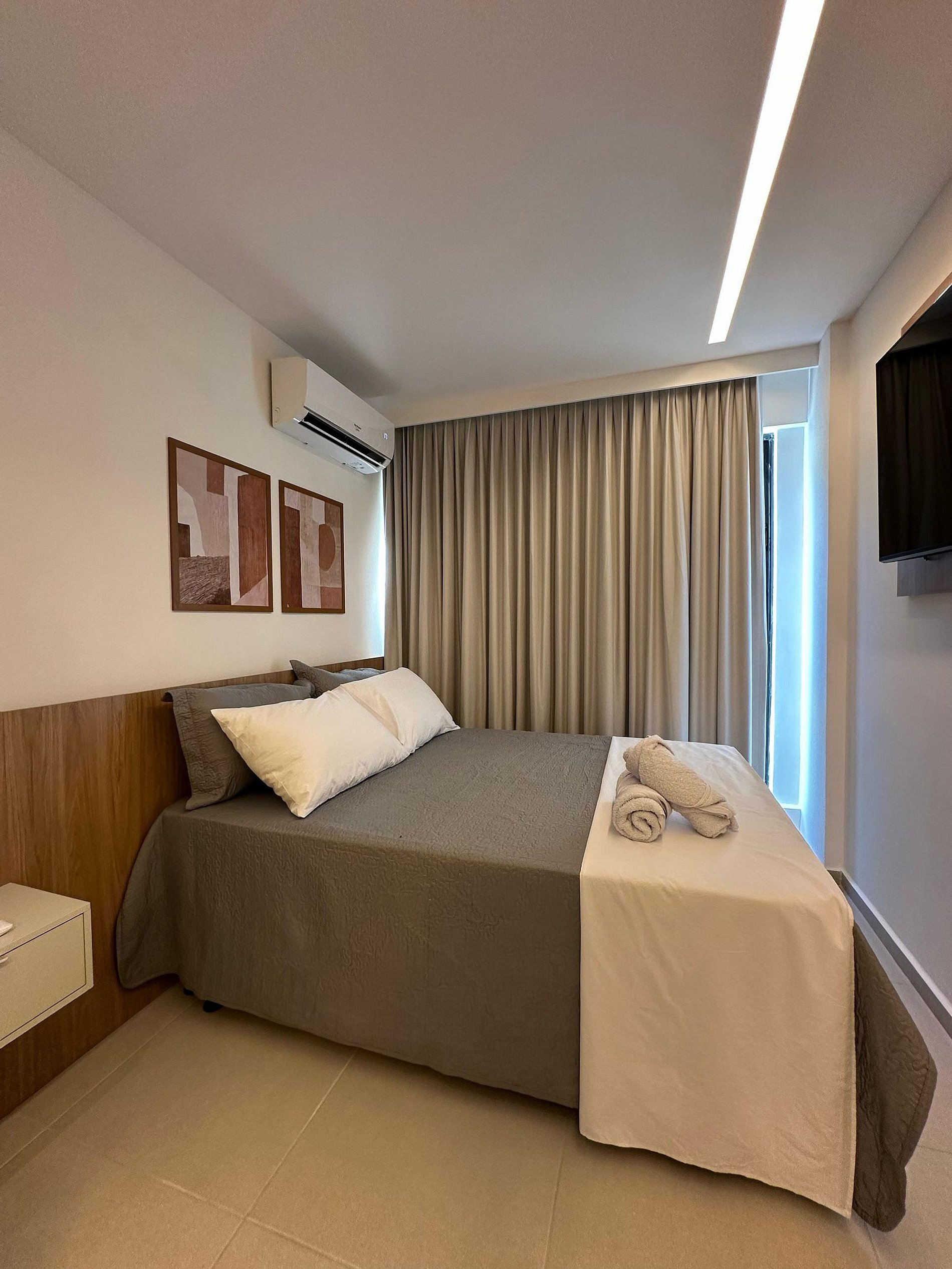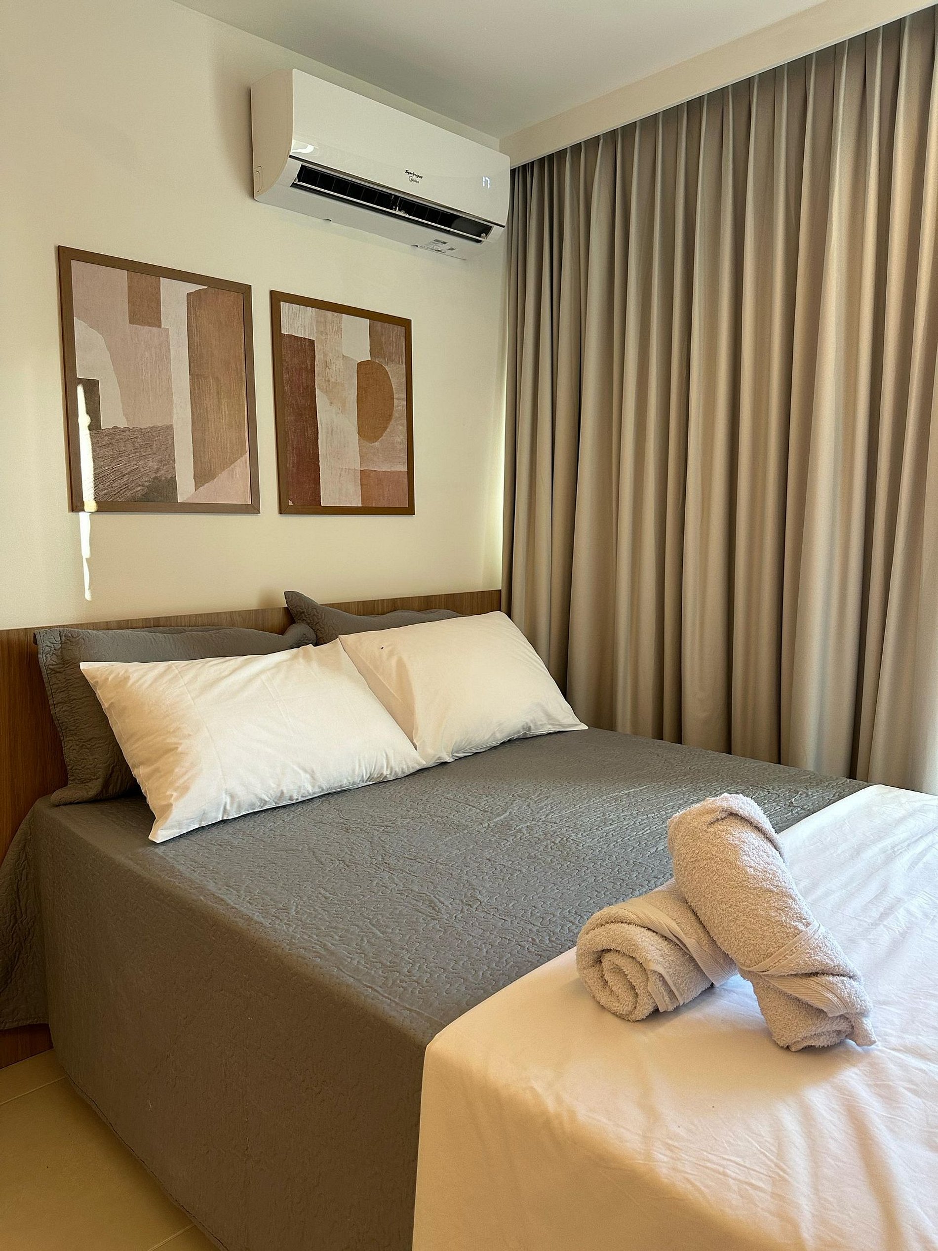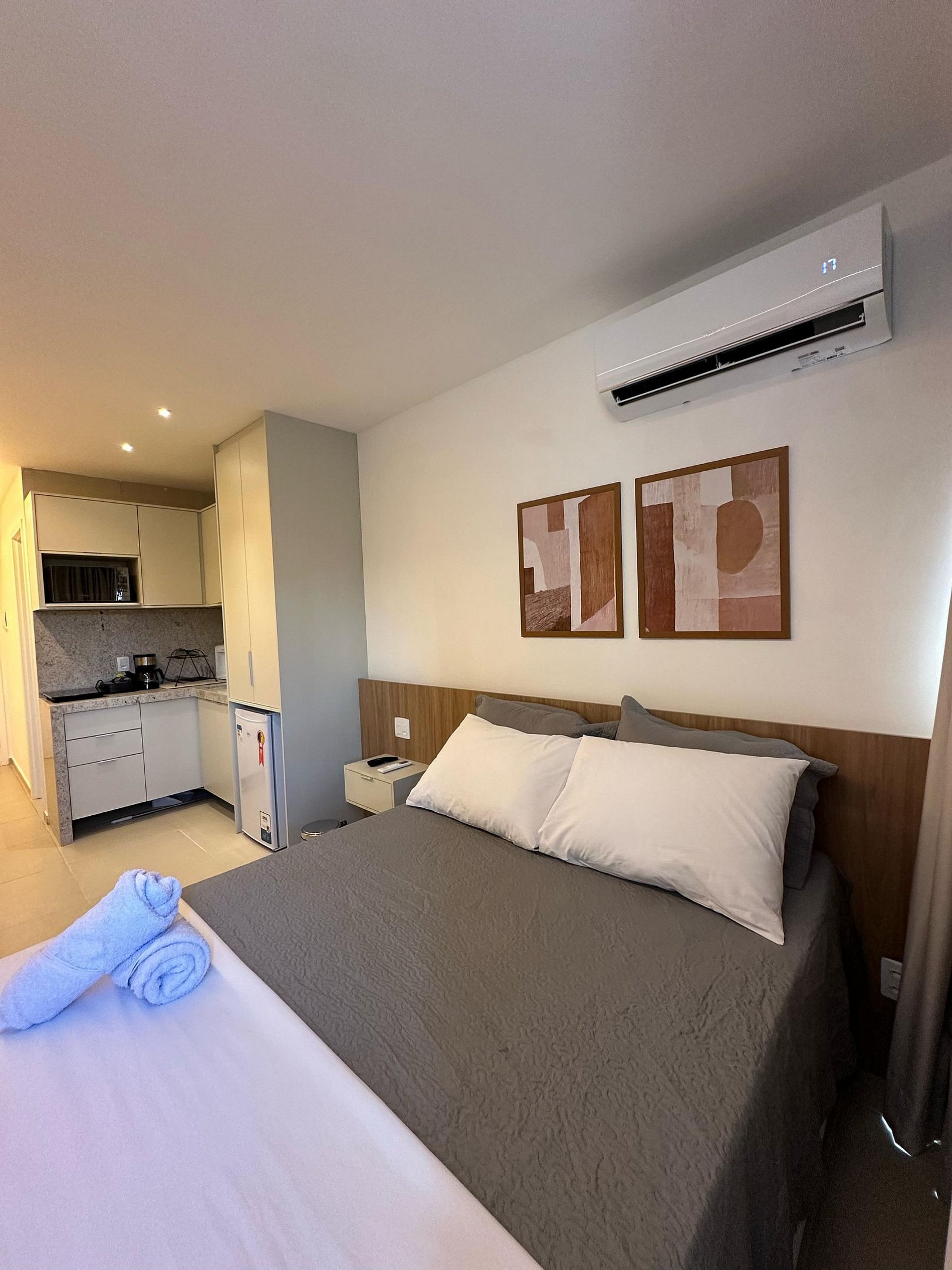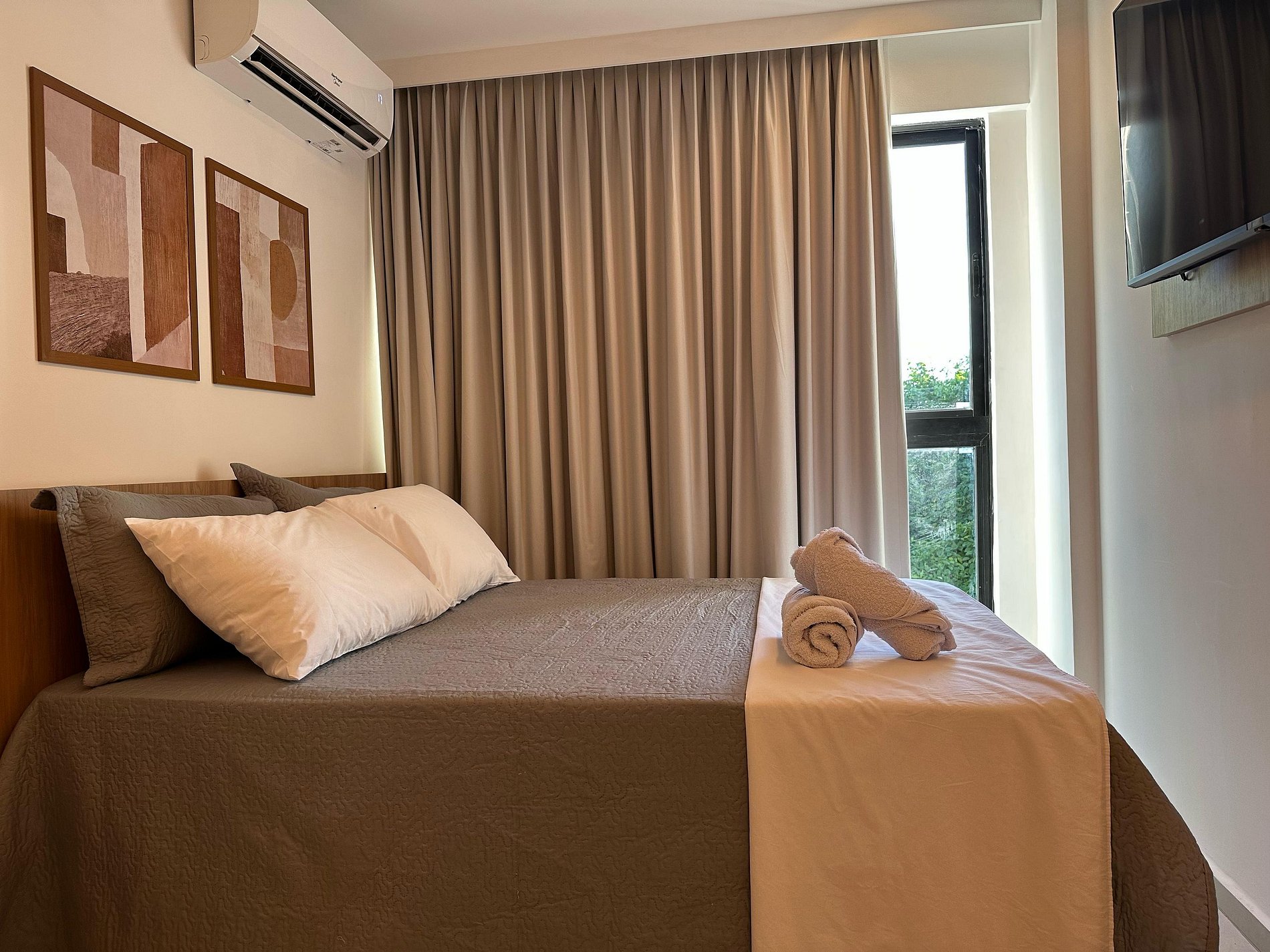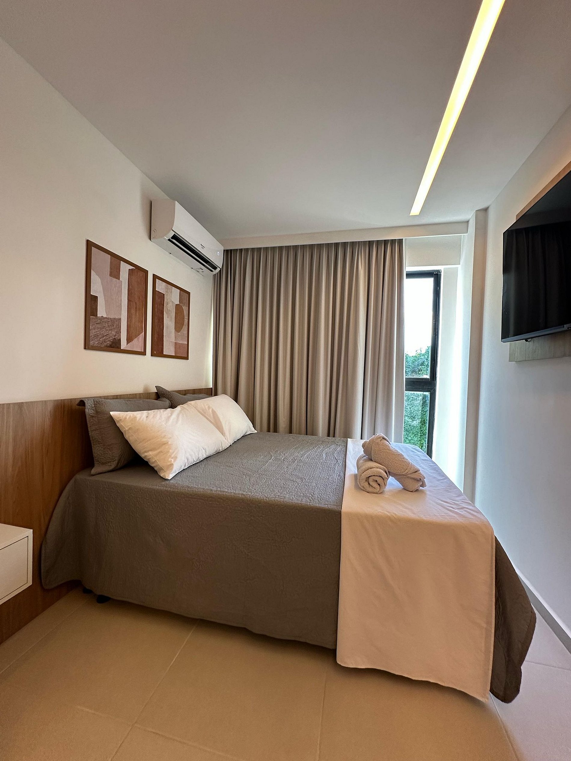 Nosso flat conta com apartamentos bem equipados, projetados para proporcionar a você o máximo de conforto. Cada unidade possui ar-condicionado, Wi-Fi gratuito, TV de tela plana e uma cozinha compacta, facilitando sua estadia. Descanse em camas confortáveis e aproveite os detalhes que tornam seu refúgio ainda mais especial.
