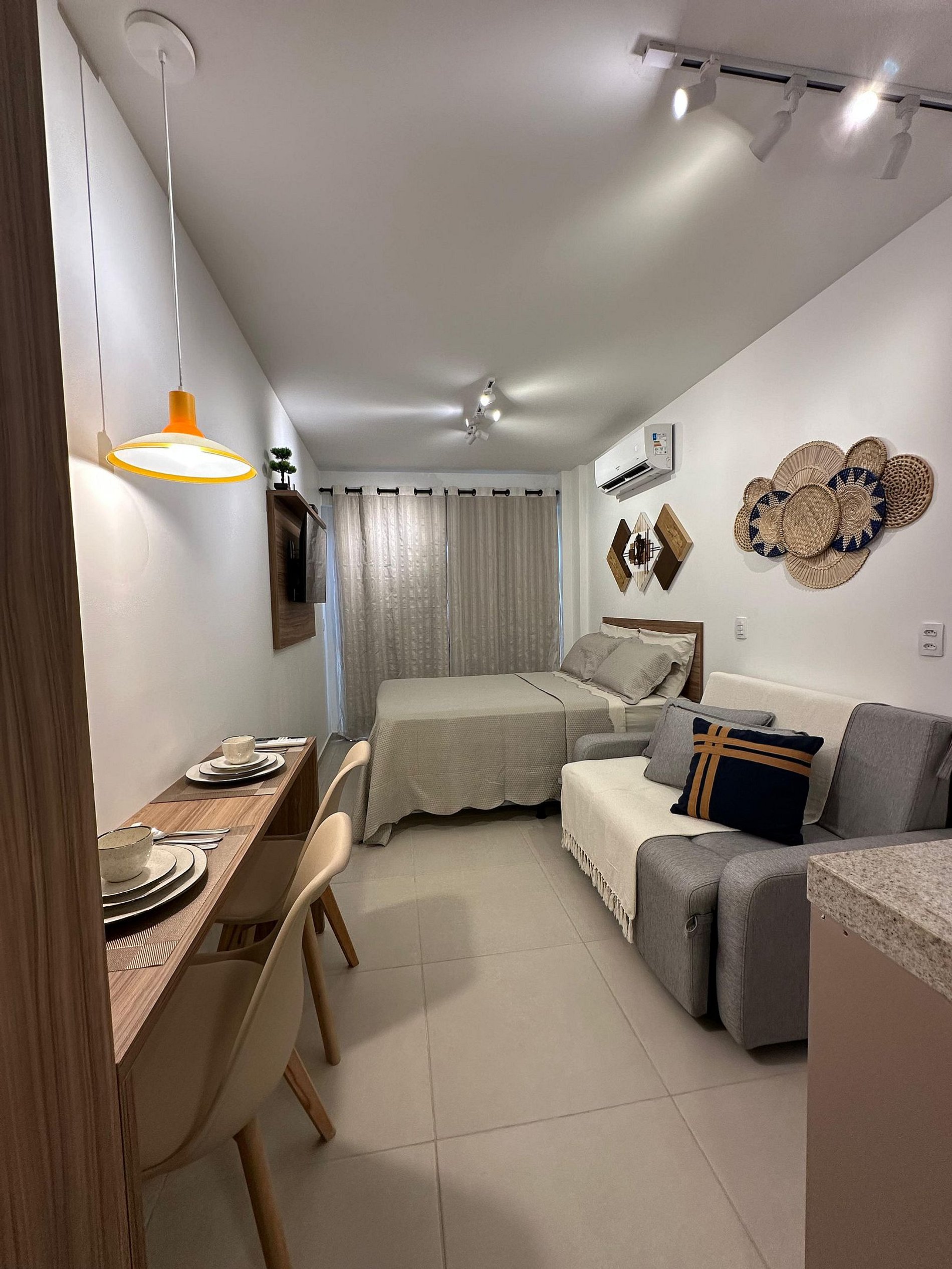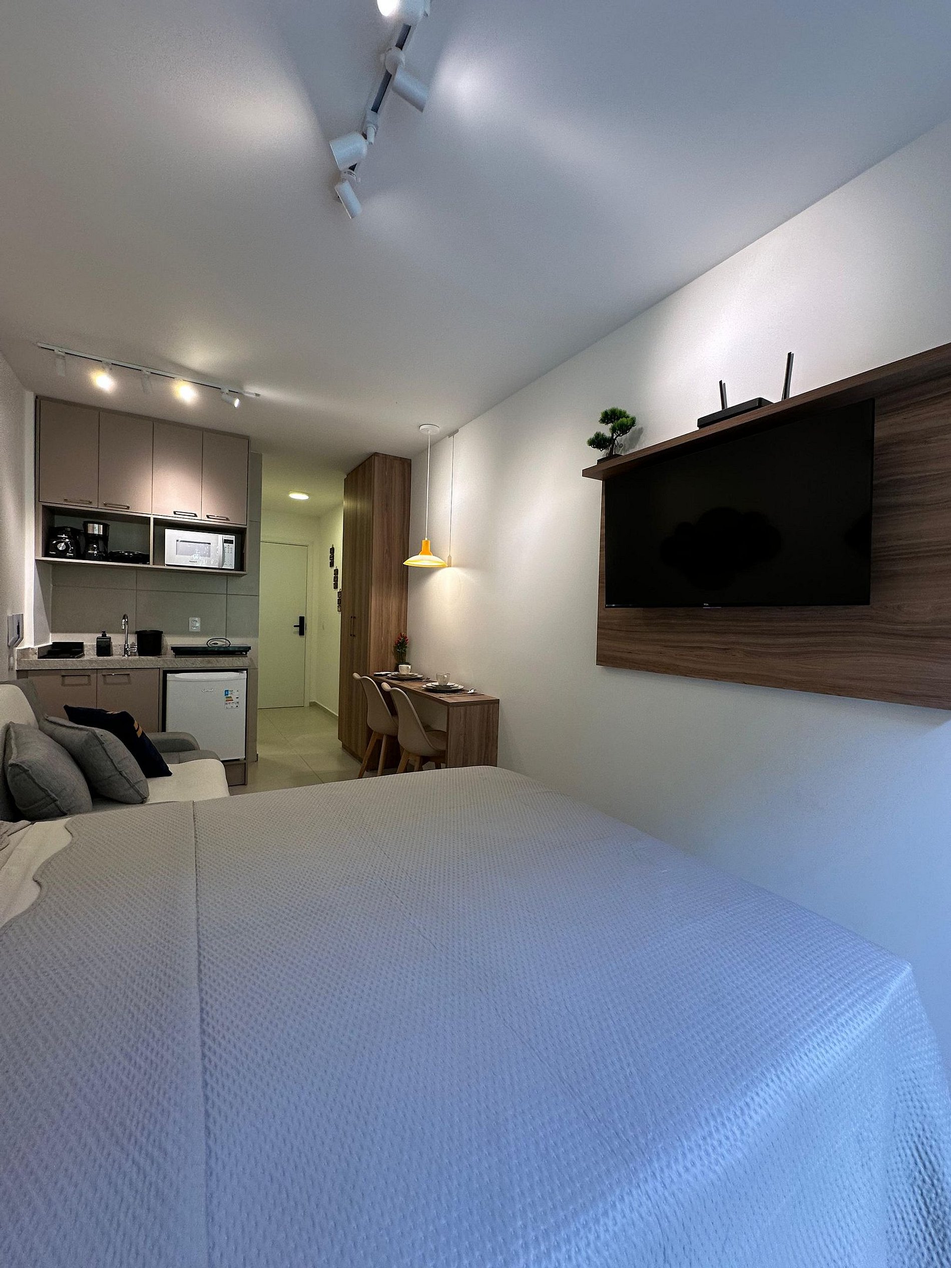 Nosso flat conta com apartamentos bem equipados, projetados para proporcionar a você o máximo de conforto. Cada unidade possui ar-condicionado, Wi-Fi gratuito, TV de tela plana e uma cozinha compacta, facilitando sua estadia. Descanse em camas confortáveis e aproveite os detalhes que tornam seu refúgio ainda mais especial.