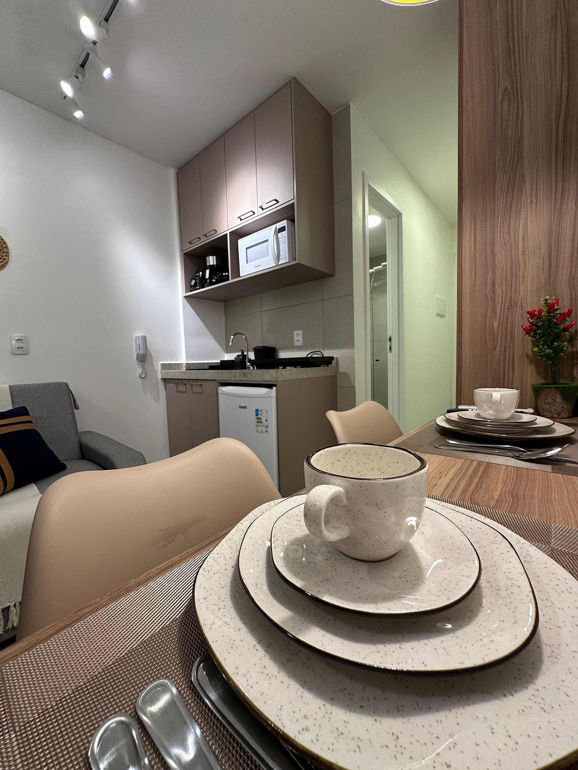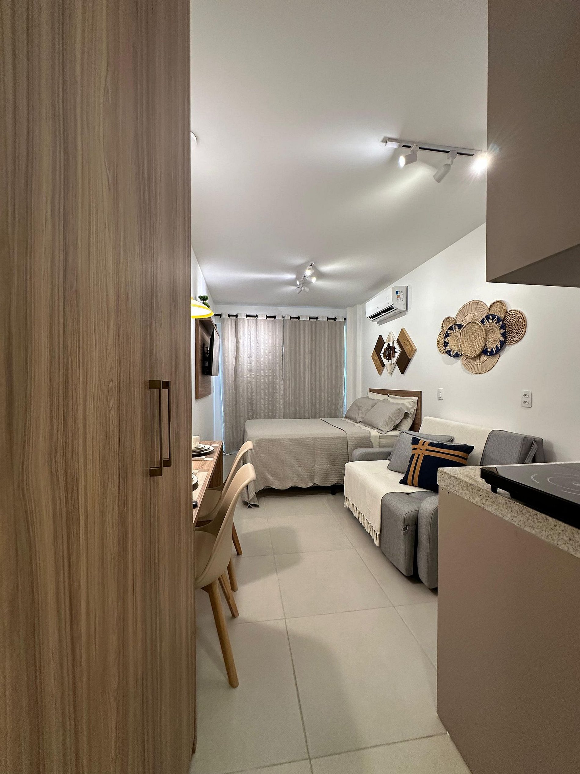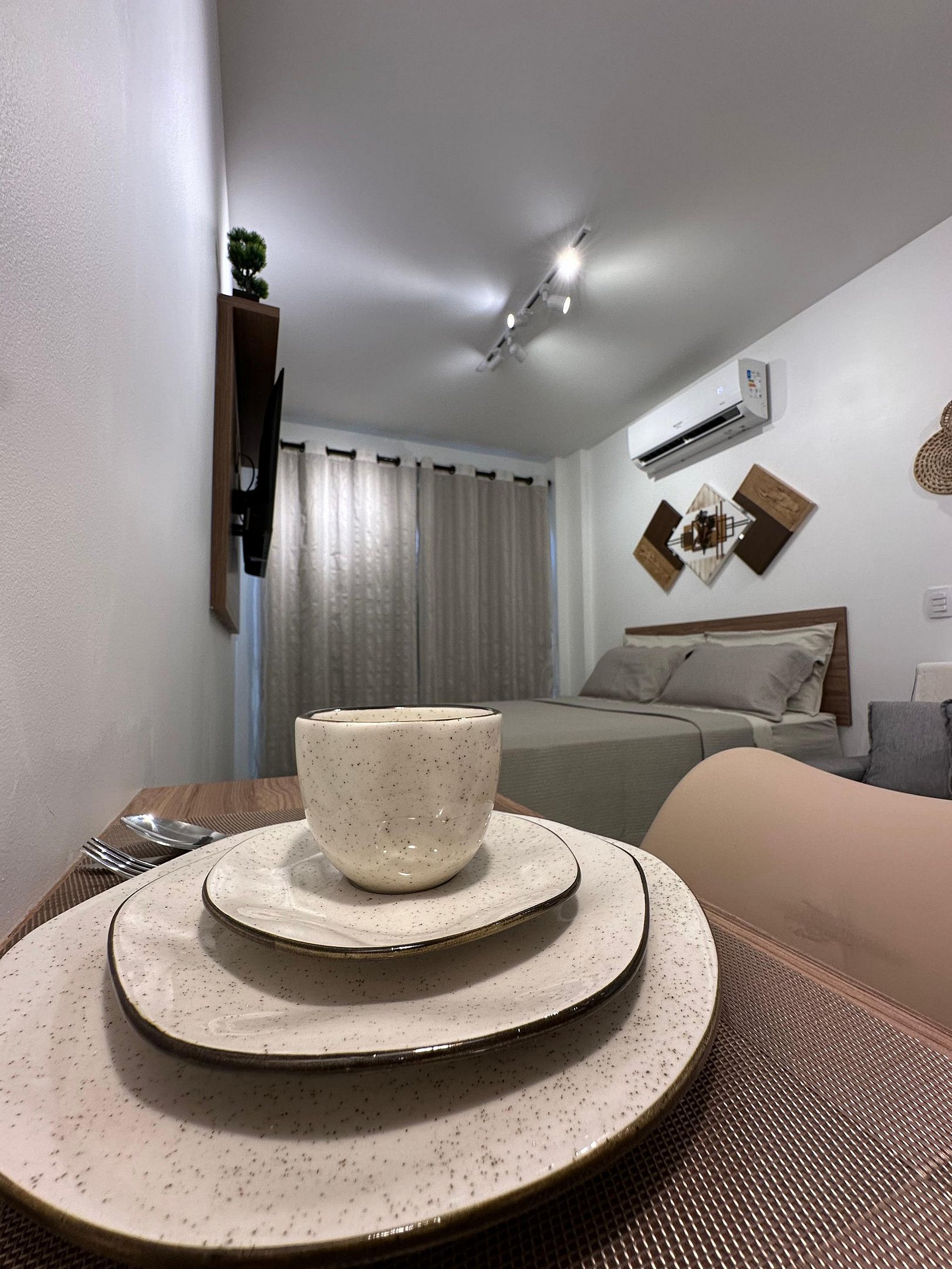 Nosso flat conta com apartamentos bem equipados, projetados para proporcionar a você o máximo de conforto. Cada unidade possui ar-condicionado, Wi-Fi gratuito, TV de tela plana e uma cozinha compacta, facilitando sua estadia. Descanse em camas confortáveis e aproveite os detalhes que tornam seu refúgio ainda mais especial.