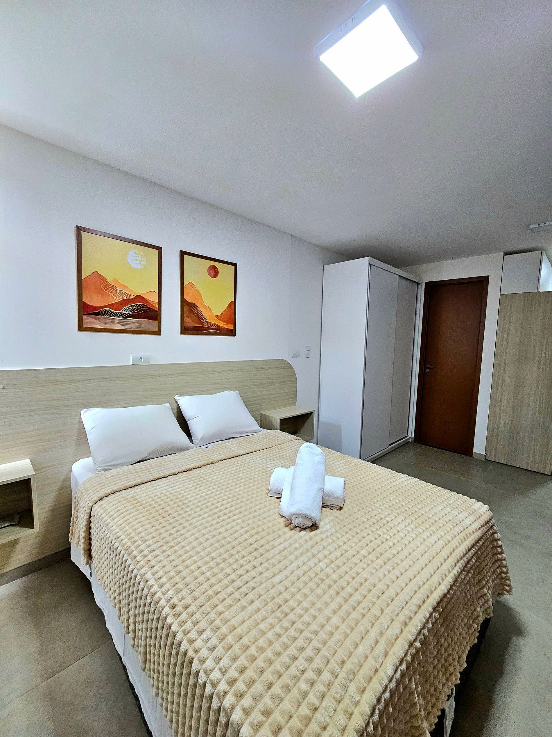 Decoração Moderna e Iluminação Planejada: A decoração do apartamento segue um estilo moderno e elegante, com detalhes em cores neutras que criam uma atmosfera aconchegante e sofisticada. As luzes estrategicamente posicionadas proporcionam um ambiente acolhedor, ideal tanto para momentos de relaxamento quanto para criar um clima especial durante suas noites no Reserva do Cupe