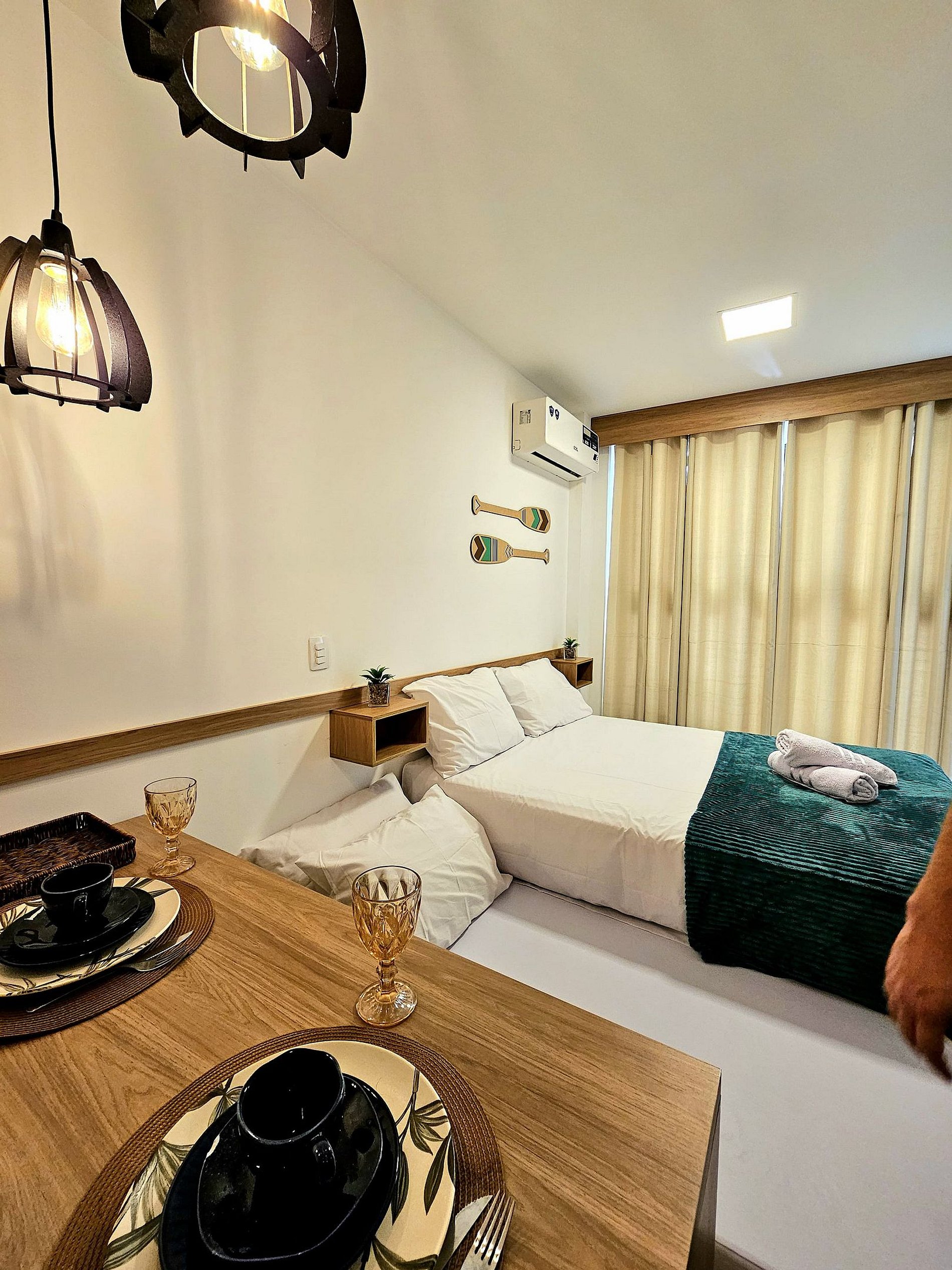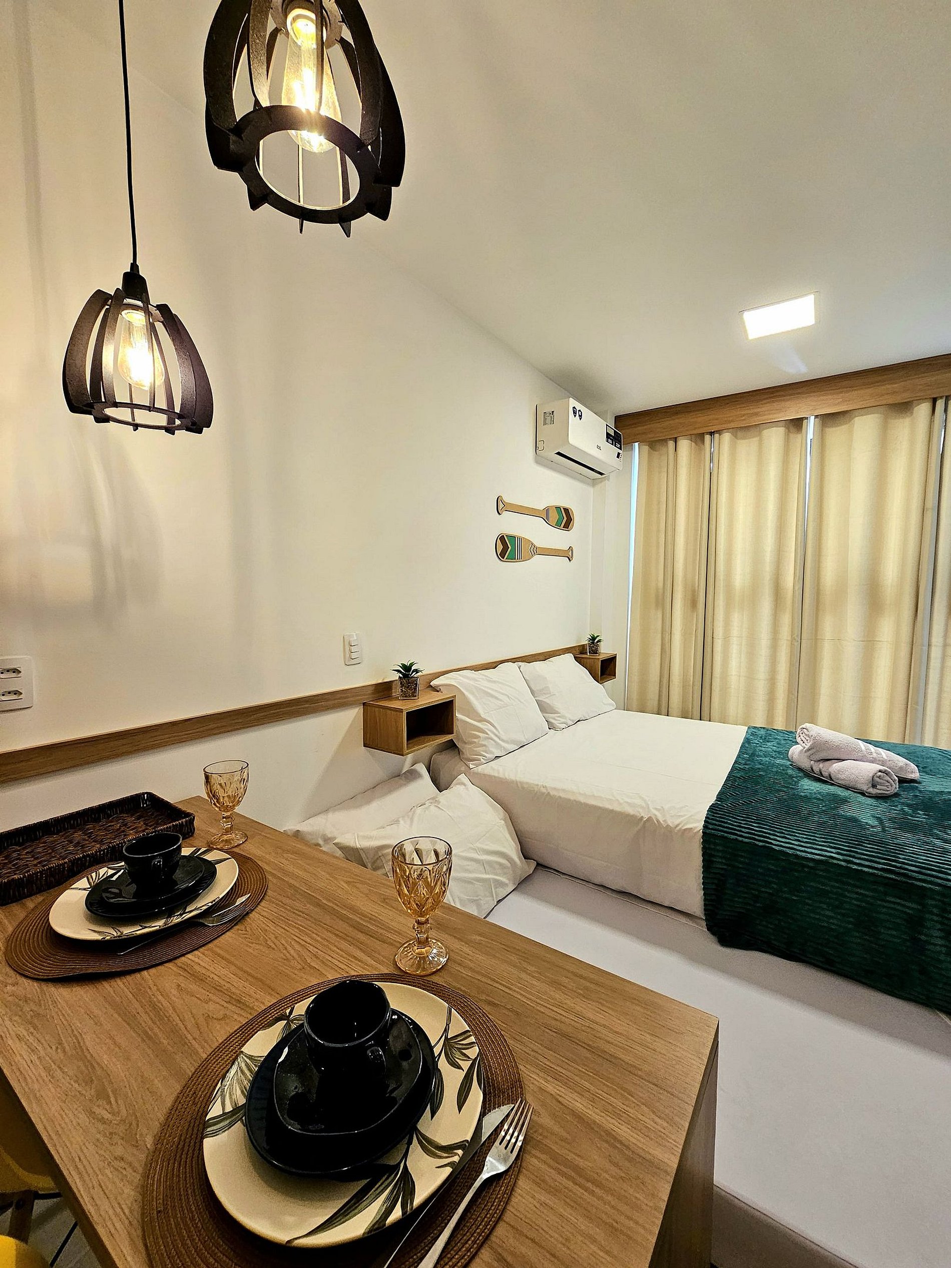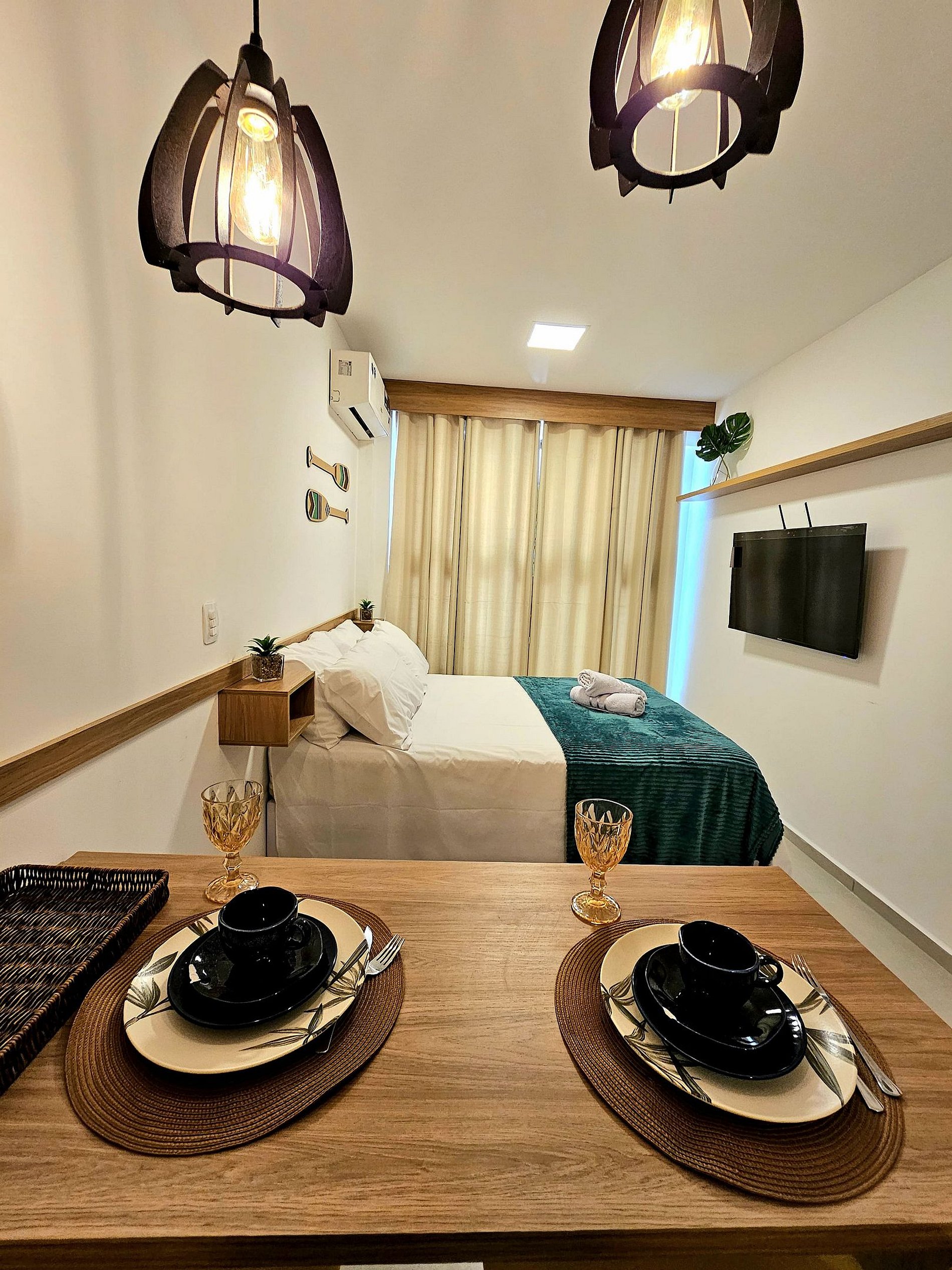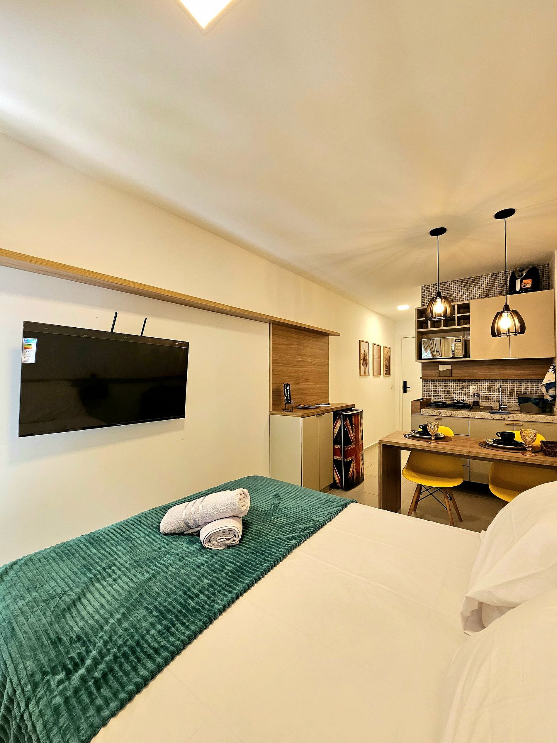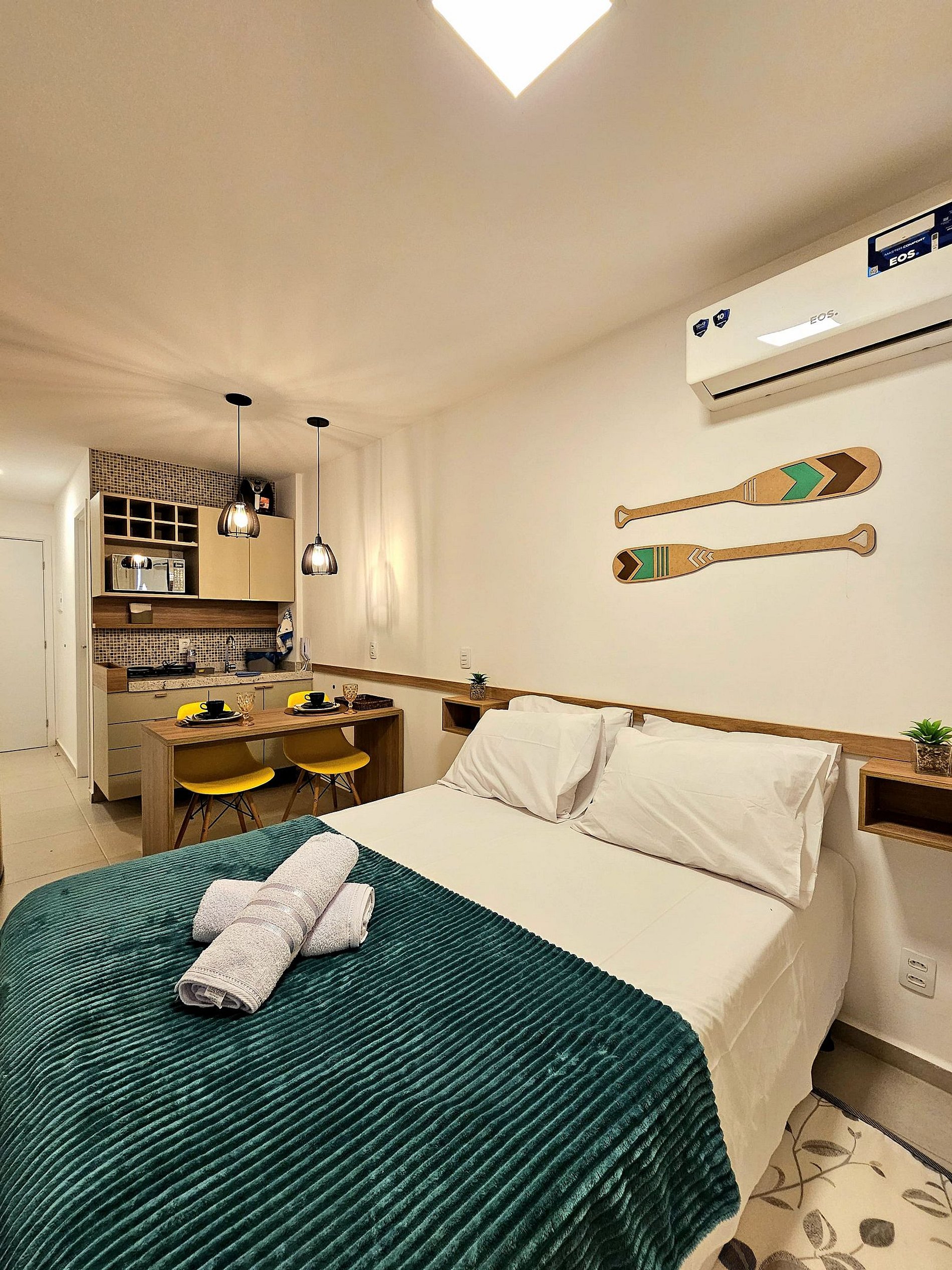 Nosso flat conta com apartamentos bem equipados, projetados para proporcionar a você o máximo de conforto. Cada unidade possui ar-condicionado, Wi-Fi gratuito, TV de tela plana e uma cozinha compacta, facilitando sua estadia. Descanse em camas confortáveis e aproveite os detalhes que tornam seu refúgio ainda mais especial.
