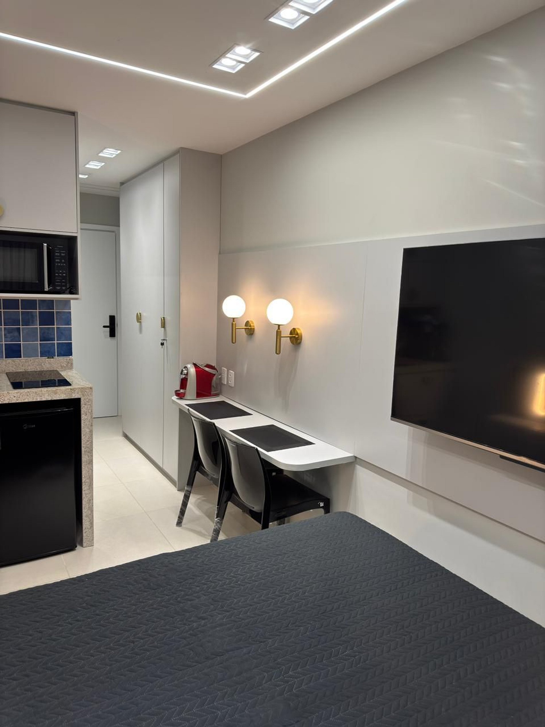 Nosso flat conta com apartamentos bem equipados, projetados para proporcionar a você o máximo de conforto. Cada unidade possui ar-condicionado, Wi-Fi gratuito, TV de tela plana e uma cozinha compacta, facilitando sua estadia. Descanse em camas confortáveis e aproveite os detalhes que tornam seu refúgio ainda mais especial.