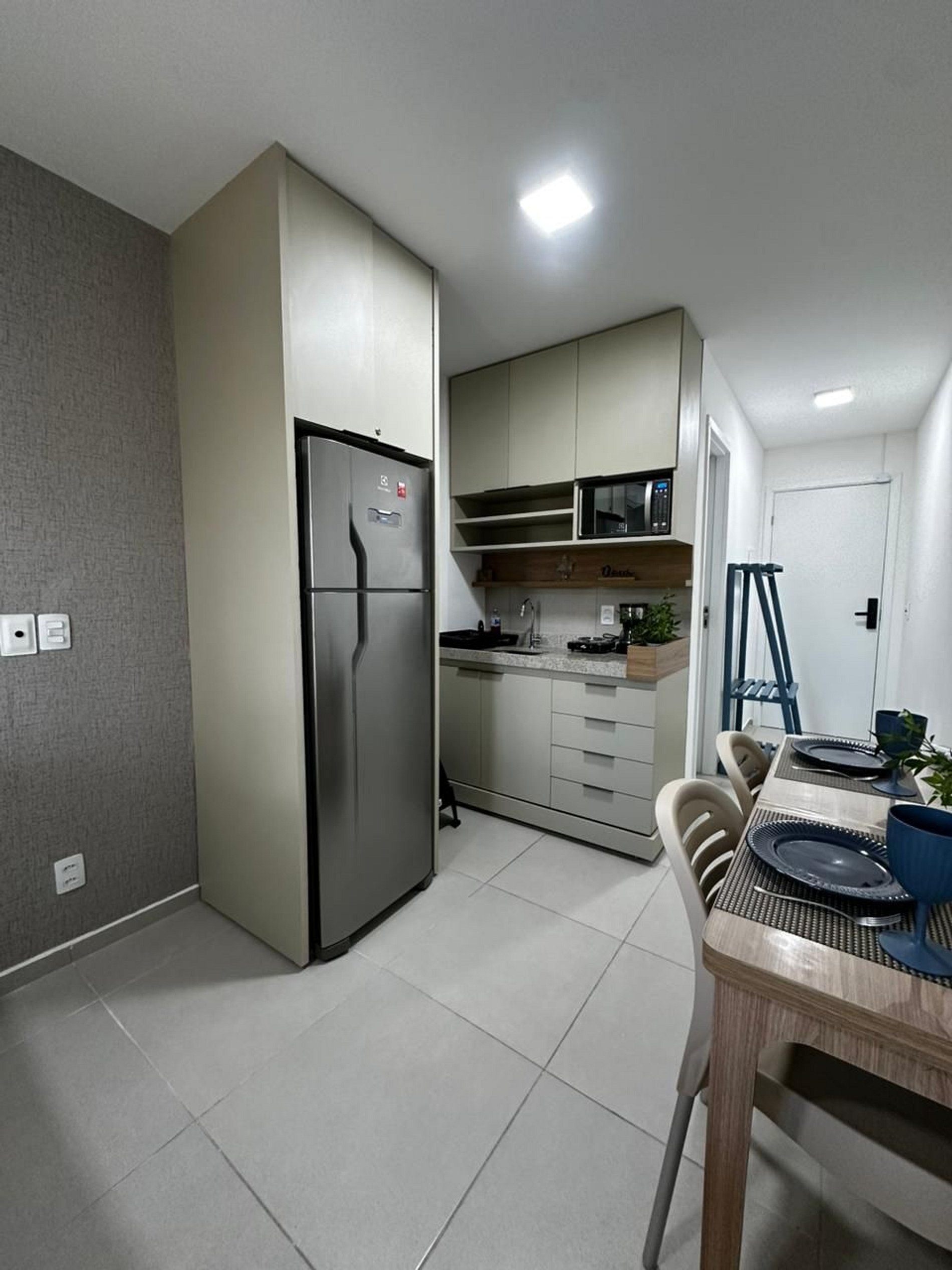 O flat comporta até 2 pessoas e dispõe de uma suíte bem decorada com uma cama de casal extremamente confortável, roupas de cama de alta qualidade e um ambiente acolhedor que garante noites de descanso reparador. O banheiro privativo é moderno e equipado com chuveiro quente. Cozinha equipada com geladeira, sanduicheira, cafeteira, liquidificador, air fryer para você realizar suas refeições.