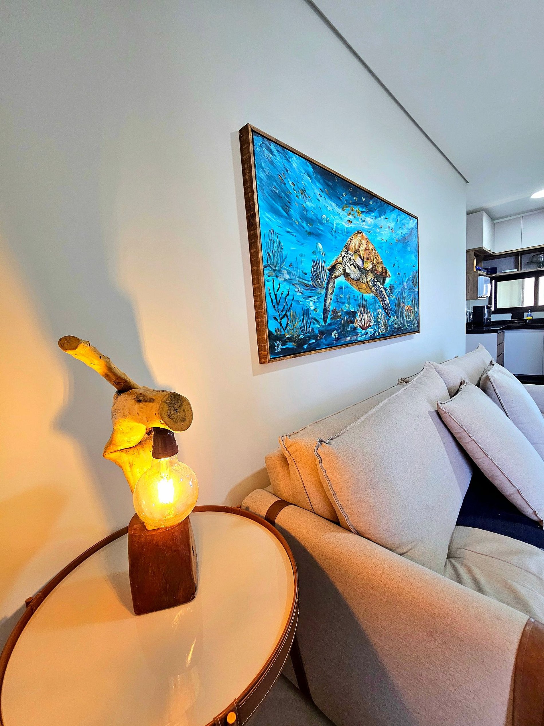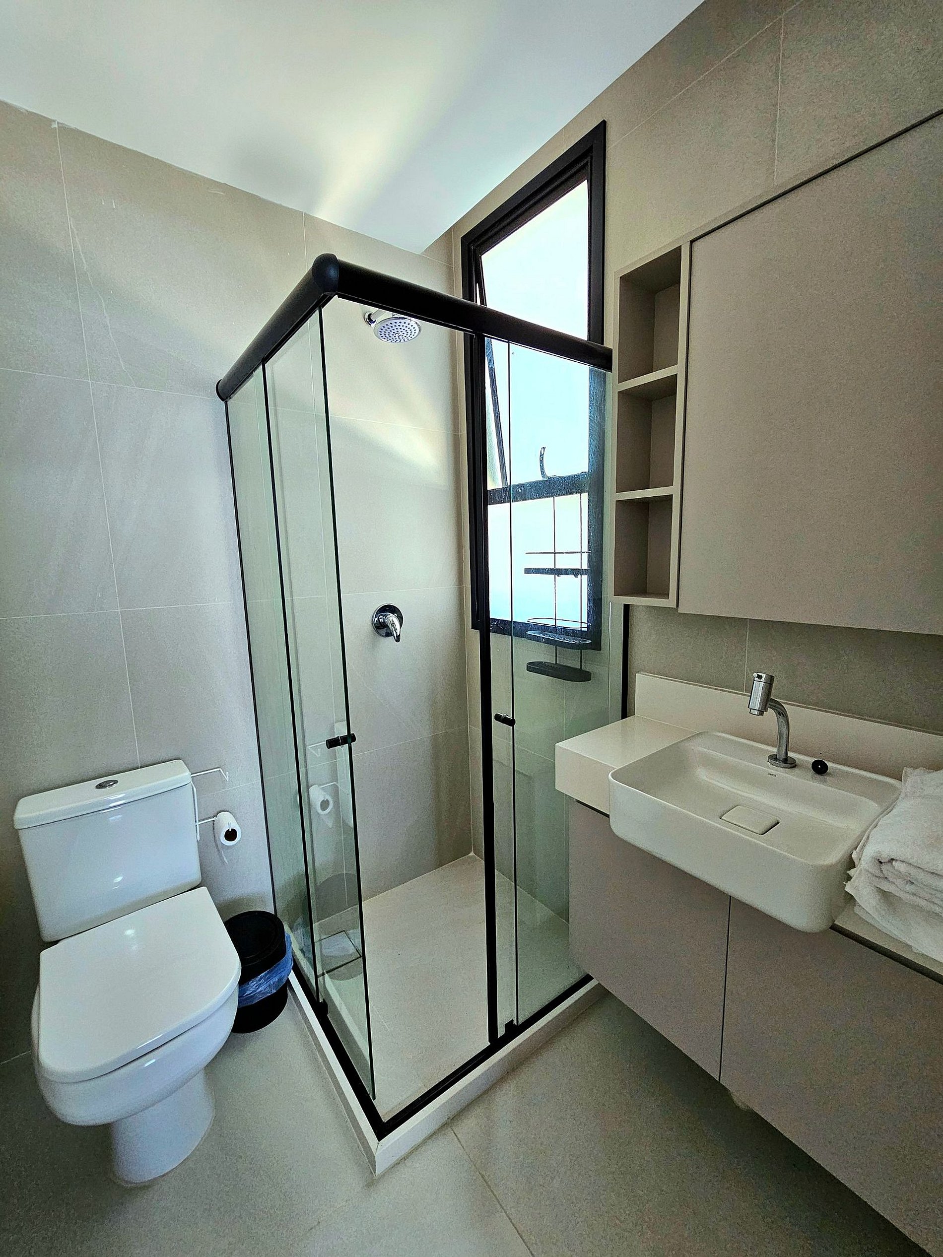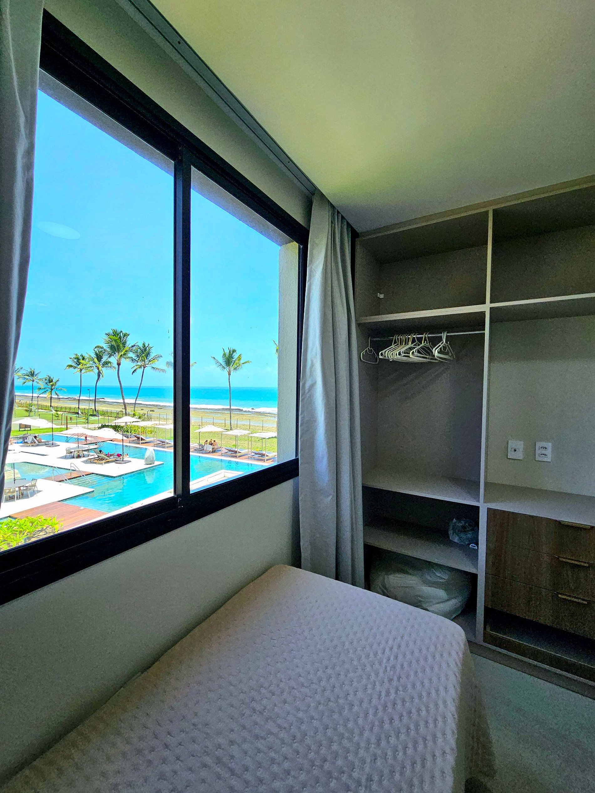 Nosso apartamento todo novo possui 2 quartos (1 deles suíte), 2 banheiros ao todo, Vista Mar em todos os quartos e nossa Varanda gourmet com vista panorâmica do Mar e da piscina principal do condomínio.