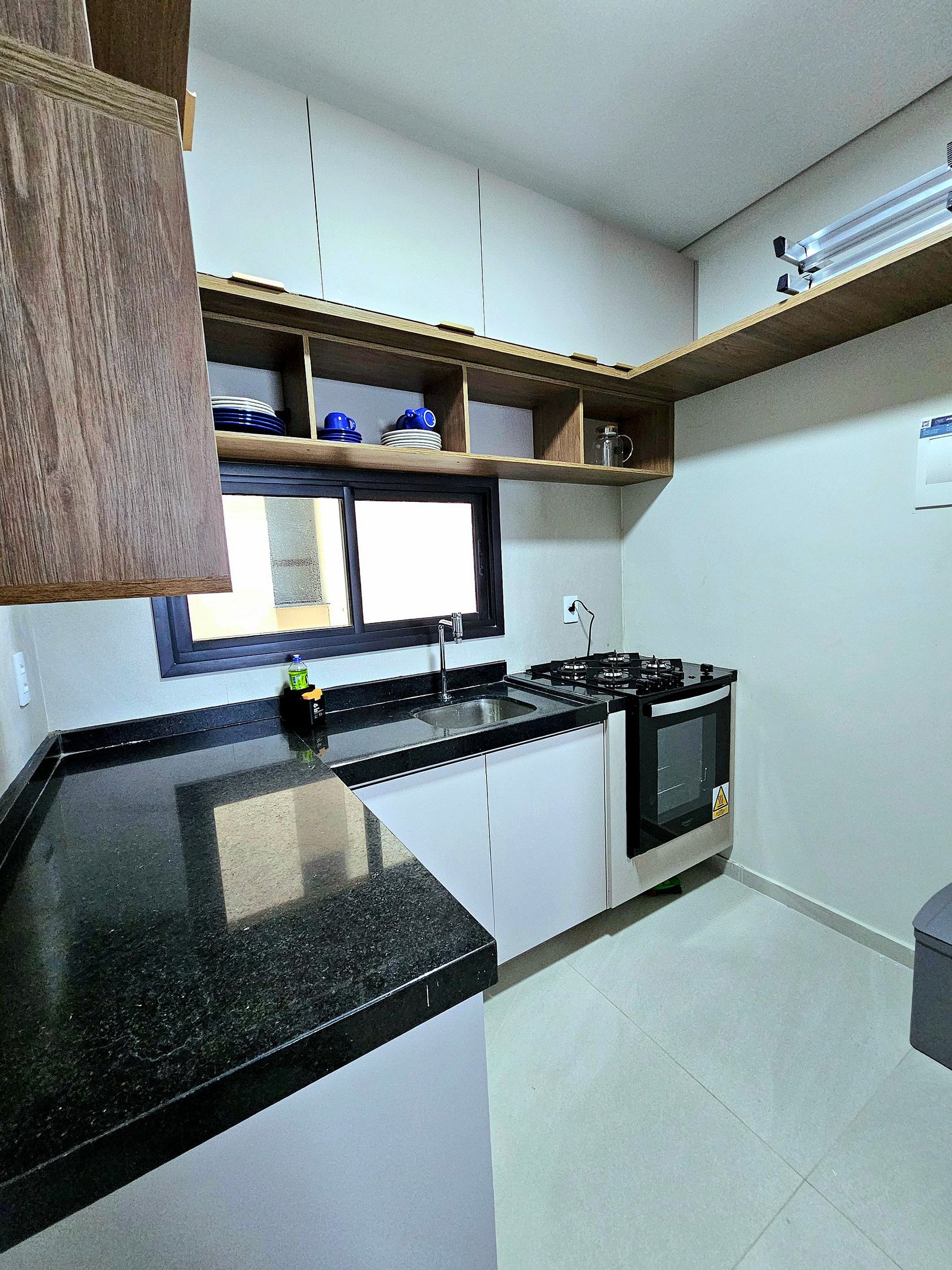Temos cozinha completa e equipada com os principais itens e eletrodomésticos: Airfryer, sanduicheira, cafeteira, liquidificador, microondas, etc..