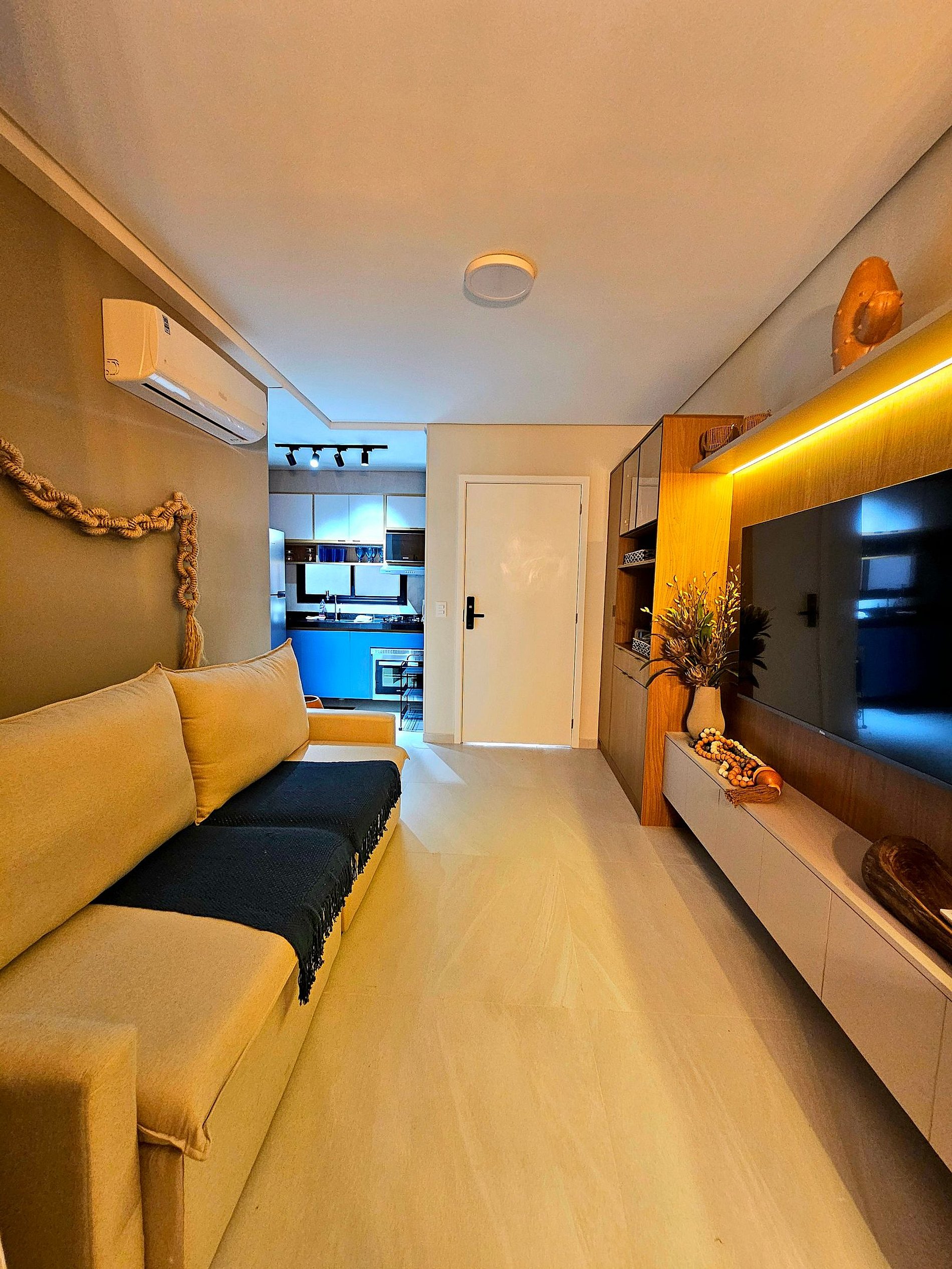 Unidade com Quarto Separado da sala, acomodamos com muito conforto 4 hóspedes em 1 quarto (3 hóspedes) e 1 na sala. ambos com ar condicionado.