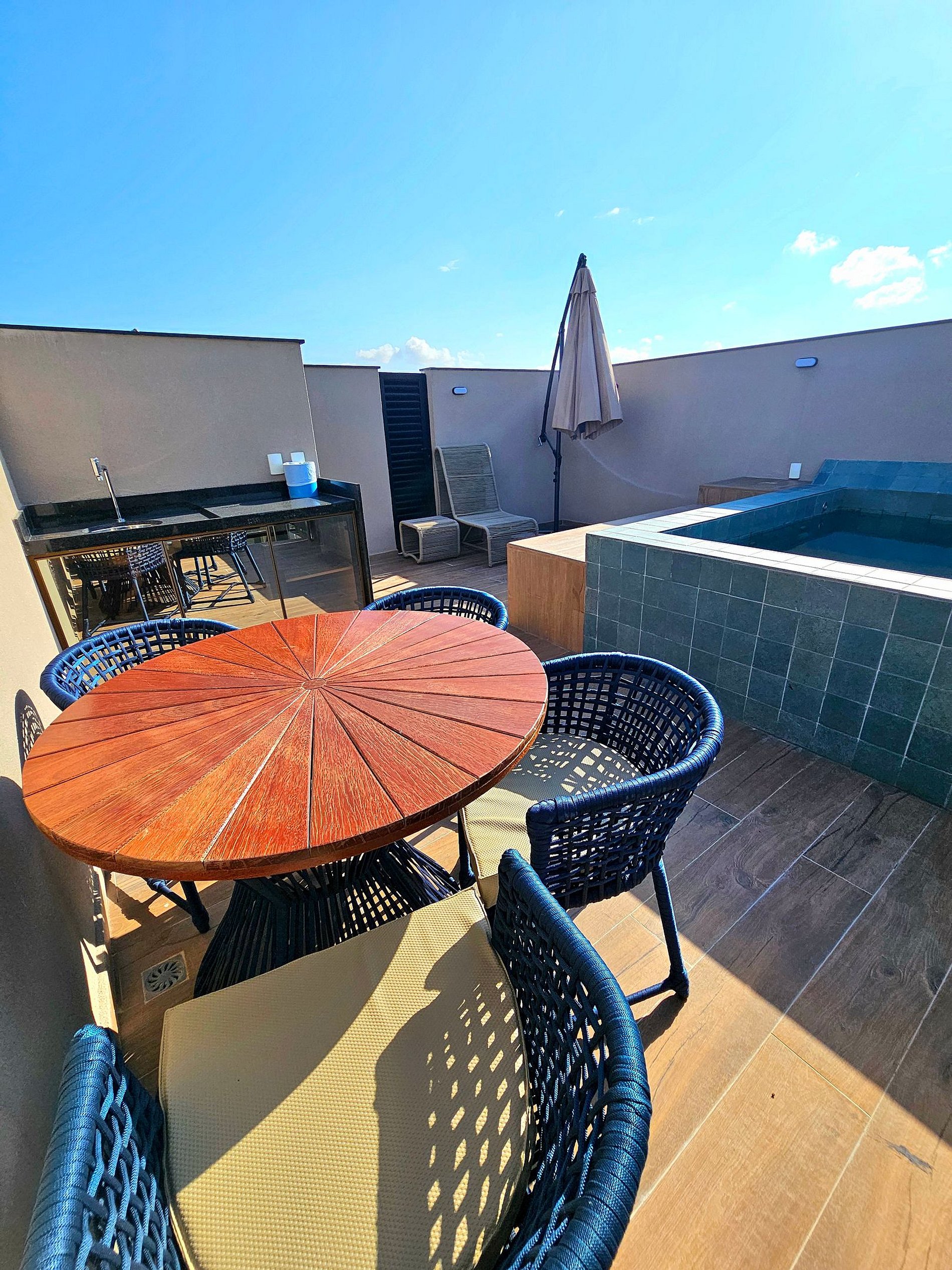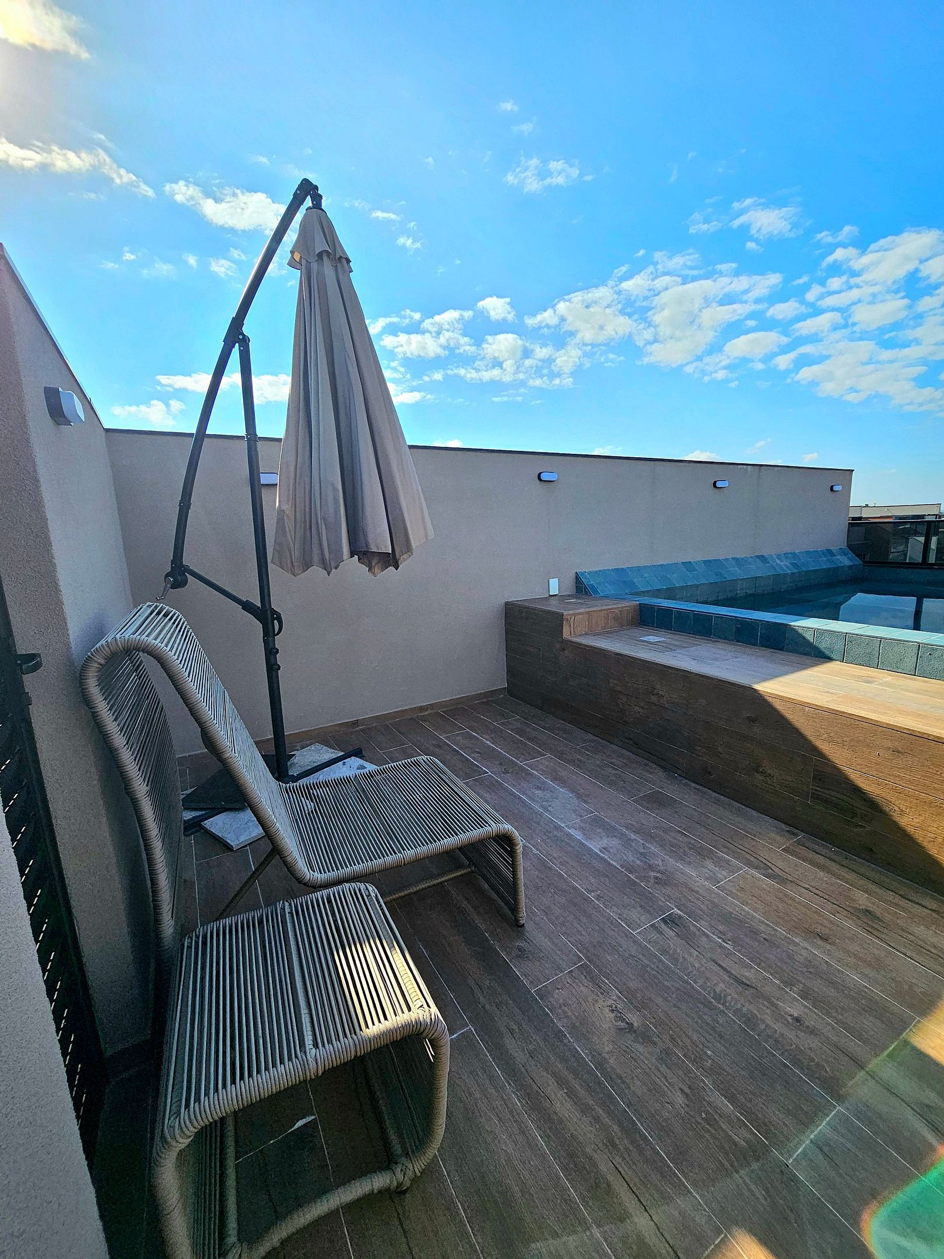 Apartamento com rooftop e piscina privativa na cobertura, perfeito para relaxar em um final da tarde com a família ou confraternizar com os amigos.