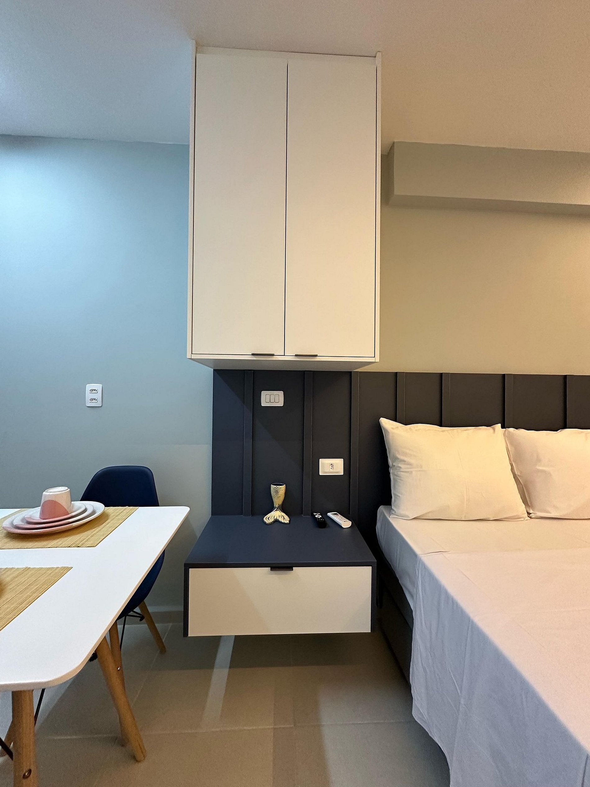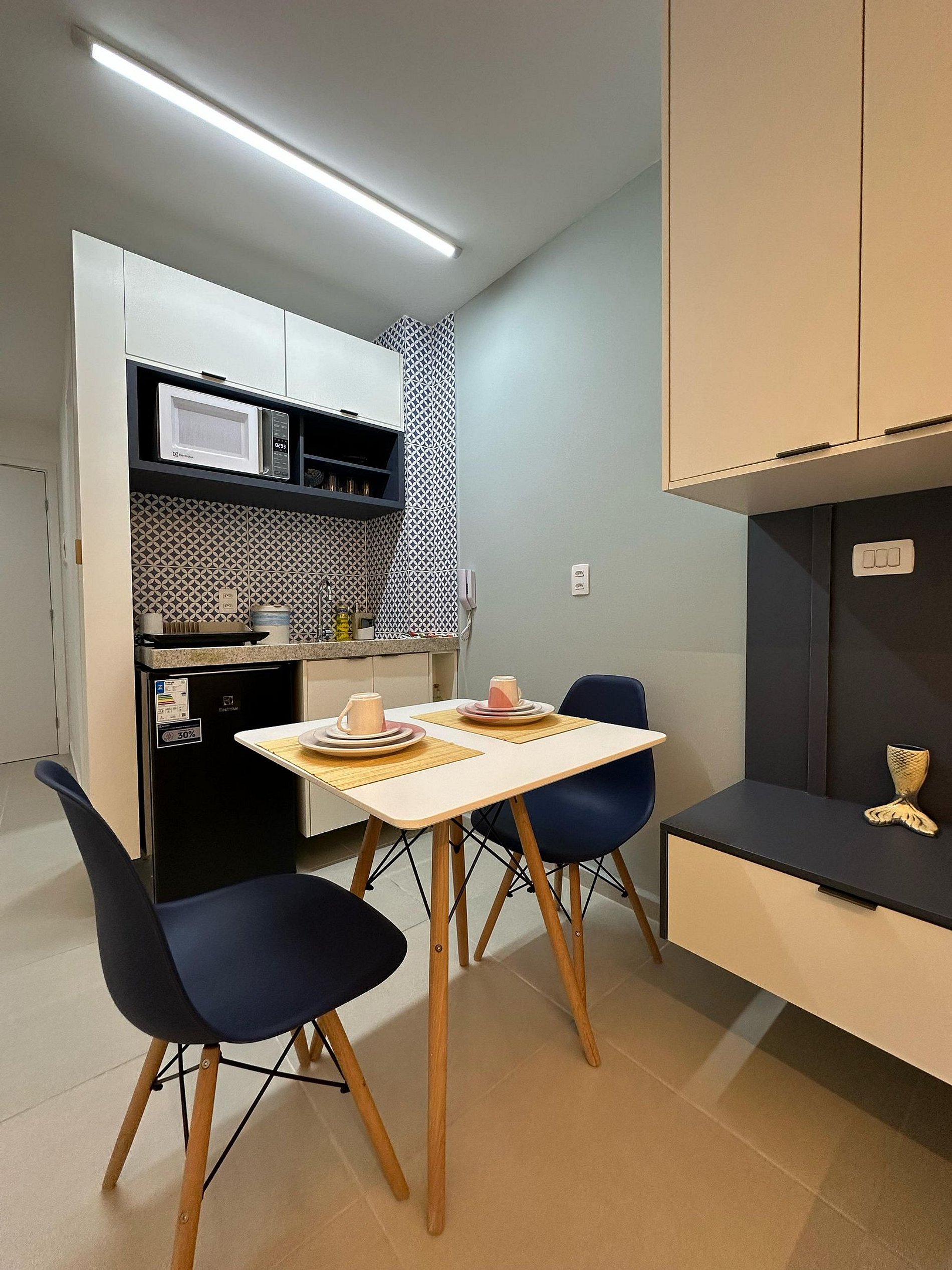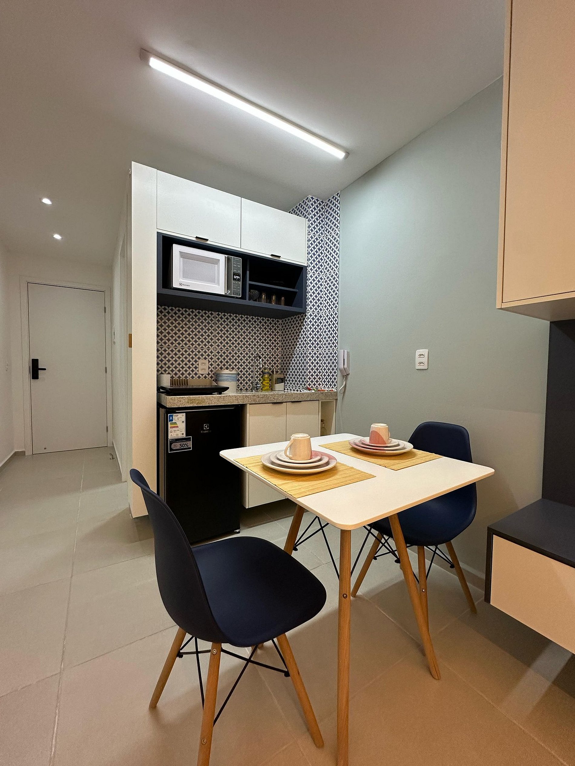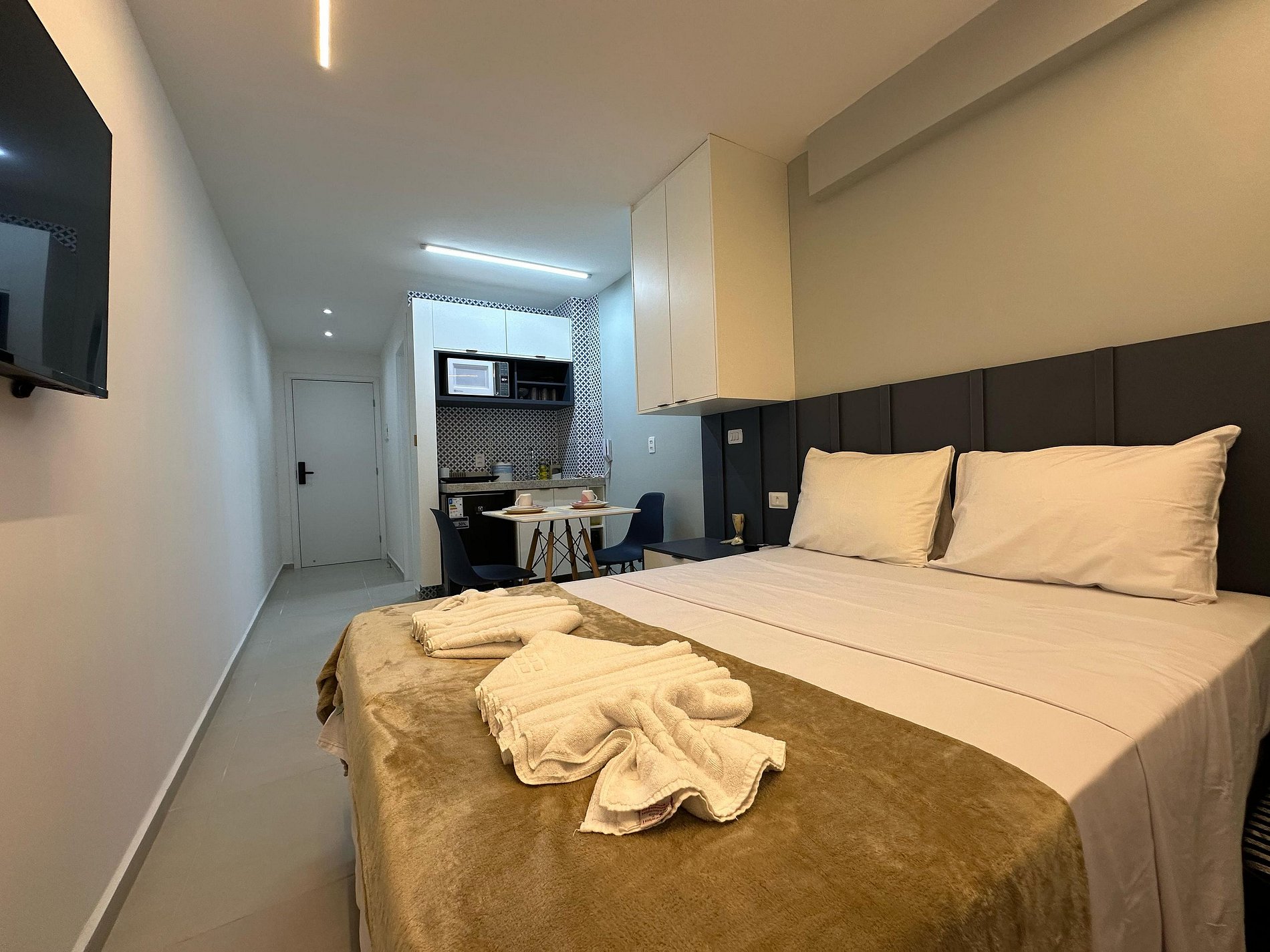 Nosso flat conta com apartamentos bem equipados, projetados para proporcionar a você o máximo de conforto. Cada unidade possui ar-condicionado, Wi-Fi gratuito, TV de tela plana e uma cozinha compacta, facilitando sua estadia. Descanse em camas confortáveis e aproveite os detalhes que tornam seu refúgio ainda mais especial.