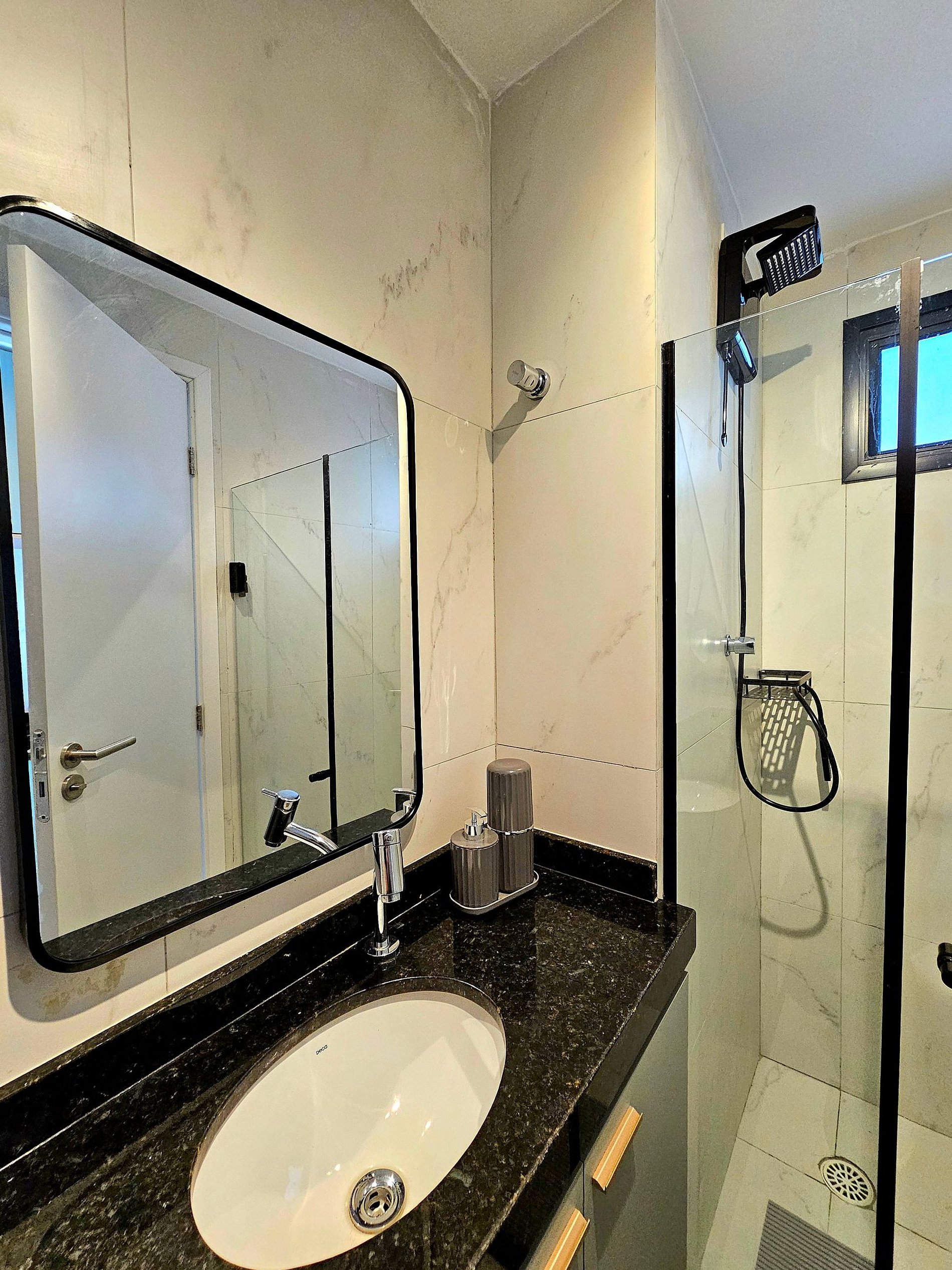 1. Banheiro com chuveiro elétrico e secador;