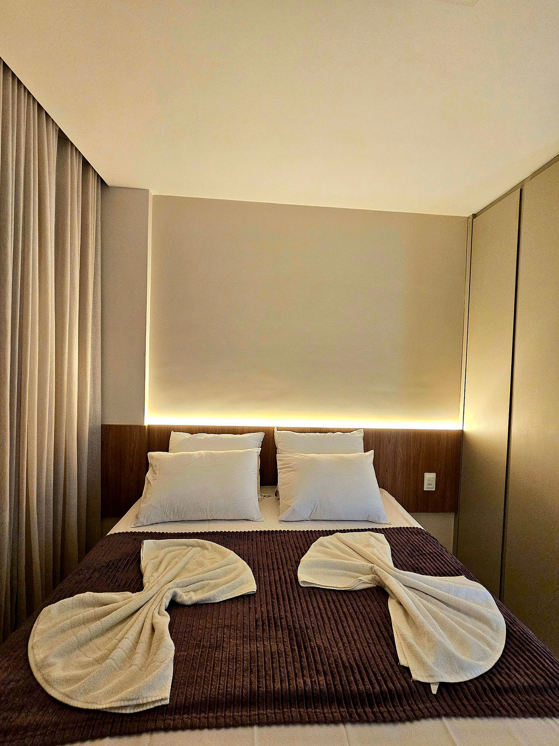 Nosso apartamento todo novo possui 2 quartos (1 deles suíte), 2 banheiros ao todo, foi montado e equipado com tudo o que há de melhor, Utensílios e eletrodomésticos modernos e de excelente qualidade, possuímos de diferencial: